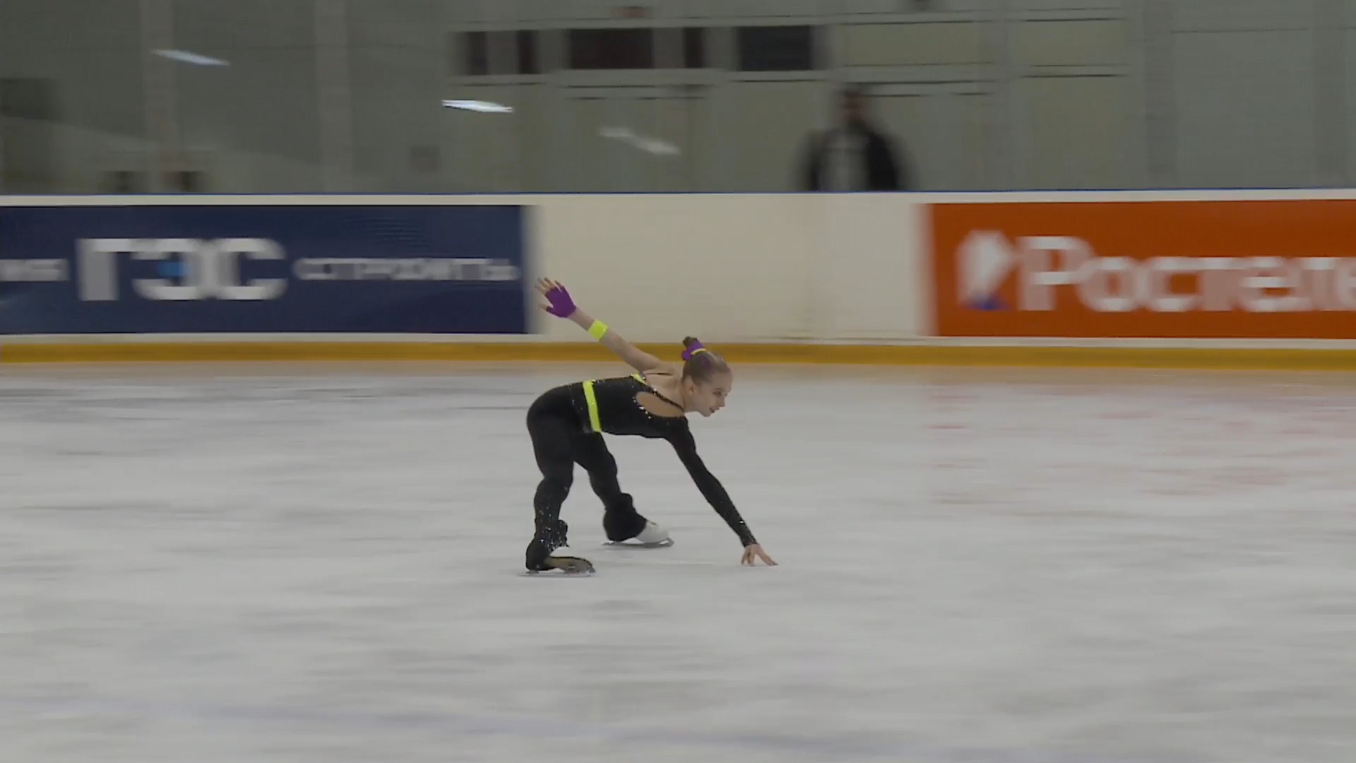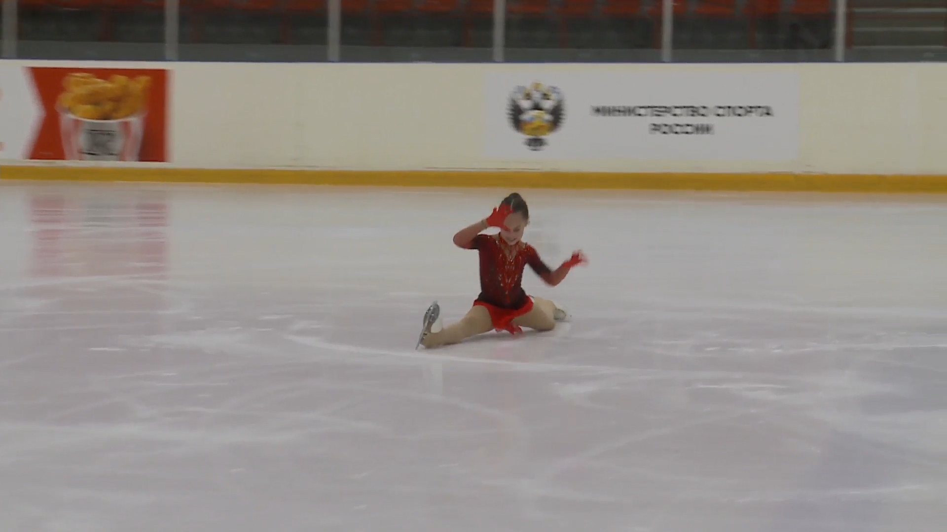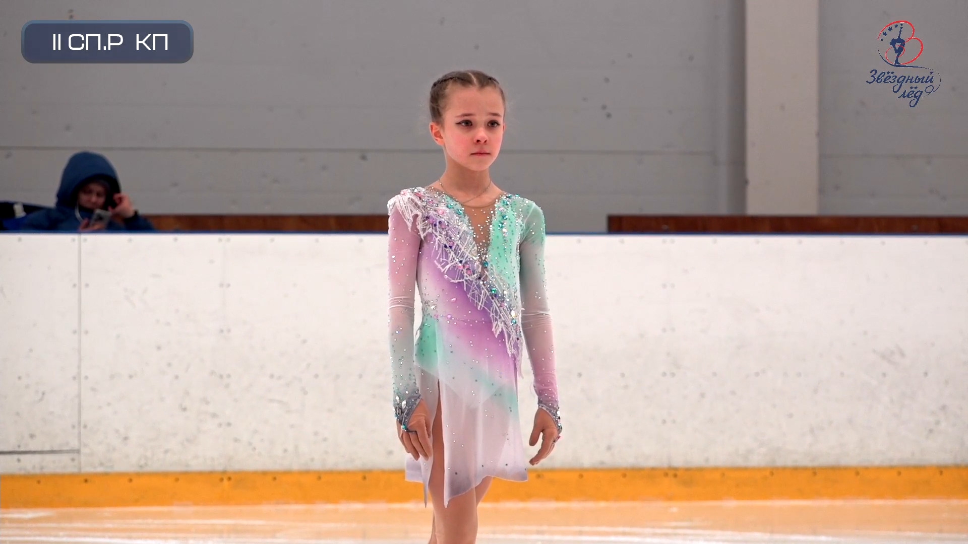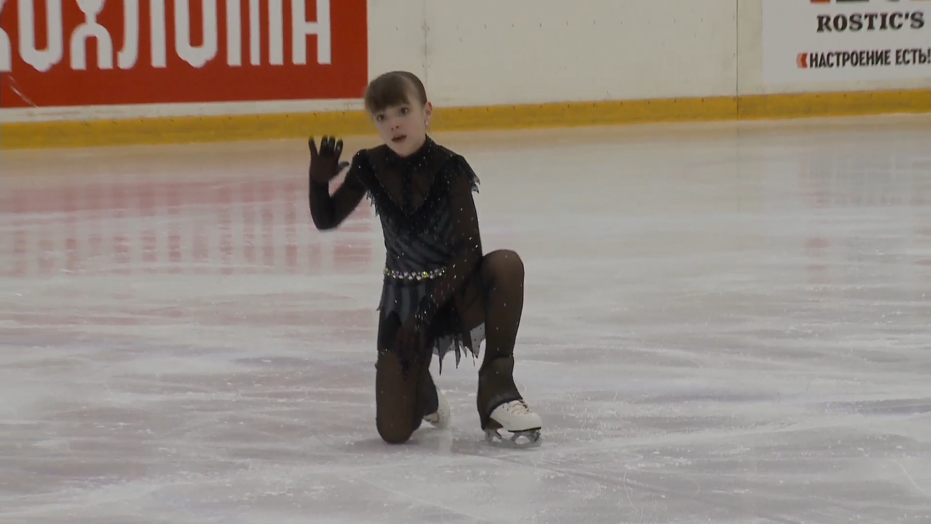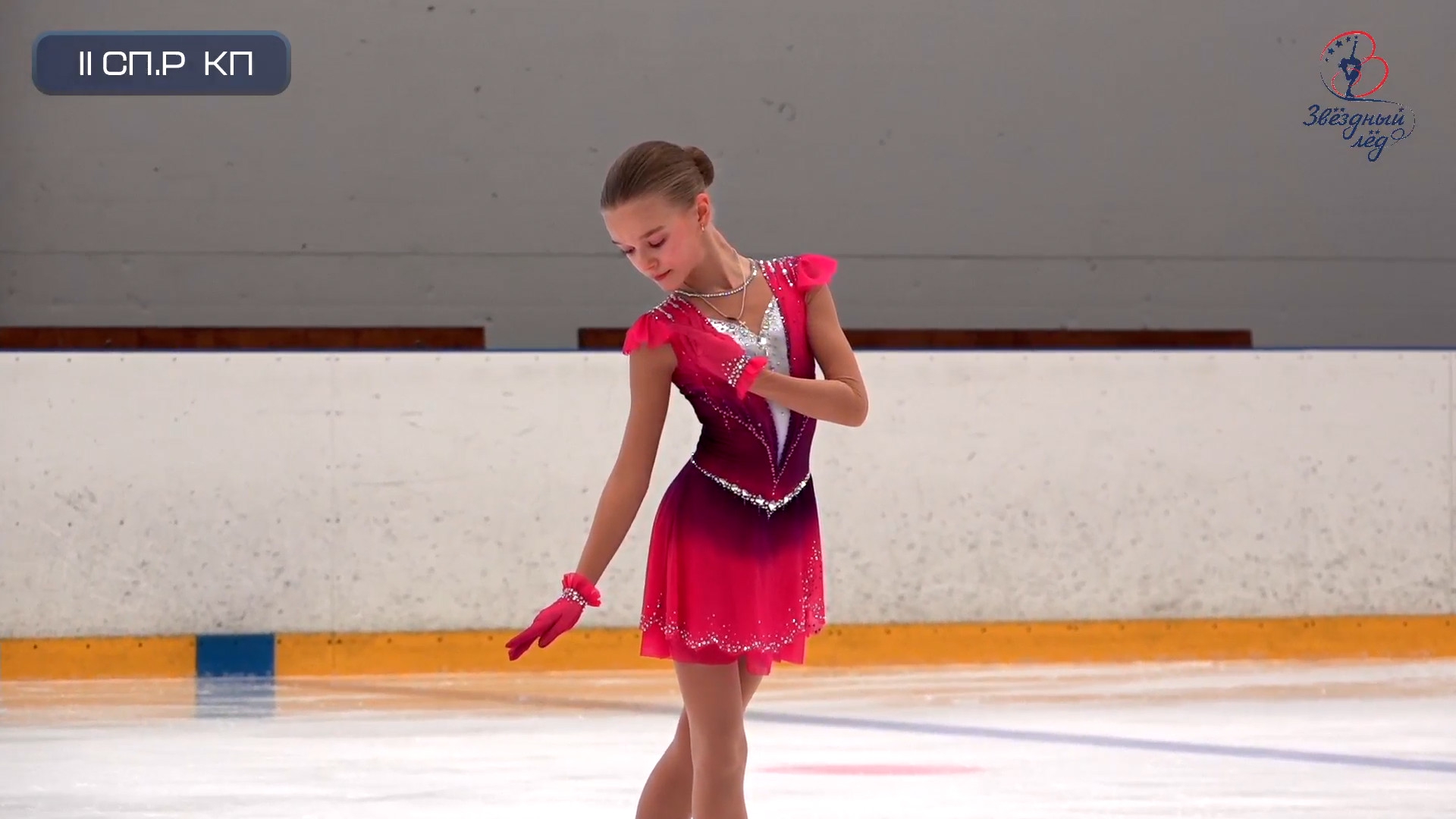 Злата Андреевна ВЕРЕНИЧ Омская область, "БУ ДО СШОР No 35" г. Омск 2a2t 3s< ho fall 2z2r закрутило в тройку на месте 1a 2a wobble 2z в том же месте, где и прошлый chsq1 разворот в слайде на колене 2fe опять всю программу руки в стороны