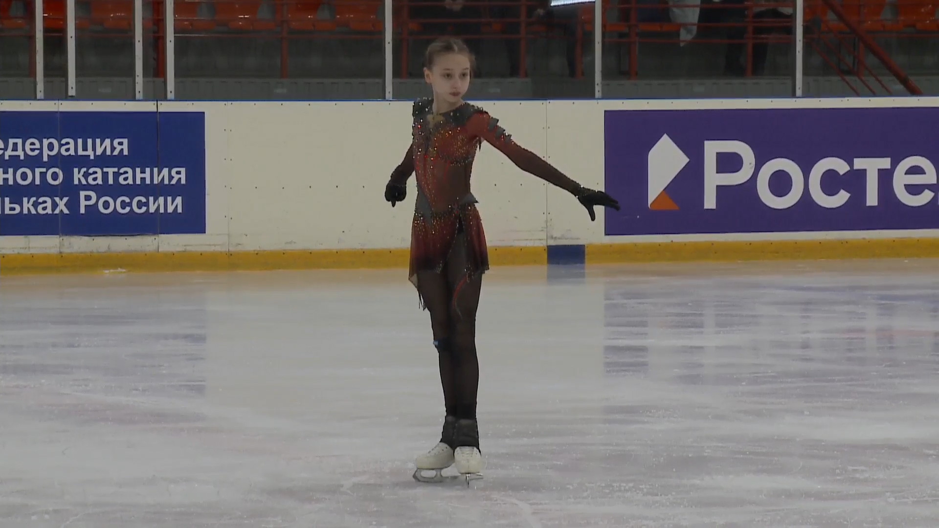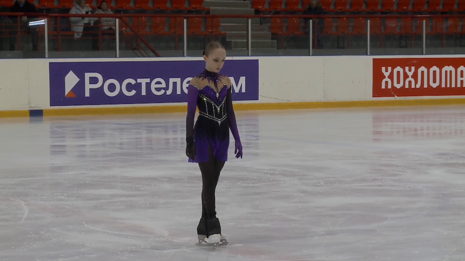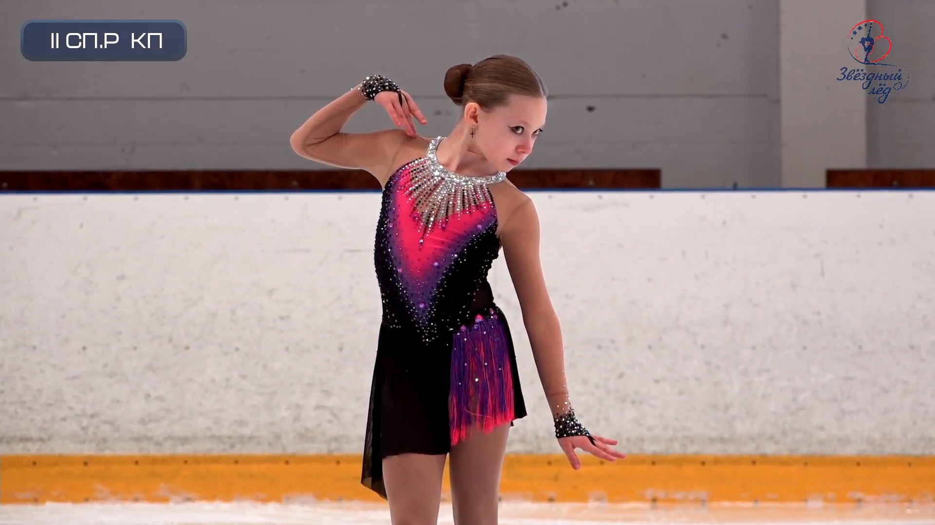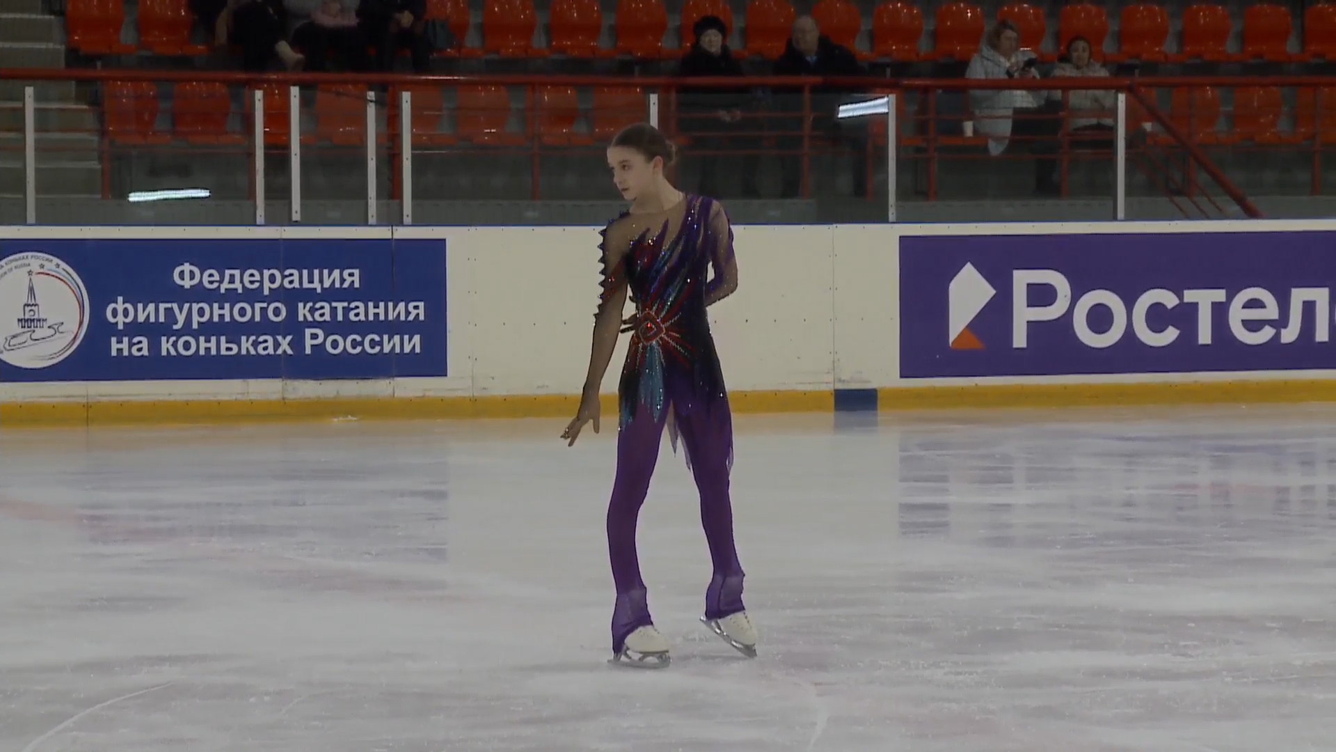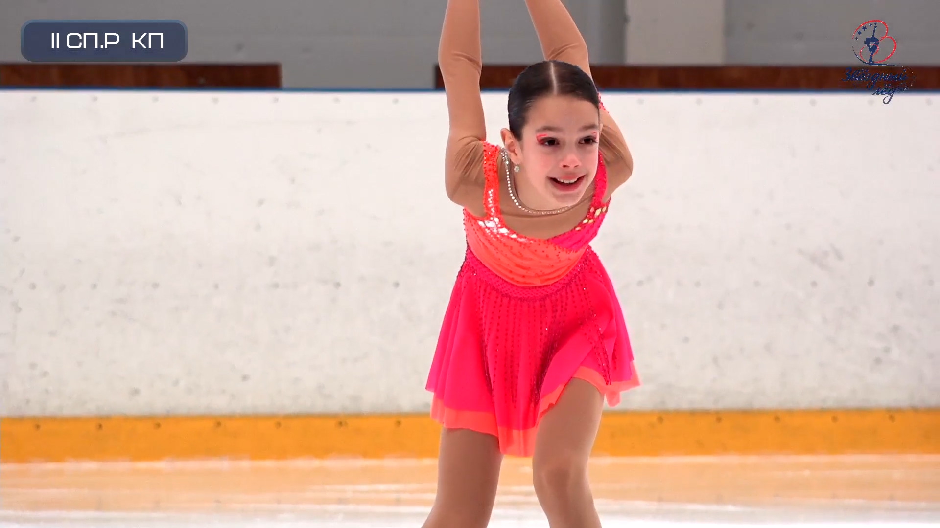 Злата Андреевна ВЕРЕНИЧ Омская область, "БУ ДО СШОР No 35" г. Омск 2a2t 3s< ho fall 2z2r закрутило в тройку на месте 1a 2a wobble 2z в том же месте, где и прошлый chsq1 разворот в слайде на колене 2fe опять всю программу руки в стороны