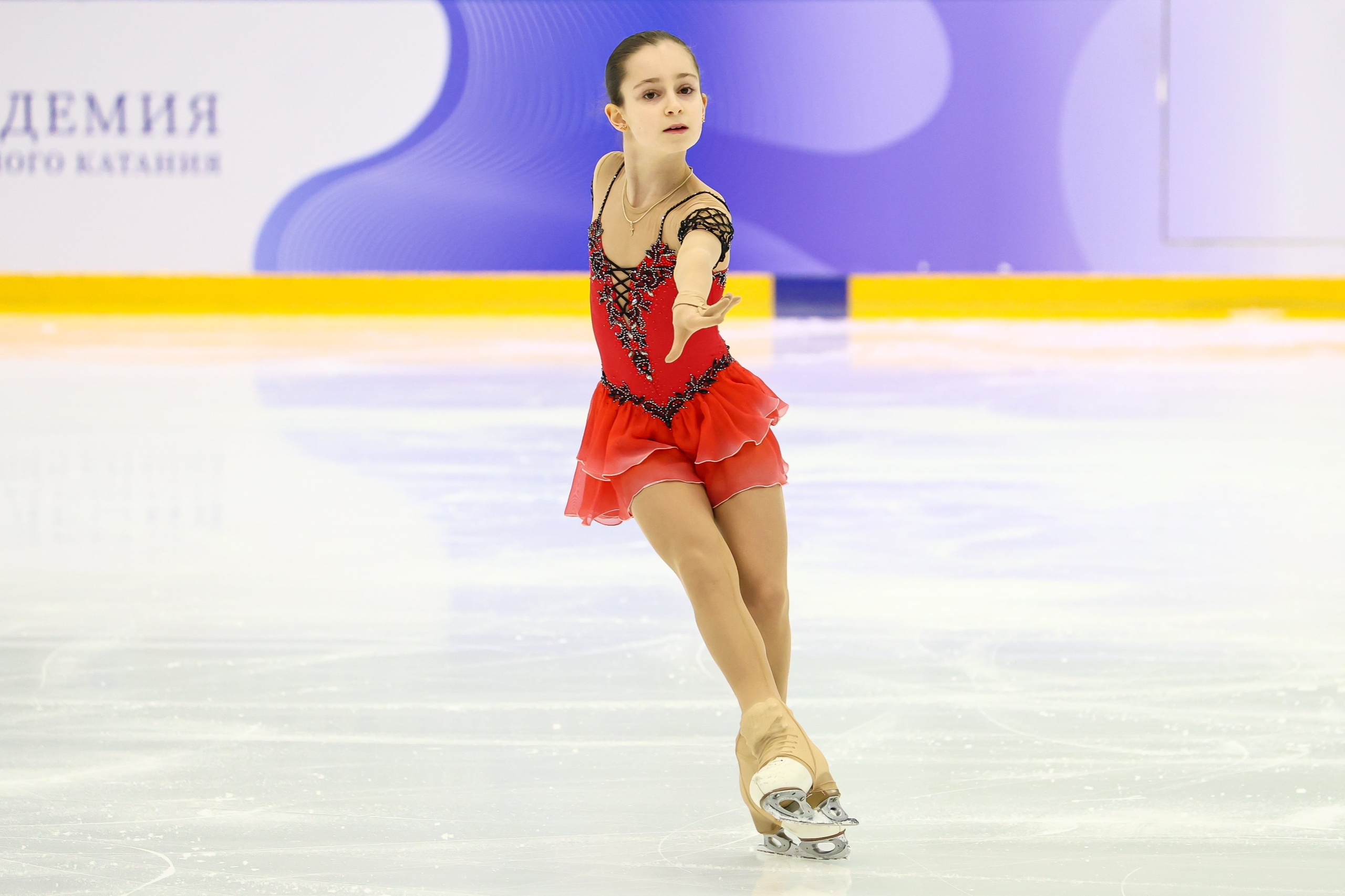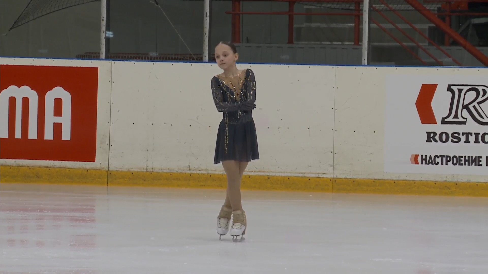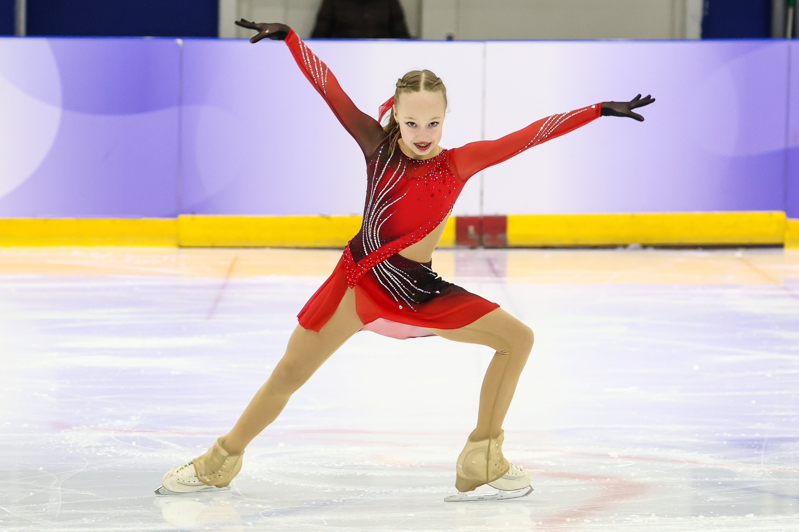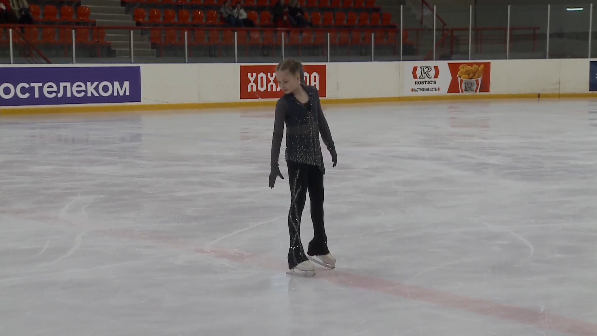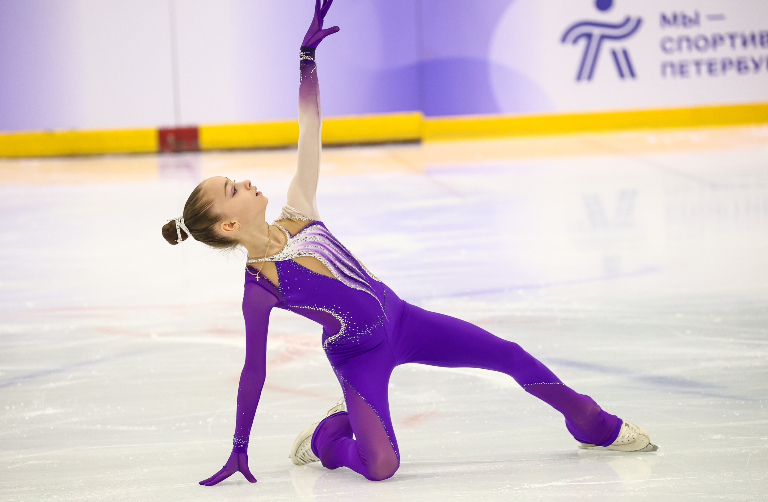 Злата Андреевна ВЕРЕНИЧ Омская область, "БУ ДО СШОР No 35" г. Омск 2a2t 3s< ho fall 2z2r закрутило в тройку на месте 1a 2a wobble 2z в том же месте, где и прошлый chsq1 разворот в слайде на колене 2fe опять всю программу руки в стороны