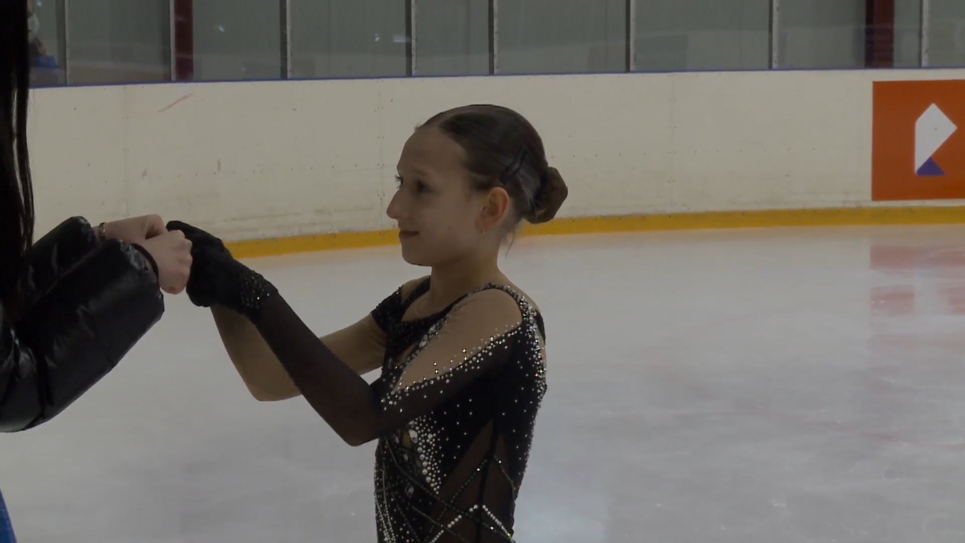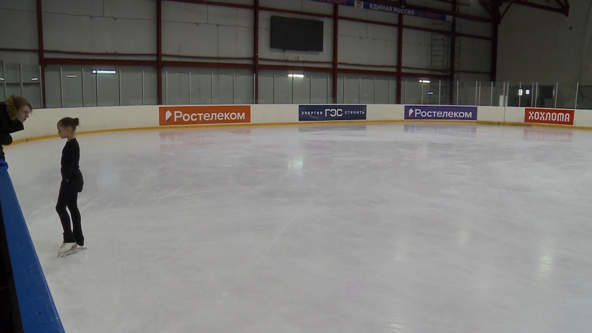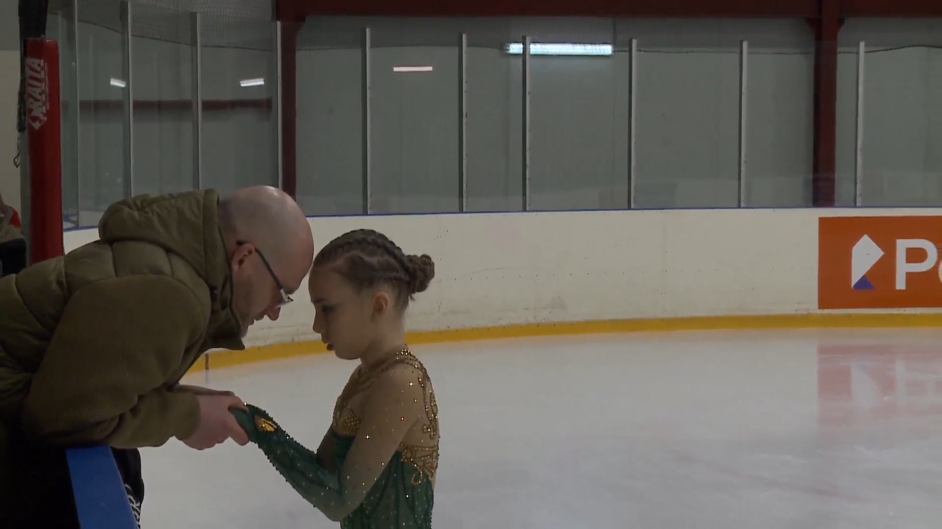 Арина Викторовна МУРАШКО, с Хроминым Приморский край, ООО "Владлёд" СК "Полюс", г.Владивосток целует лёд перед выходом (с ладошки) stsq2 узнаются фишки "Полюса" ccsp4