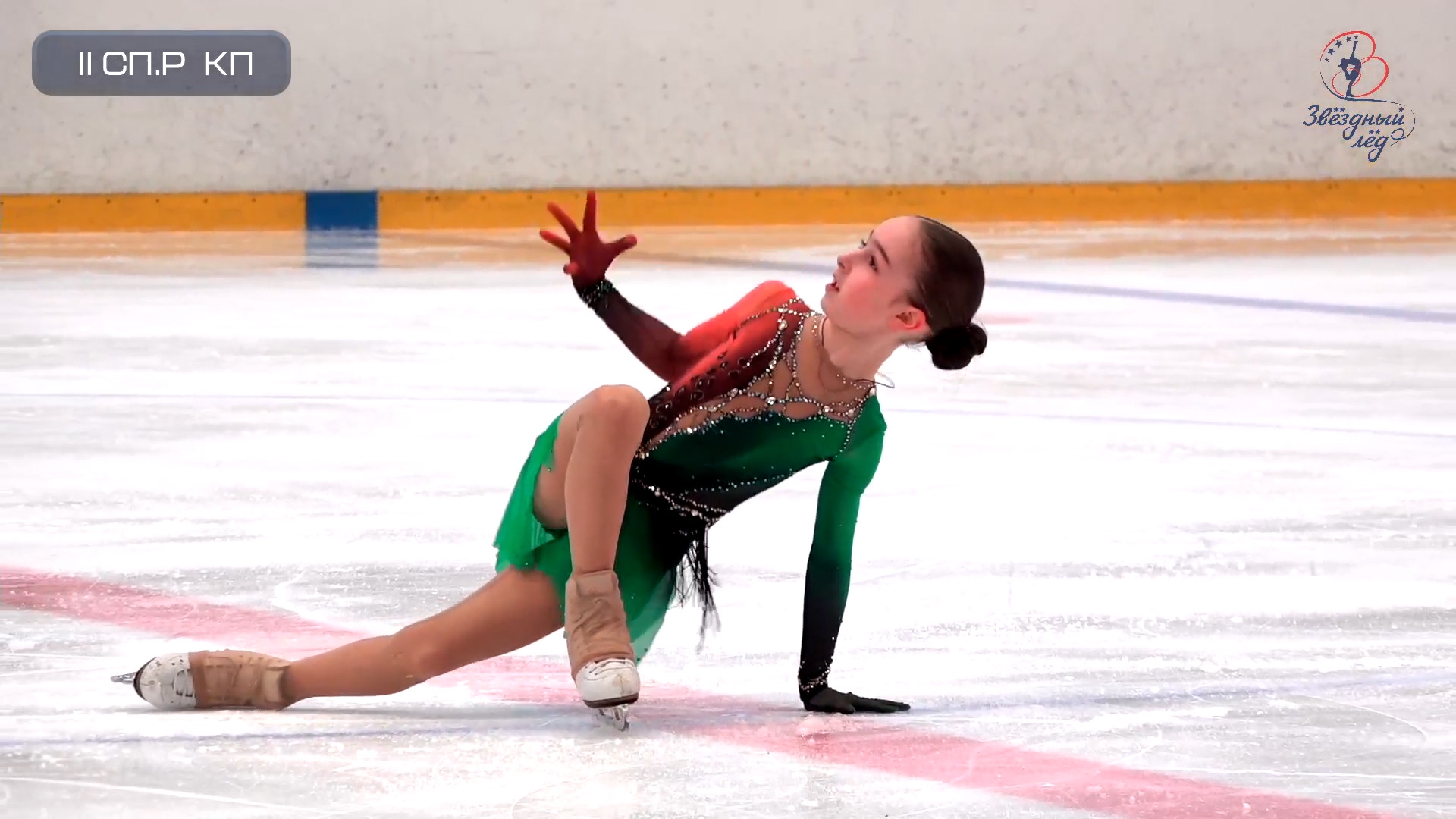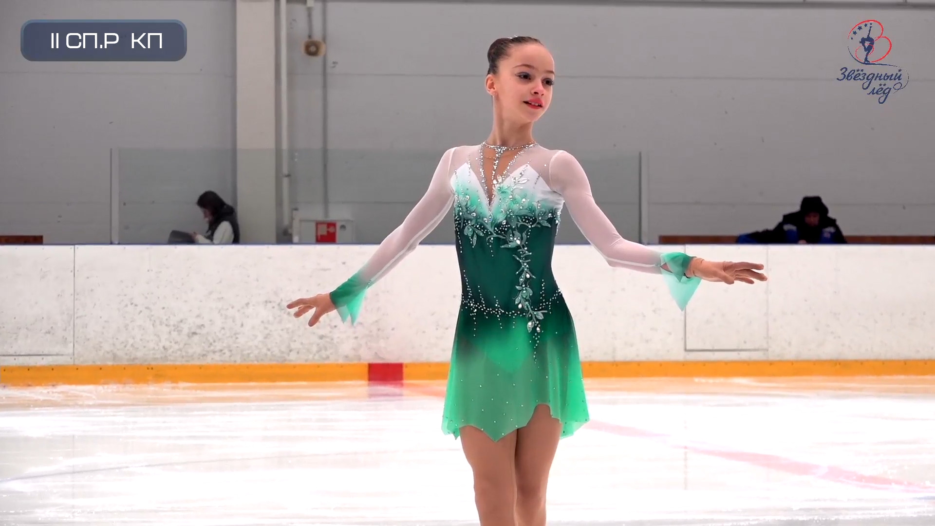 Алина Романовна КОРОЛЁВА с А.Ю., в зелёном под еврейскую музыку про поход за чернилами СПб, МО Введенский СПБ ГБУ ДО СШОР "Звёздный лёд" 2a с "питерского" захода в твизл 3r 3z<< so в раскорячку +combo