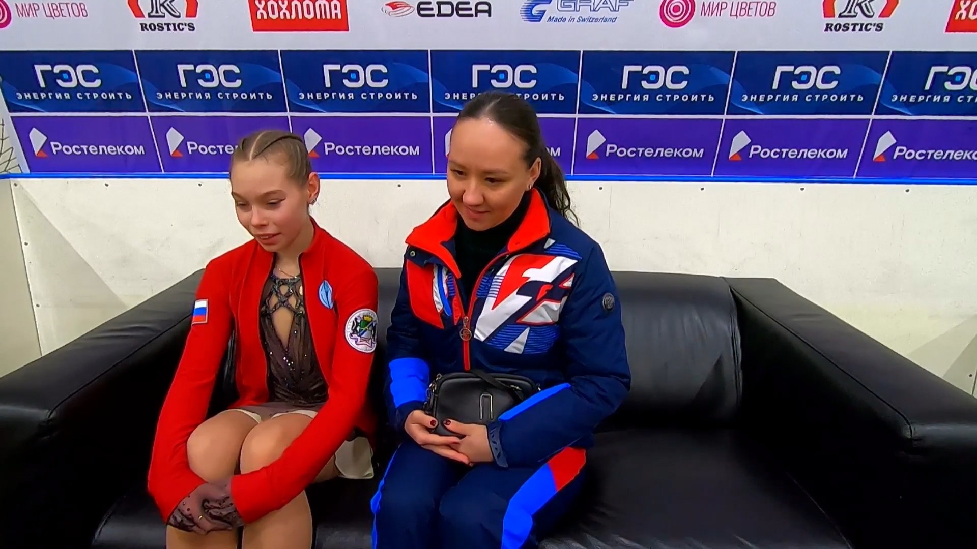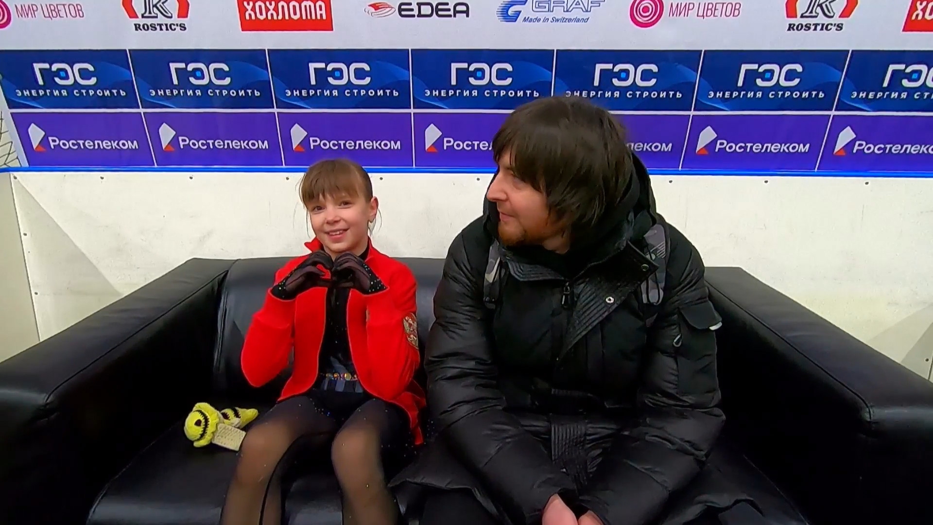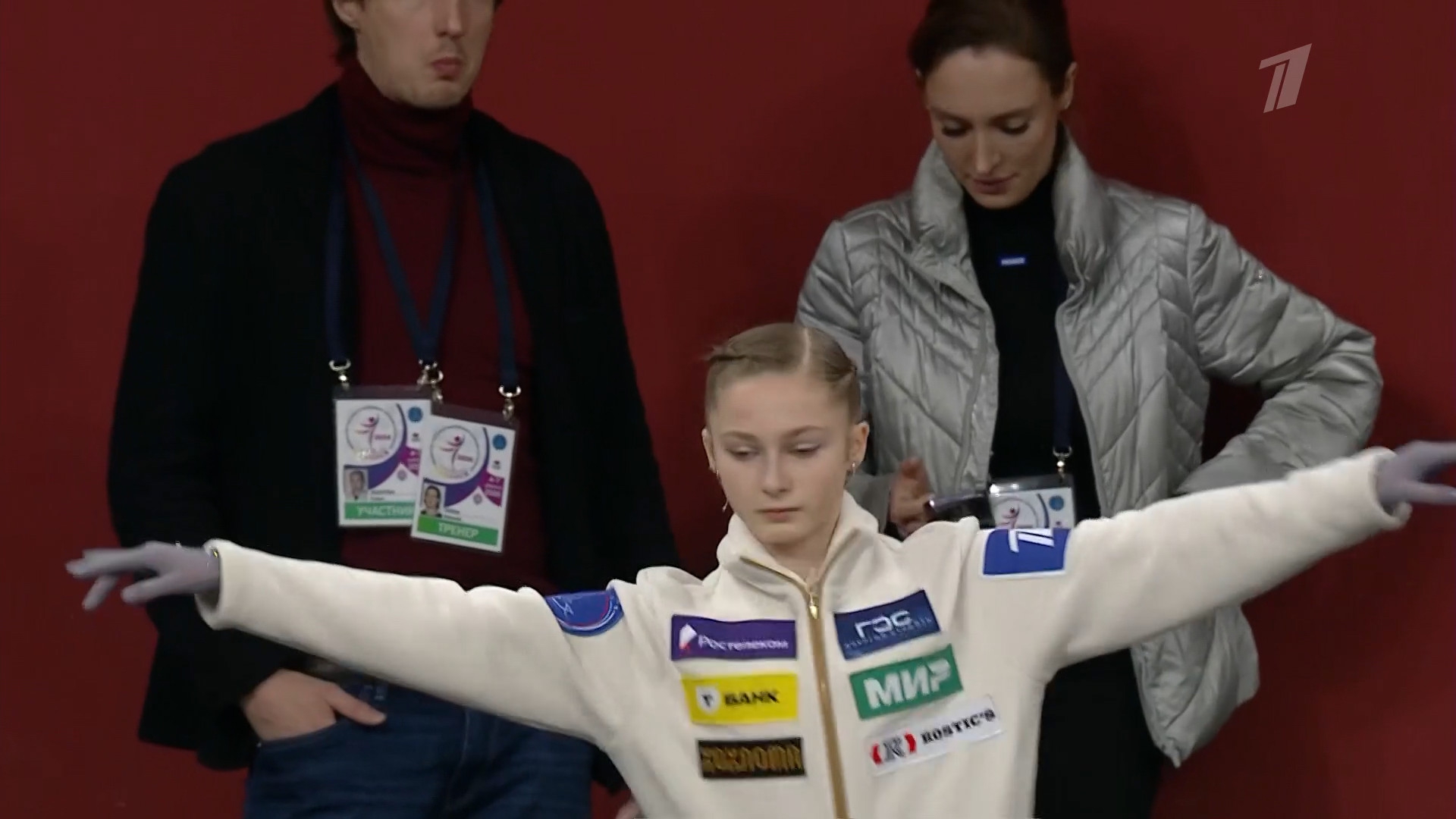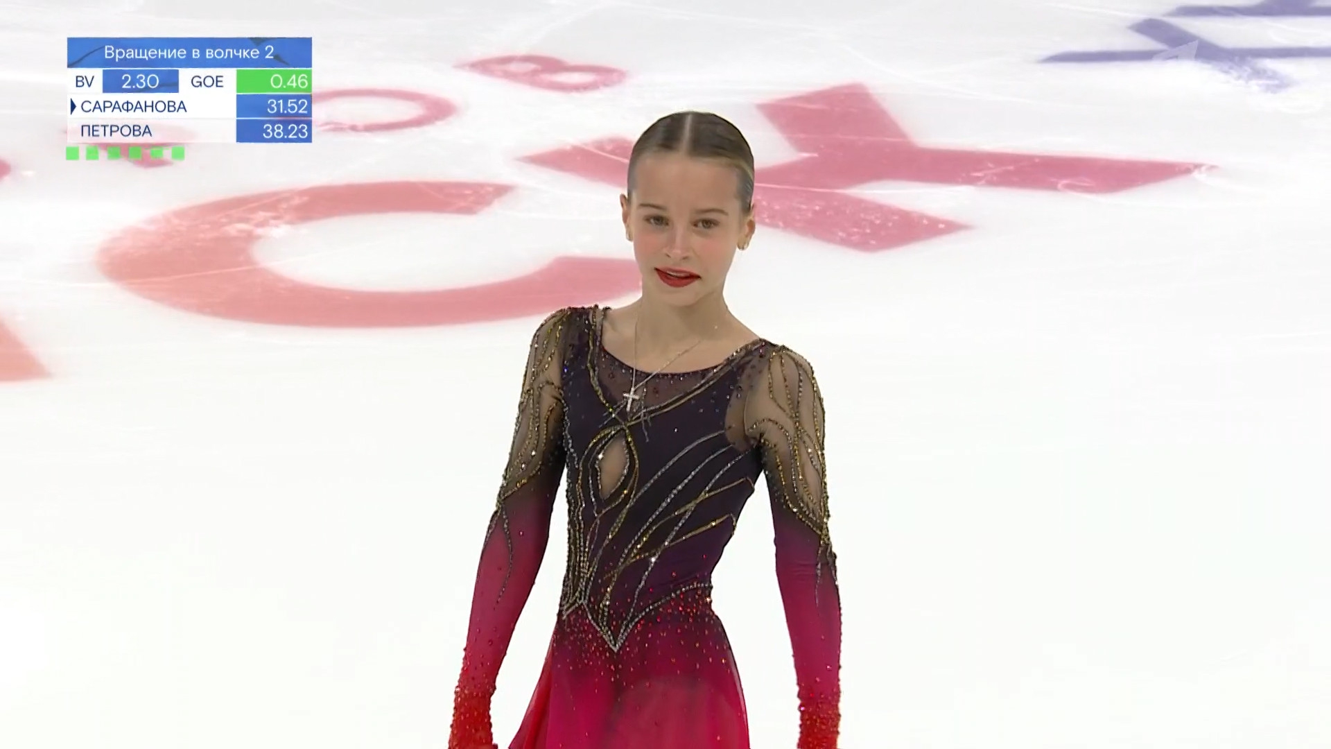 Дарина Денисовна ФЁДОРОВА в красной куртке с "Федорова Дарина" на спине Республика Алтай АНО "Сибирский лед", г. Горно-Алтайск 2a ho 2a ho 2a тройка 2t 3s< 2t ho stsqB "Darkwing Duck!" ccosp4 (дикторша стала говорить "комбинированное вращение со сменой ноги")