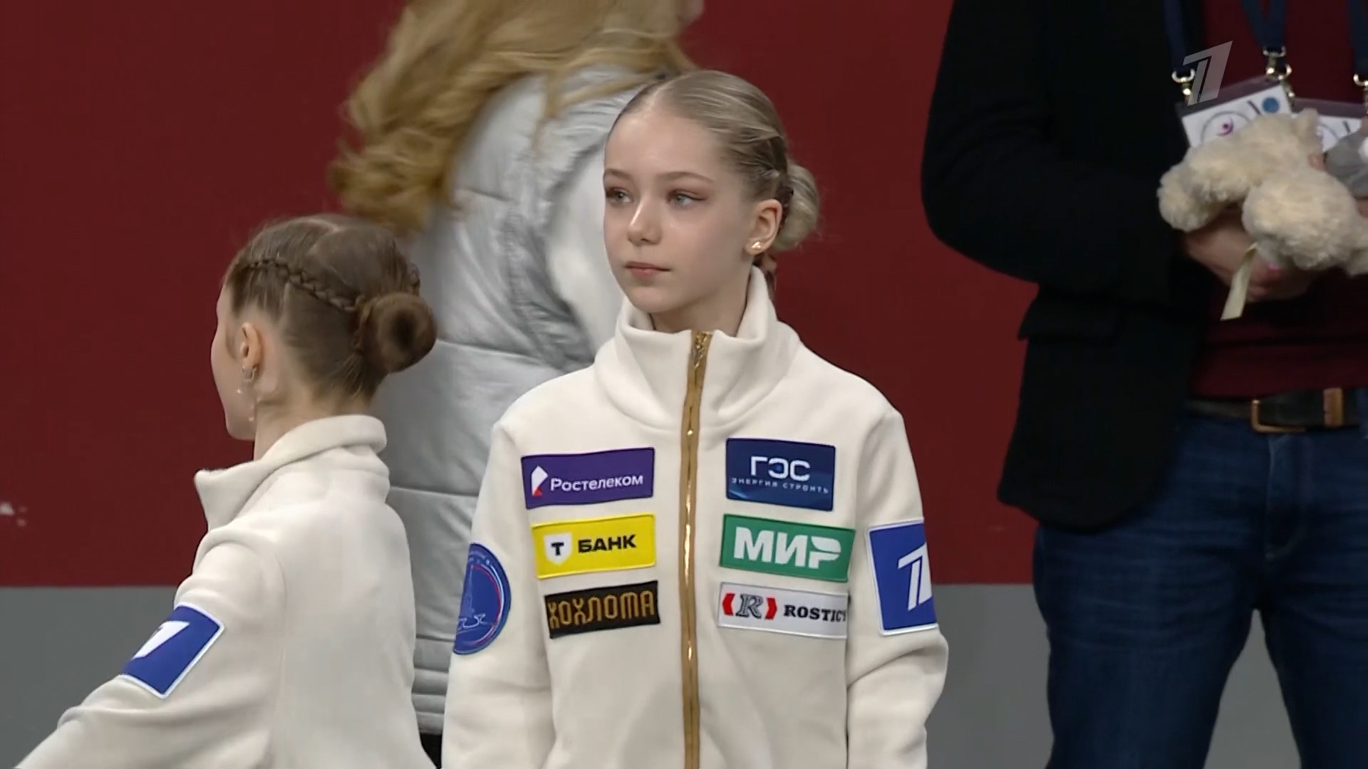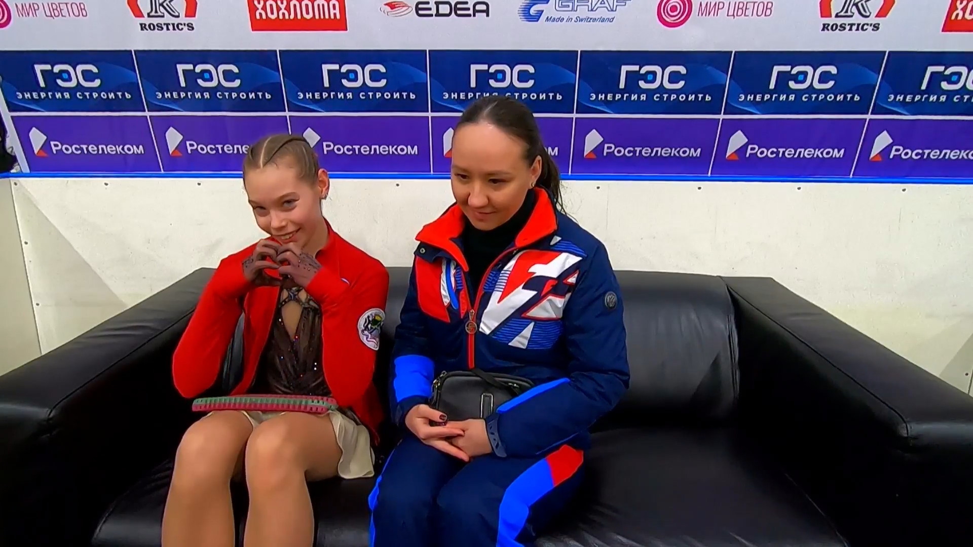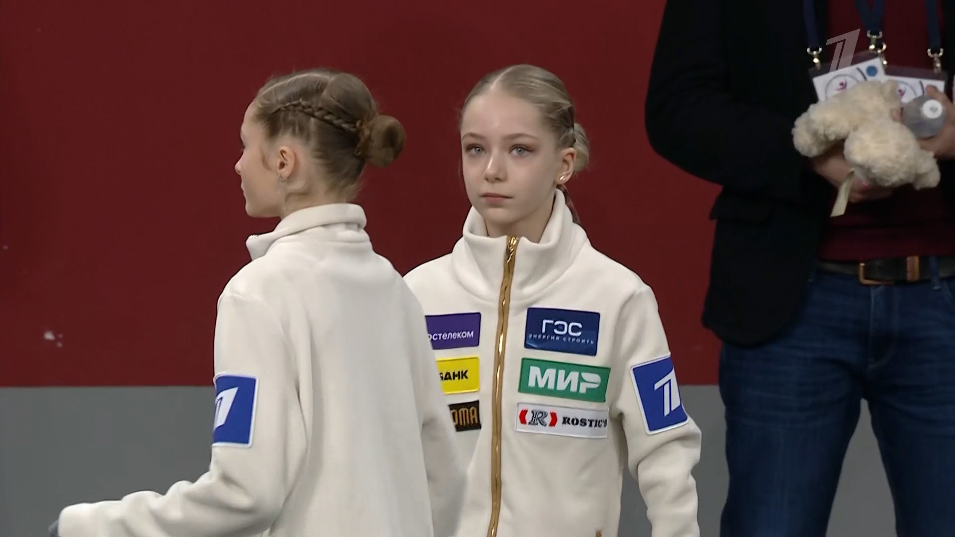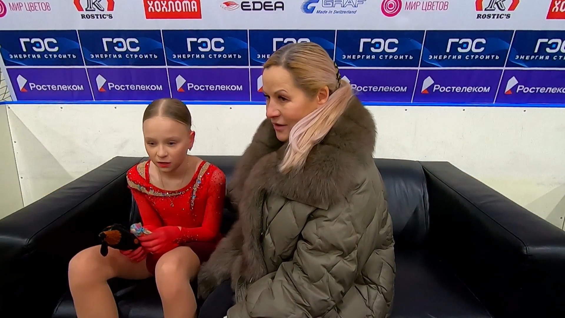 Дарина Денисовна ФЁДОРОВА в красной куртке с "Федорова Дарина" на спине Республика Алтай АНО "Сибирский лед", г. Горно-Алтайск 2a ho 2a ho 2a тройка 2t 3s< 2t ho stsqB "Darkwing Duck!" ccosp4 (дикторша стала говорить "комбинированное вращение со сменой ноги")