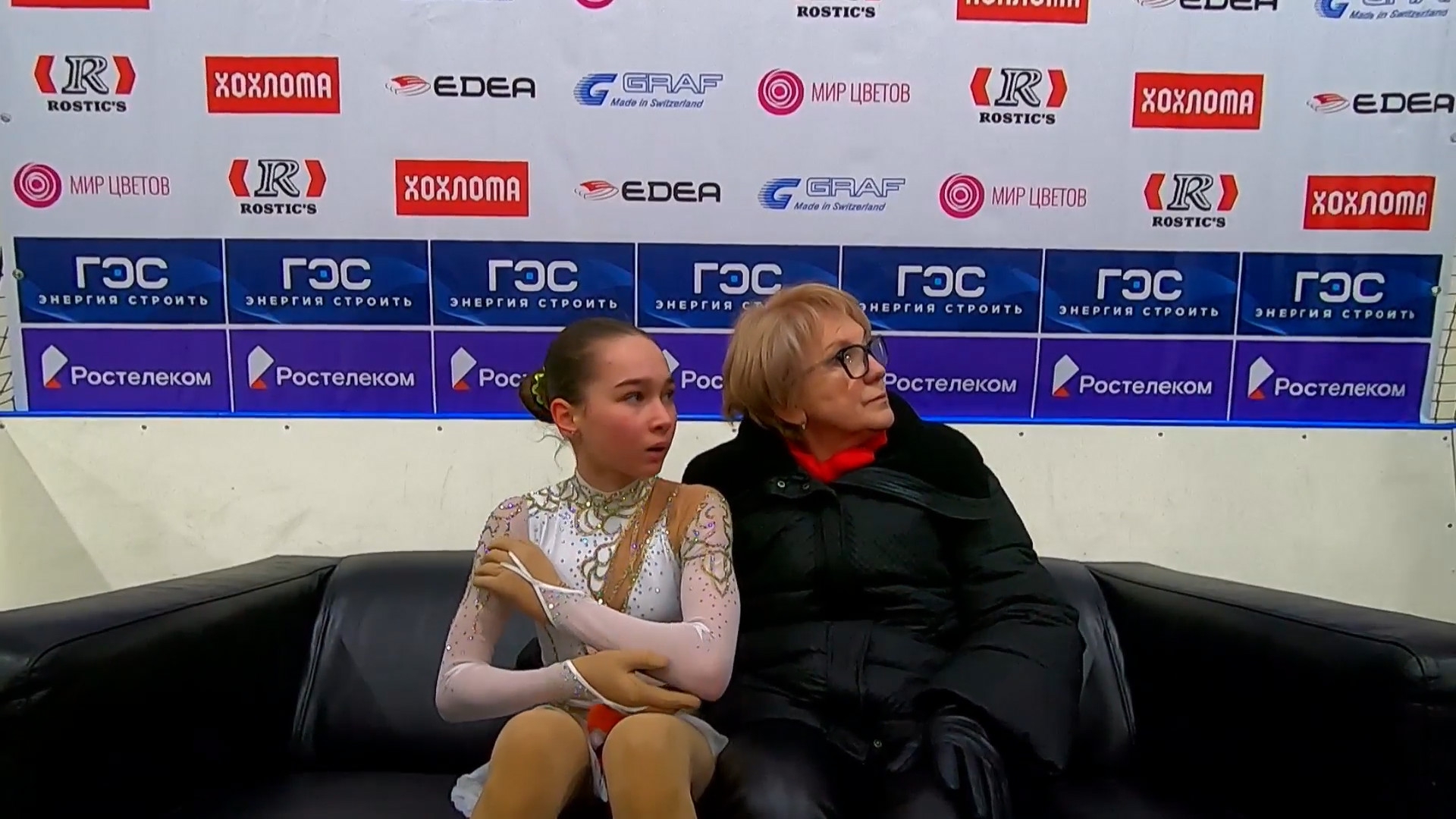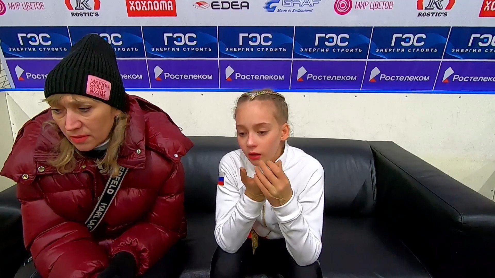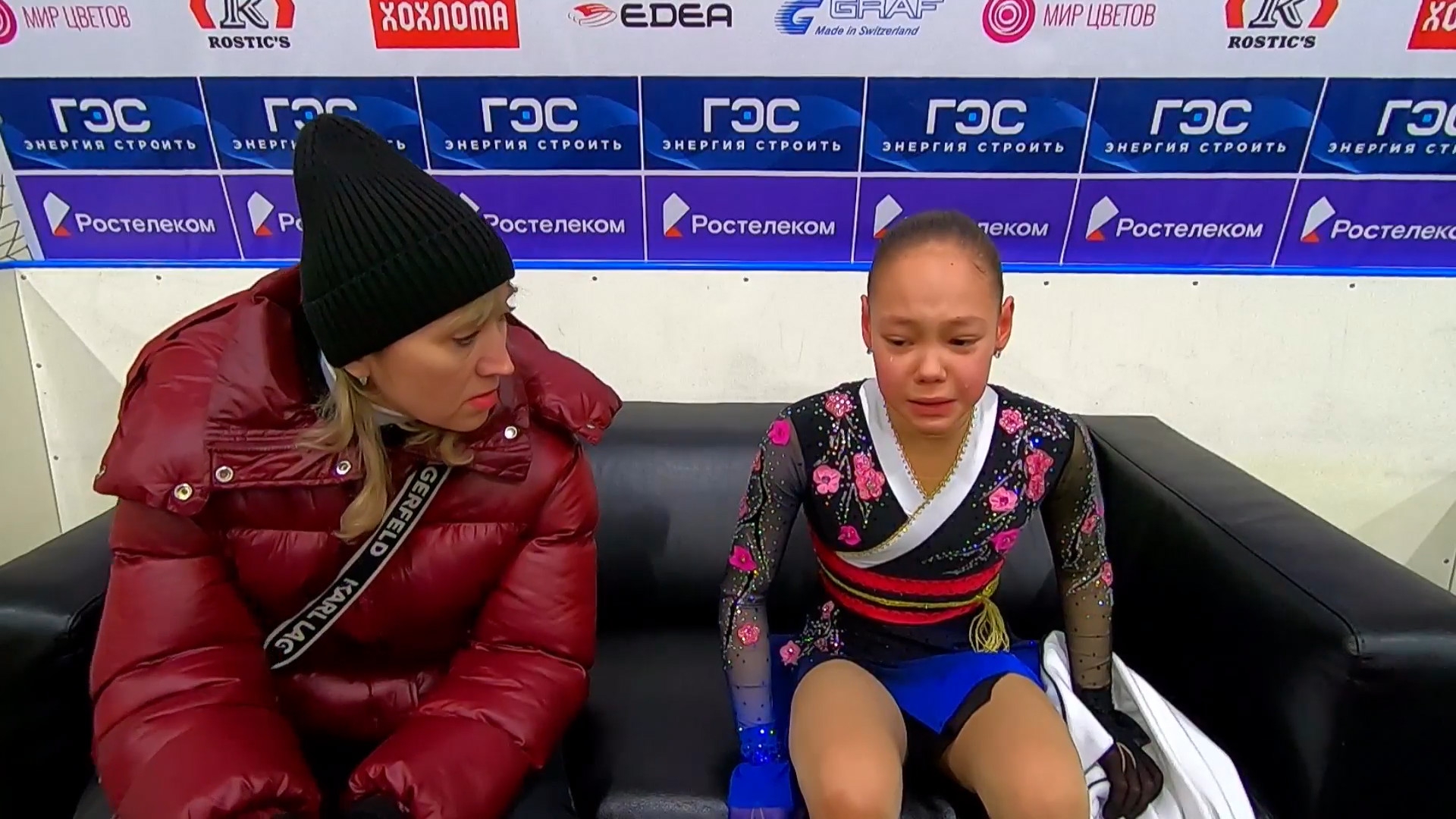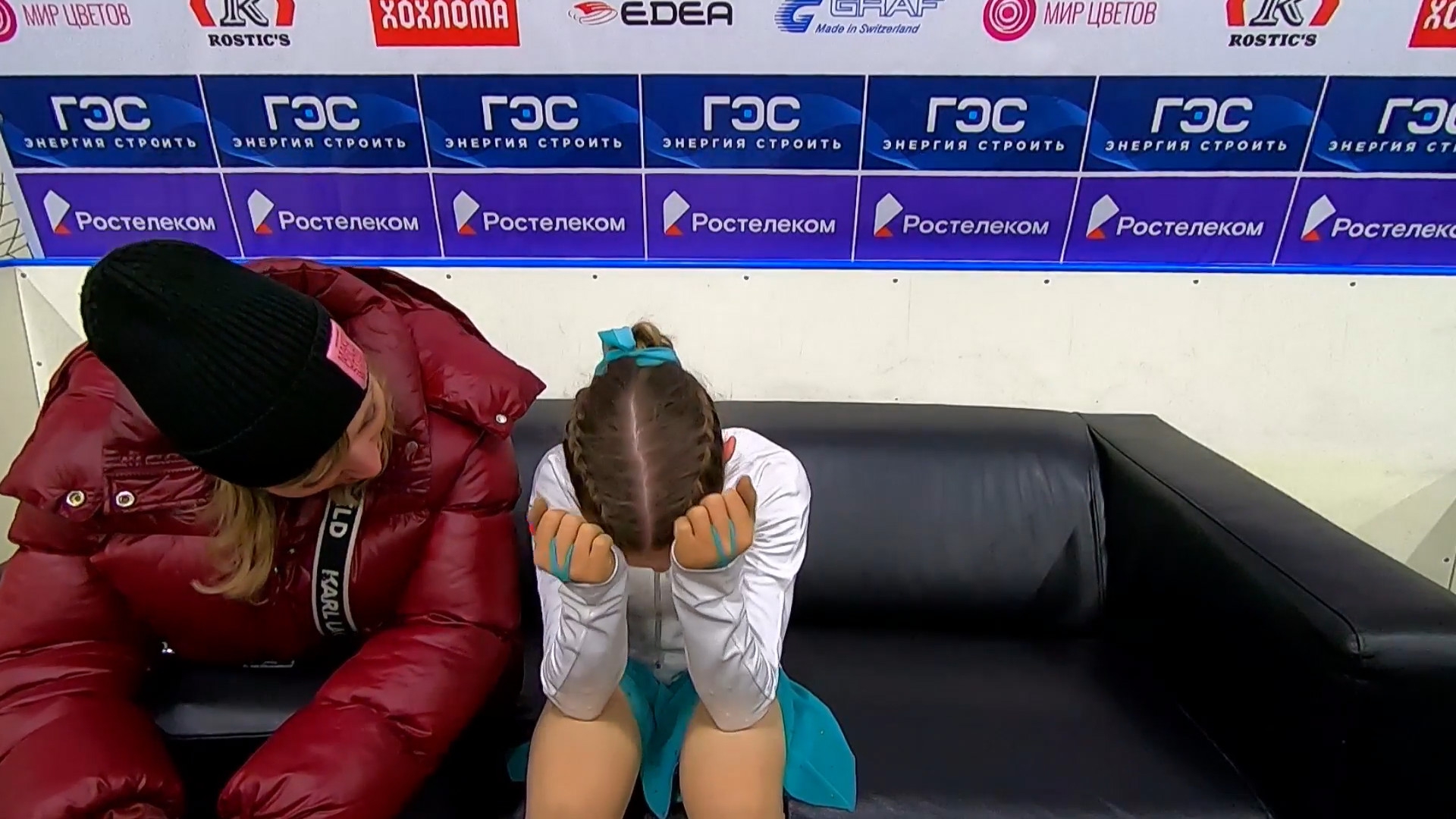 На получасовой тренировке, в единственном прокате произвольной программе под музыку, при полном судейском эшелоне, Сарновская перед первым трикселем , переехала Лене прыжок. Сбив его полностью. Сбив полностью настрой всего проката. Все судьи это видели. Все родители это видели. Мало того, Сарновская стала в угол где у Лены тулуп. Мешая прыгать.