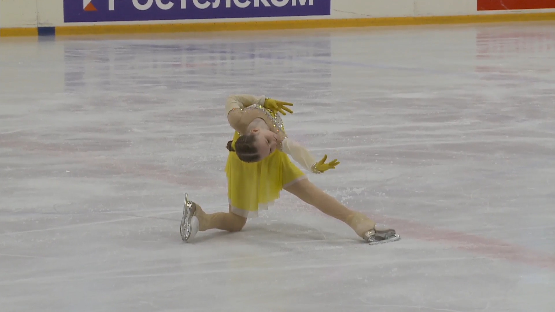 Мария Денисовна КАХИРА Омская область, "БУ ДО СШОР No 35" г. Омск Арцах в белом 3fe?<2t 3z< fall (раскрылась) 3t в разворот в слайде на коленях 3r so перекрутила? 3s unassisted в тройку 2a завалилась в бок so chsq1 3z fall +rep 3r в тройку 2t трёт в кике левый локоть