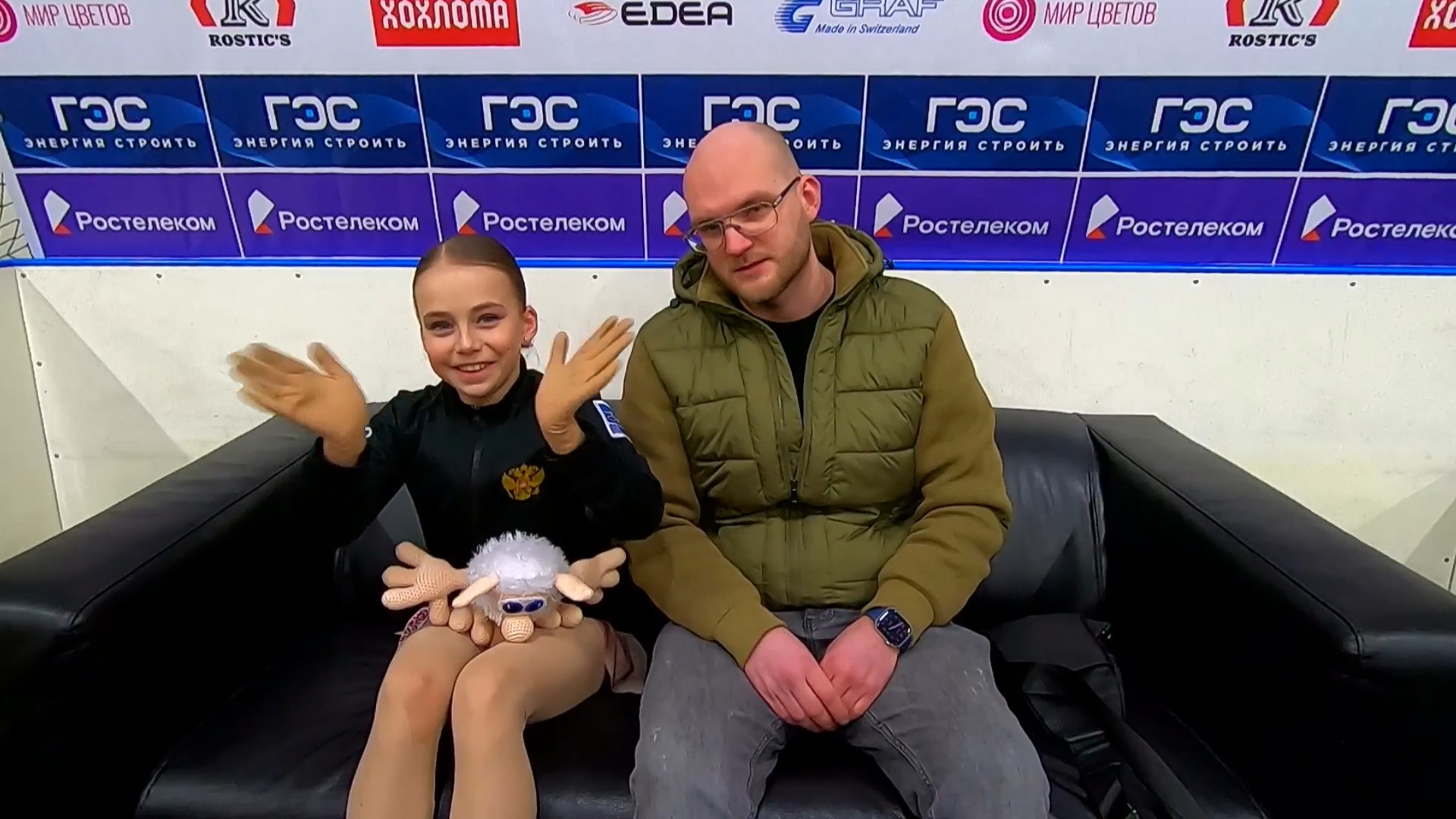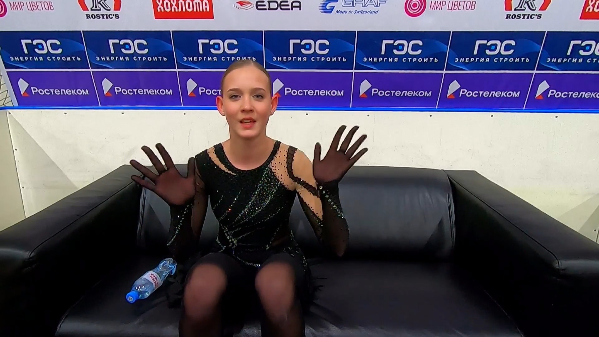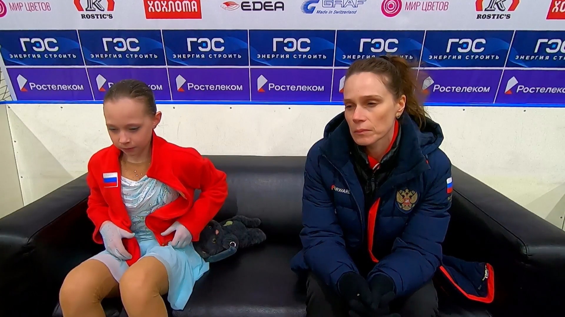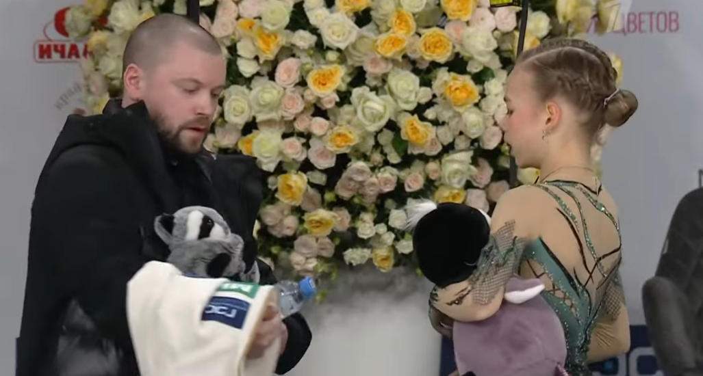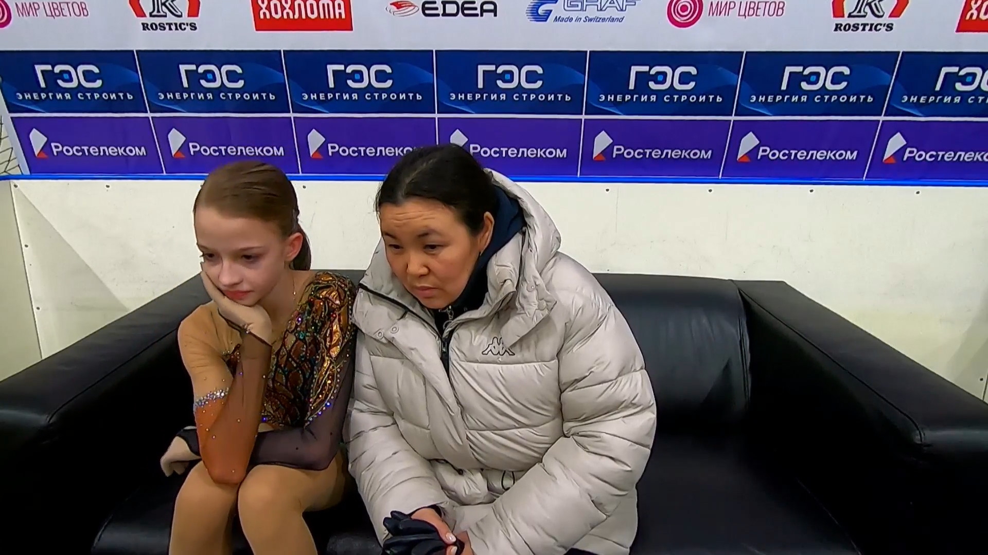 Софья Дмитриевна ФЕДОТОВА без Ефимовой Санкт-Петербург, СШОР "Звездный лед" посылает воздушный поцелуй 3z3t 2a с маха >хороший, пролётный с выездом 3r немного wobble stsq2 бежит на зубчиках в ssp3 lsp4 >практически в максимальный прогиб ушла Федотову целуют в макушку >понравилось что не уходила в себя, старалась отыгрывать