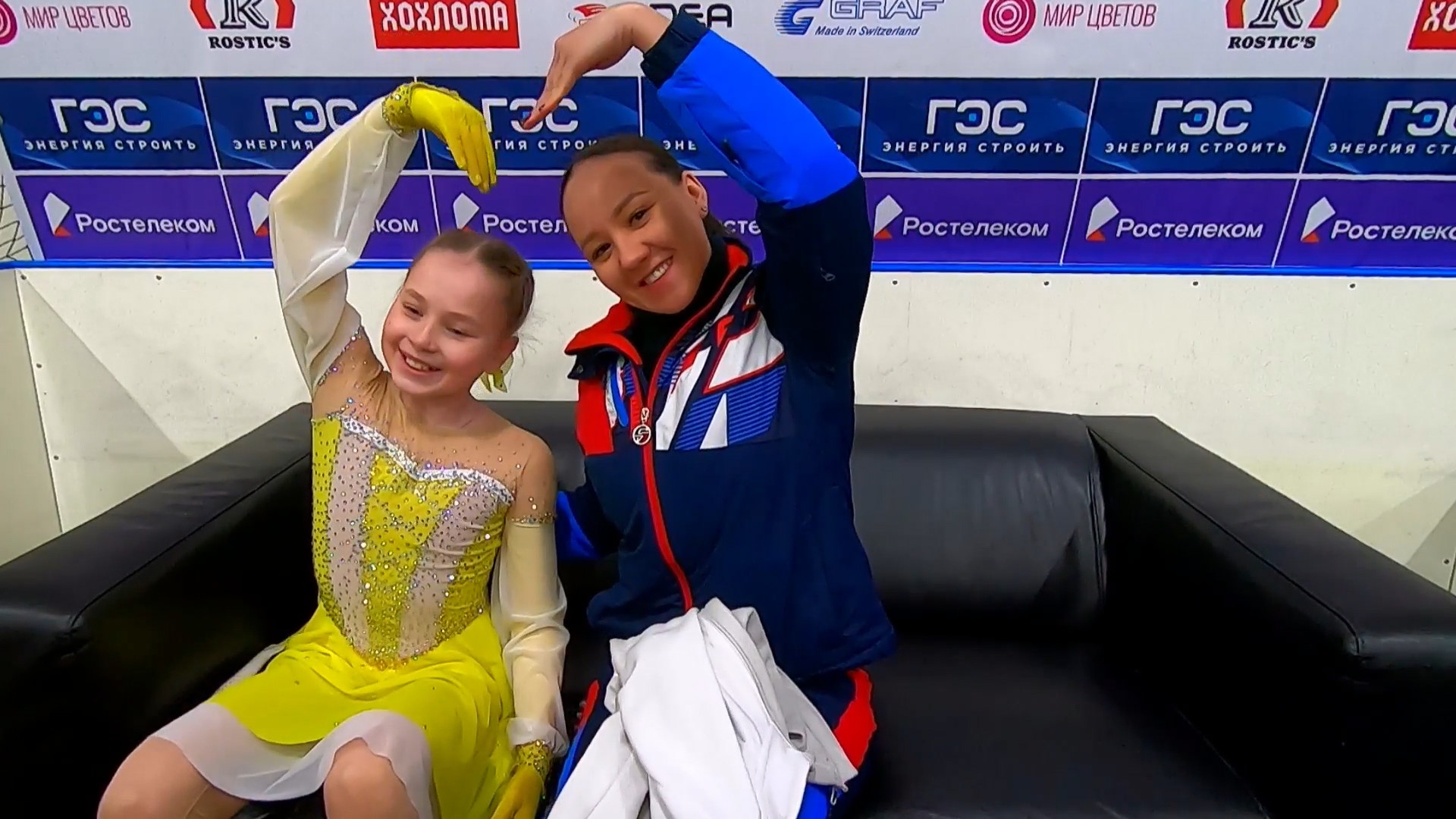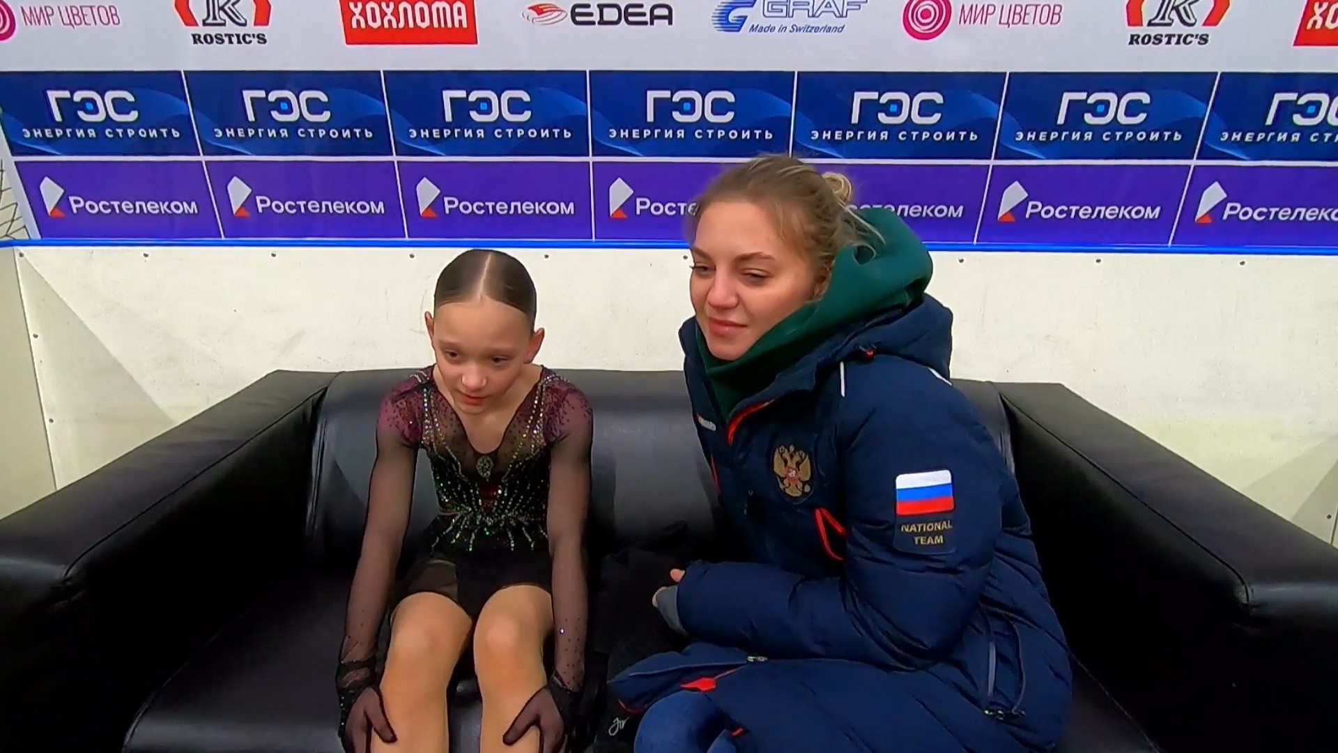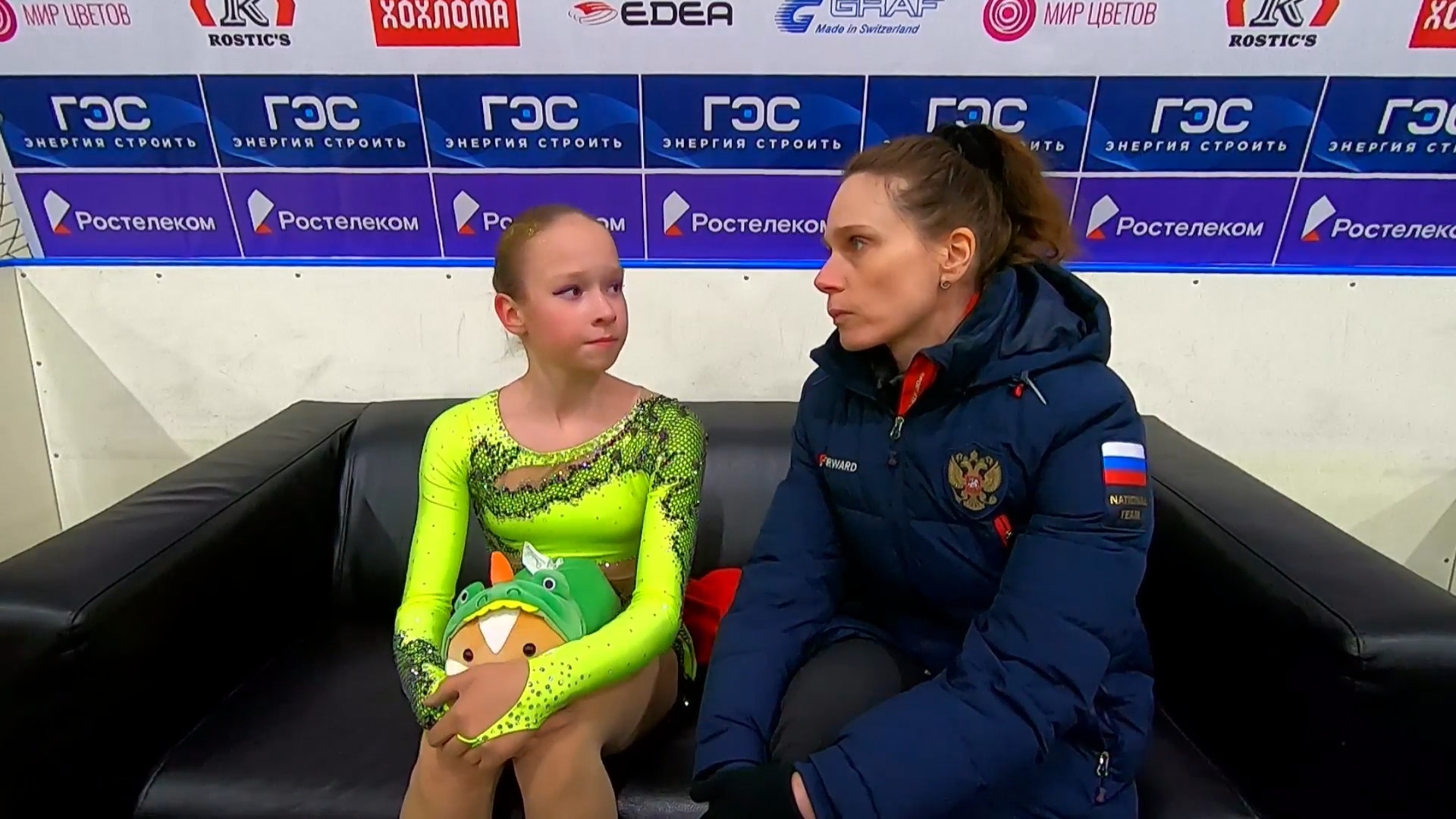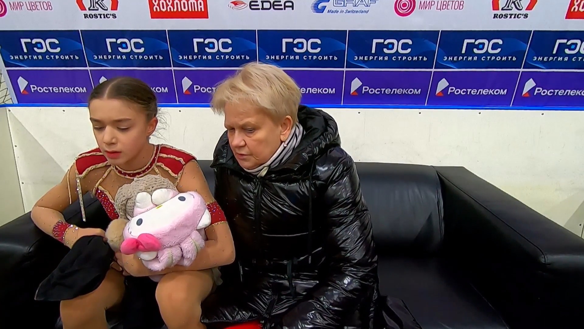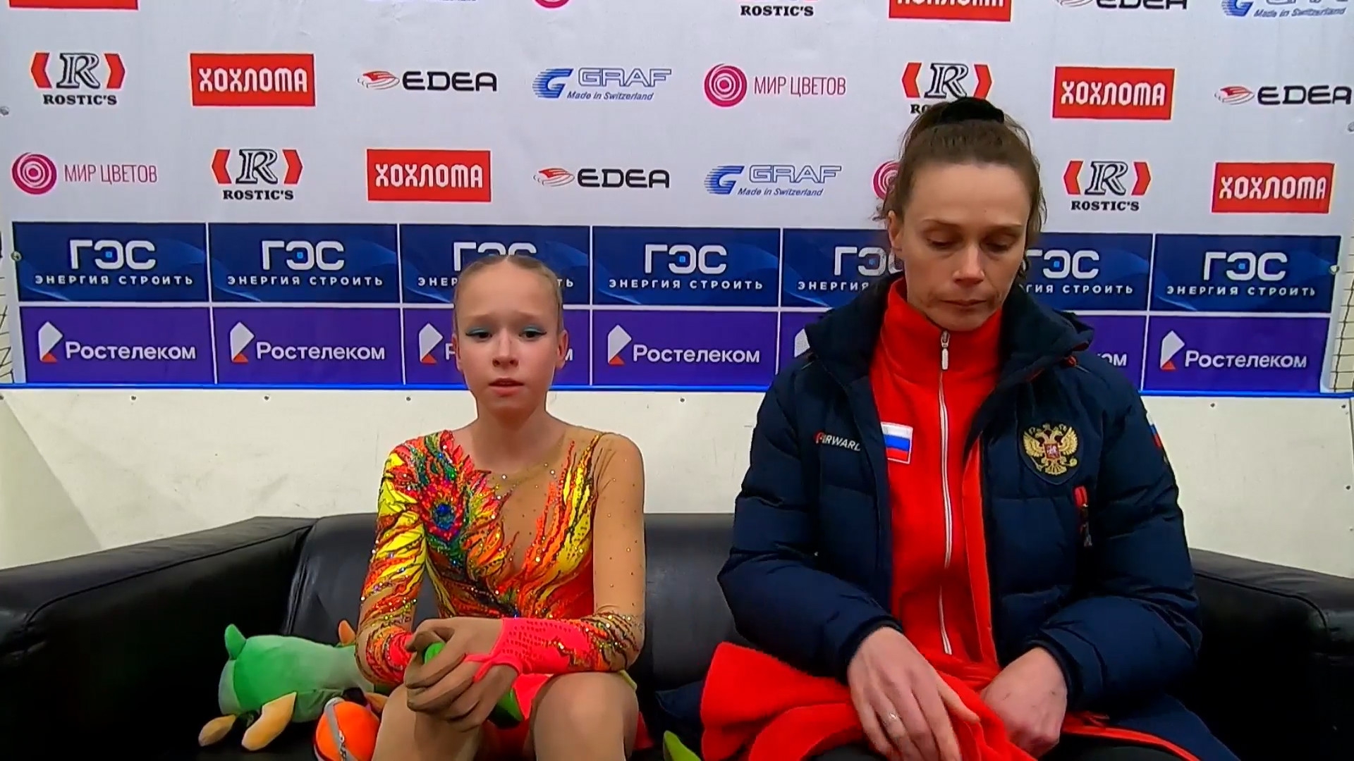 Софья Дмитриевна ФЕДОТОВА без Ефимовой Санкт-Петербург, СШОР "Звездный лед" посылает воздушный поцелуй 3z3t 2a с маха >хороший, пролётный с выездом 3r немного wobble stsq2 бежит на зубчиках в ssp3 lsp4 >практически в максимальный прогиб ушла Федотову целуют в макушку >понравилось что не уходила в себя, старалась отыгрывать