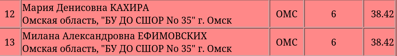 Мария Денисовна КАХИРА Омская область, "БУ ДО СШОР No 35" г. Омск 3z3t< 2a 3r ещё чуть-чуть и Кахира станет Кихирой тоже закончила чуть раньше >Мурашко третья???