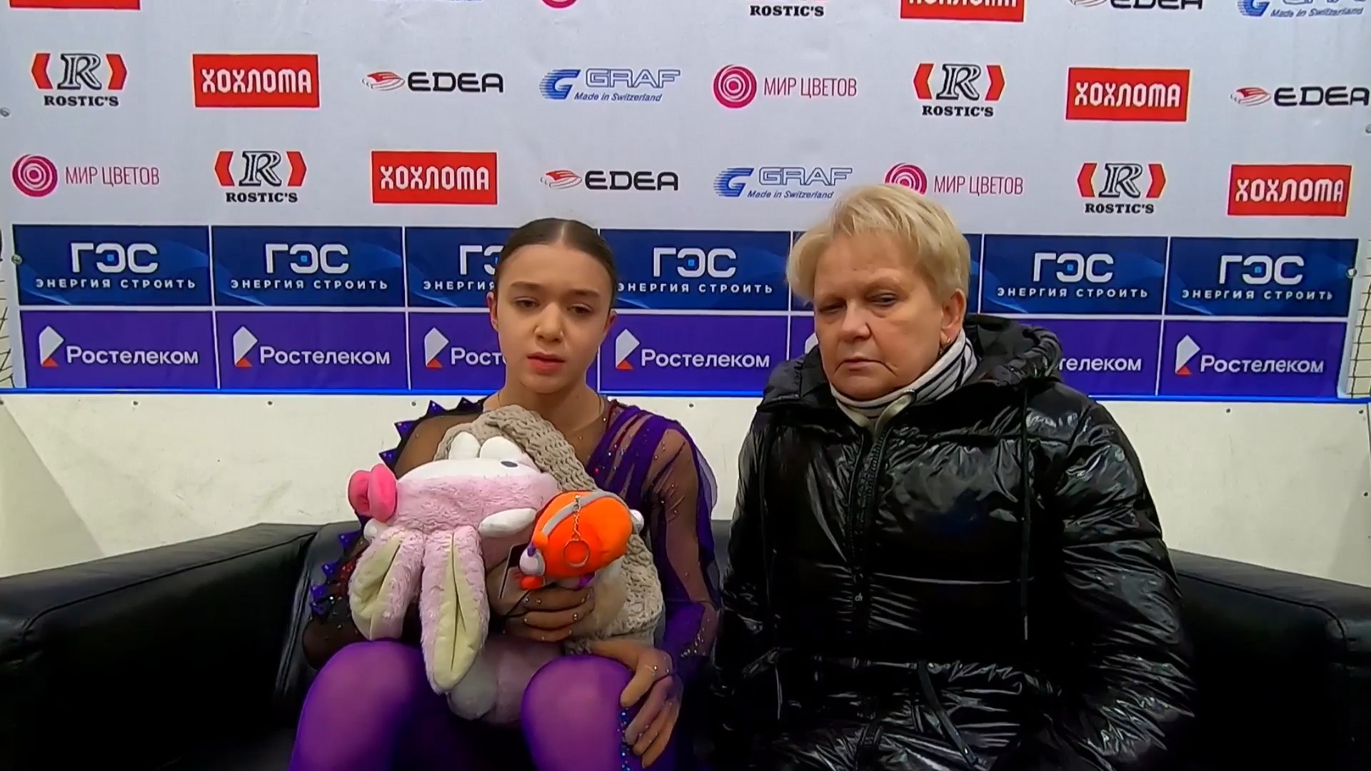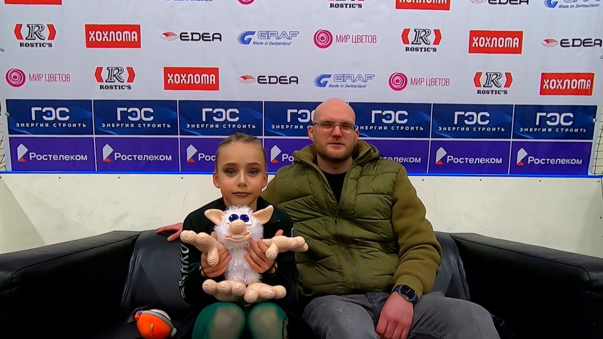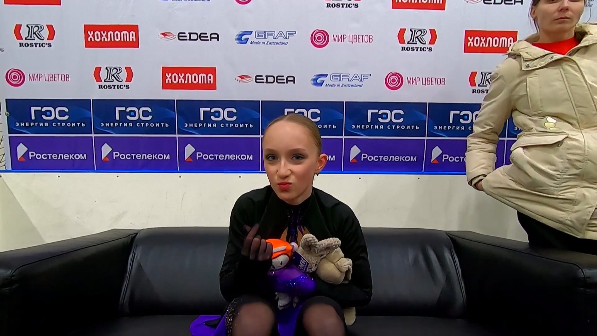 Елизавета Николаевна ЧЕРНЕНКО с А.Ю. с розовой лисой и какой-то хренью (котом?) + львёнок СПб, МО Введенский СПБ ГБУ ДО СШОР "Звёздный лёд" 2a с хз в хв с танцевальными па 2f 2z2t