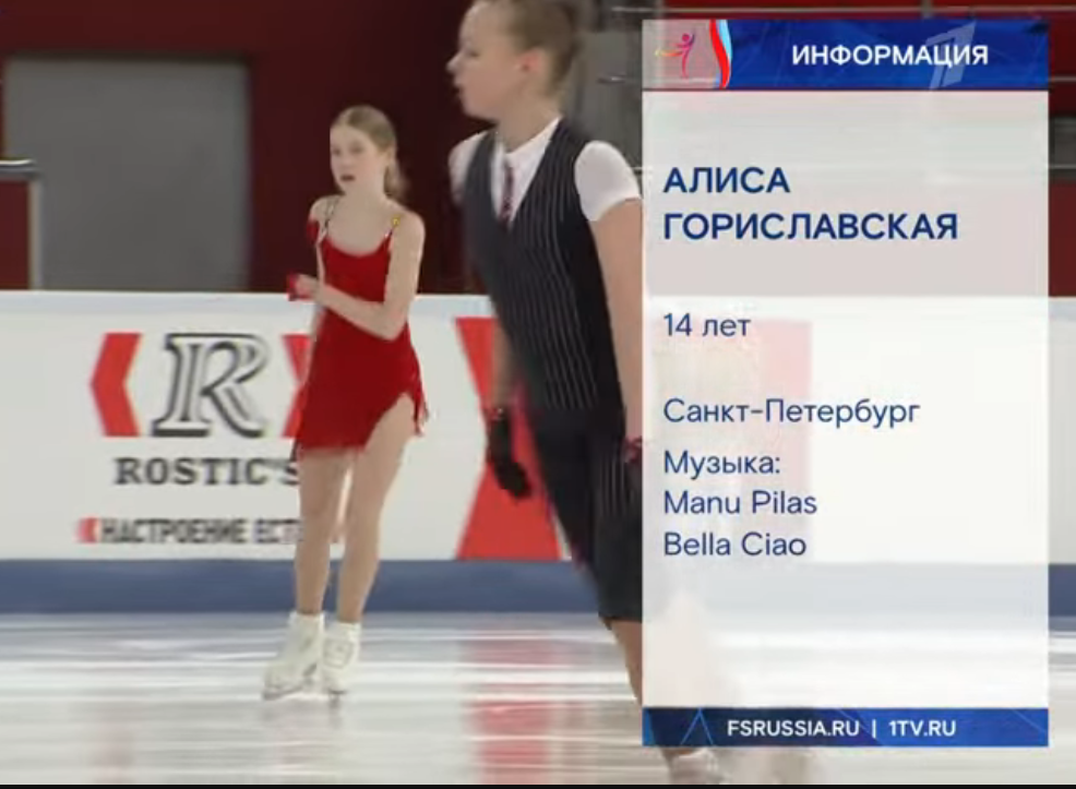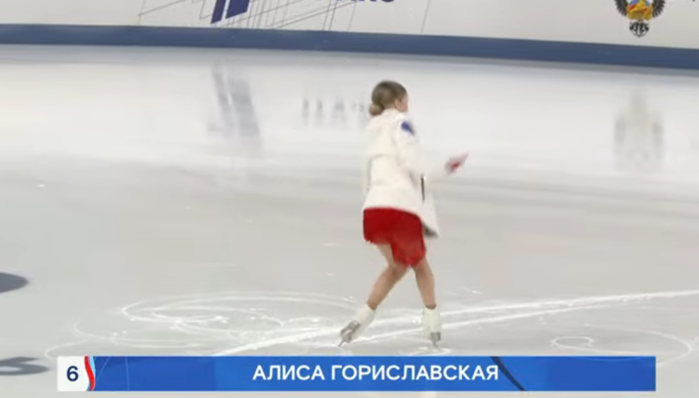 Алиса Дмитриевна ГОРИСЛАВСКАЯ, aka proto-chuk, aka matrjoshka-girl Санкт-Петербург, СШОР "Манеж" обратный кораблик 3r в выезд с замком сзади 2a с маха танцует на месте секунд 10 3z3t в шаги и твизлы stsq2 скачет как коза amused