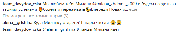>Все что я сегодня прочитала в адрес своего ребенка это просто ужас. Люба никогда и никому не прислуживала . Если и помешала Лене , то случайно. После операции , когда Люба катала программу , Лена лезвием заехала ей в спину , никто не кричал и не выяснял, потому-то это лед и такое бывает.Страшно такое читать. То Люба Рудковской служит, то Сарновским. Да она уже с группы ушла где Лена тренируется, чтобы ее не трогали. Всегда нужно смотреть за своим ребёнком , обсуждая чужих , можно своего просмотреть, да ещё как просмотреть☝️ .Всем доброго дня! Леночка ебашит конкуренток коньком в спину. Спрутику надо быть осторожным.