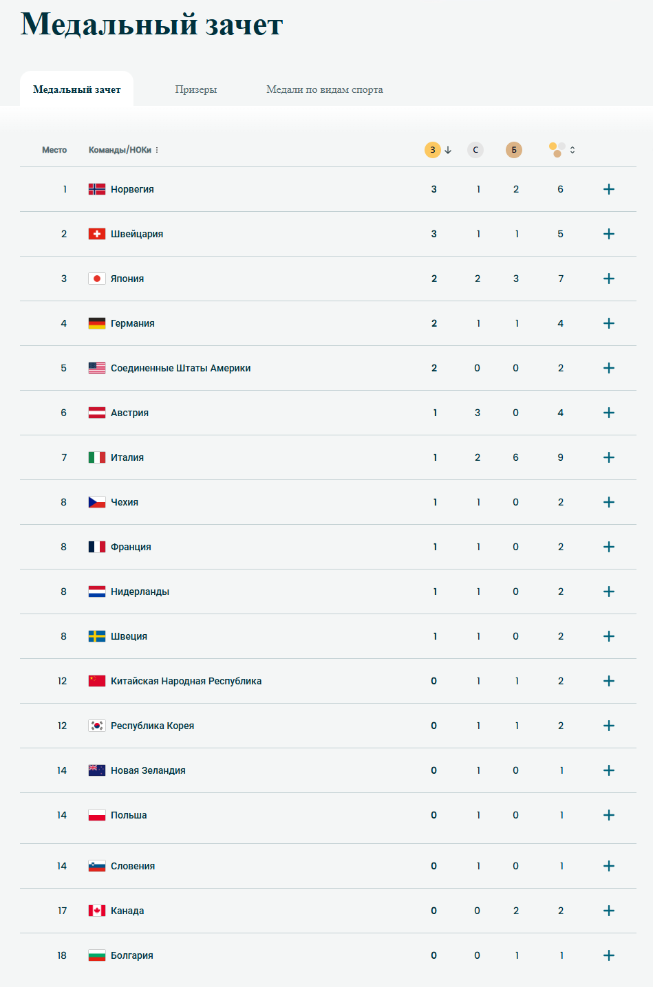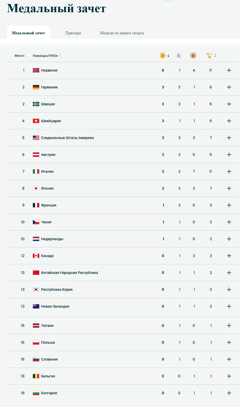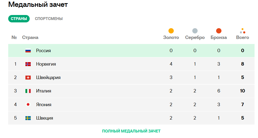 Текущая таблица, если бы американки золото в слаломе не провалили, было бы чистое второе место у США, сюка блят. Ждём золото слоняры Дропкина, — сразу же после матча за брынзу будет, анончики?