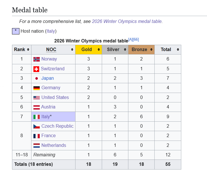 Я уже писал, что у некоторых стран лузерский менталитет у спортсменов, а у некоторых чемпионский. С чемпионским постоянно берут золото, а с лузерским постоянно в медалях, но почти всегда мимо золота. Эта тенденция повторяется у одних и тех же стран на каждой Олимпиаде, т.е. это не совпадение. И я назвал страны с самым лузерским менталитетом, это Россия и Италия, постоянно замечаю, что на каждых ОИ именно у этих стран много медалей и почти нет золота. Какой-то клоун писал, что это неправда и вообще существуют какие-то мифические объективные факторы, а не менталитет. Но смотрим на эти ОИ. Россию не оценить, потому что её тут нет фактически, но вот Италия даже на домашней Олимпиаде полностью подтверждает это. Больше всего медалей, но всего одно золото. Т.е. реально почему у одних и тех же стран менталитет лузеров годами и десятилетиями, а другие типа США и Норвегии наоборот стабильно берут много золота.