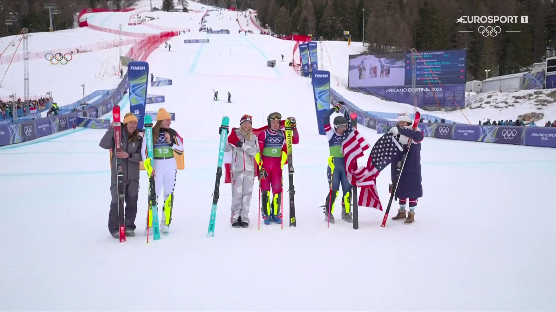 В командной горнолыжке у баб для США должно быть золото, жаль наша слоняра разбиласть, но внучка Шифрина затащит. Плюс Дропкин сёднь, два золота наметилось на горизонте, — это примерно первое-второе место в зачёте