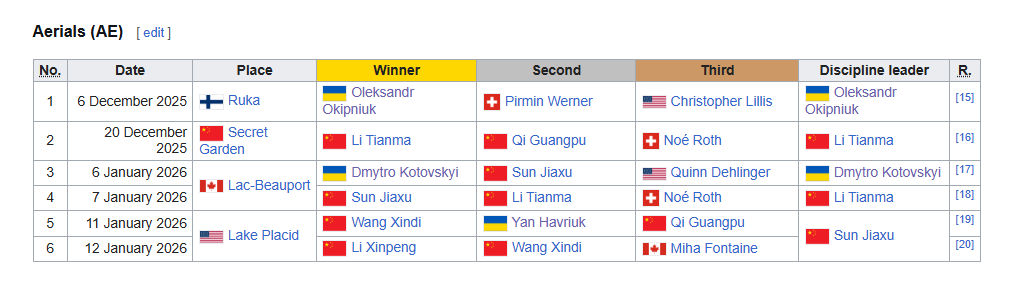 >>3285783 >>3285784 Изучил матчасть, у хохлов был чуть ли ни единственный вид спорт, где они что-то показывали, был биатлон. Но теперь они деградировали и нет шансов на медали. Последний подвид спорта, где у них есть какие-то результаты, это фристайл-акробатика. Там они в микст-команде действующие серебряные призеры ЧМ-2025 в командном турнире. Т.е. это единственный вид, где у них может быть медаль, и то не факт, вряд ли больше одной и вряд ли будет золото. У российских нейтралов шансы на медаль как минимум у Петросян. Так что большая вероятность, что одна Петросян в итоге вытянет наших в общем зачете выше, чем хохлов.