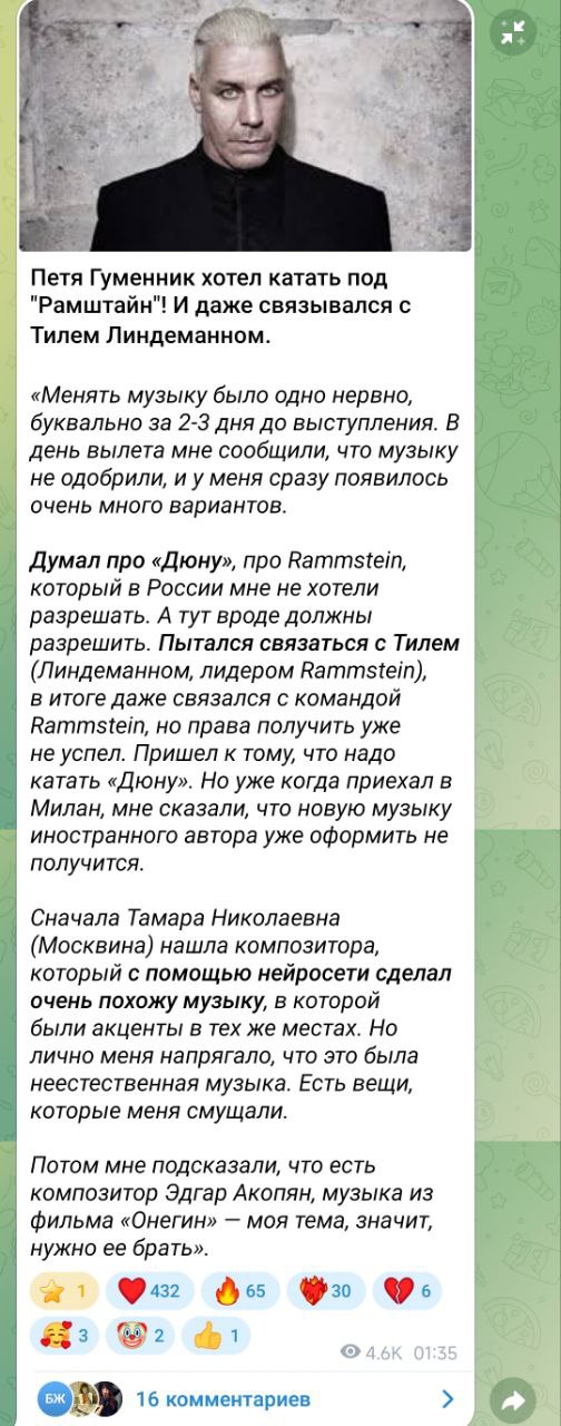 >>3285502>>3285485 Лол, цитата с эфира следом: "Нам там тоже почему-то предъявляли на смешанке, что дескать мы украинцев не называли. Что за ерунда. На самом деле украинцы, объективно не входили в круг претендентов на награды. Не только Украина у нас не звучала в эфире...Ну если хотите, записывайте, сколько раз мы сегодня произнесем Украина. Я готов. Я готов к этому челленджу"