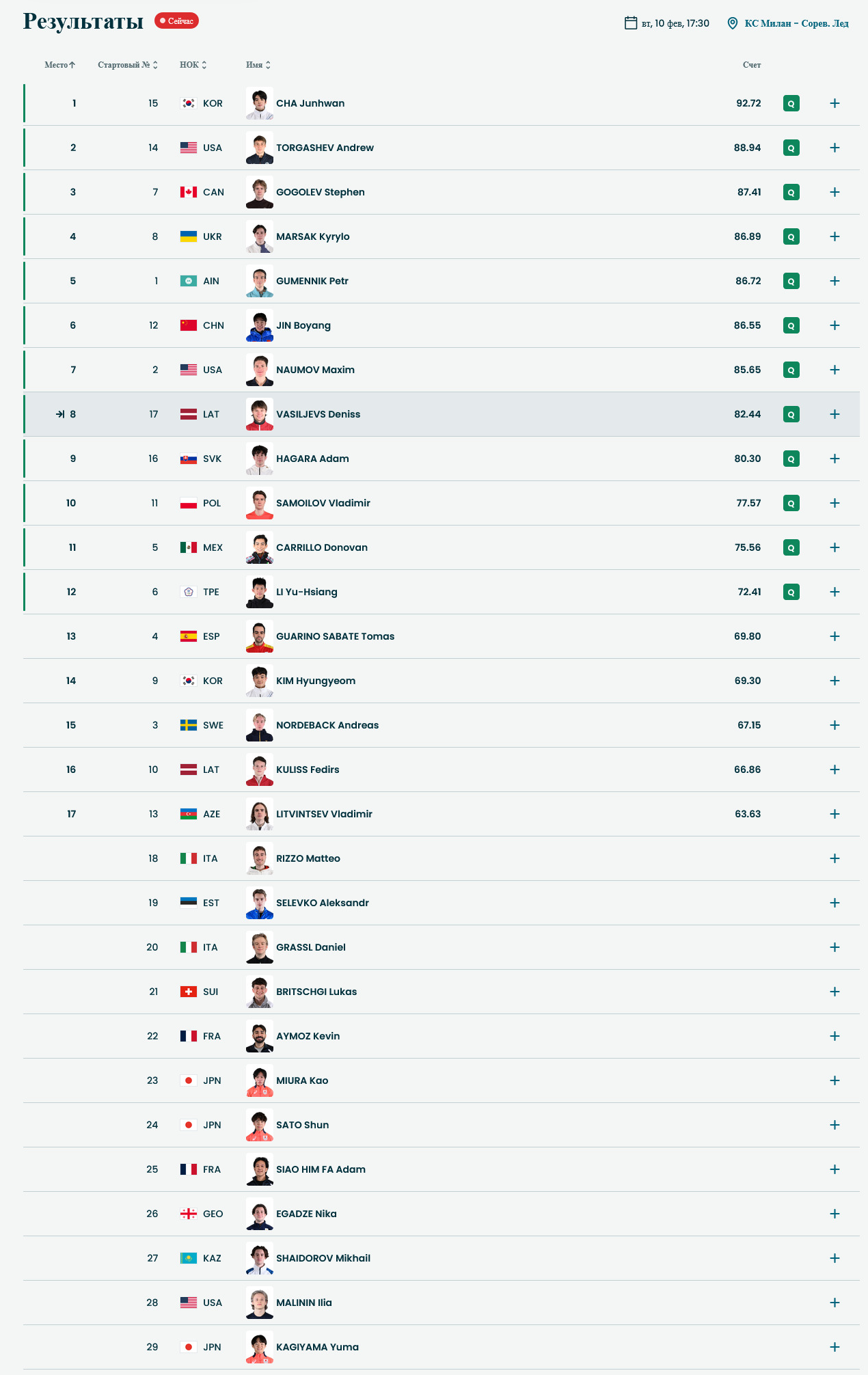 Пиздец, 29 человек, минус Гуменник, равно 28 человек. И из 28 человек - 8 с русскими фамилиями: Малинин, Шайдоров, Васильев, Торгашёв, Литвинцев, Самойлов, Гоголев и Наумов.