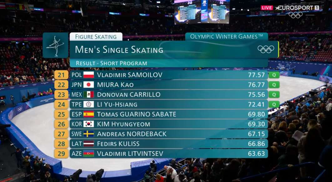 Пётр Гуменник (Россия). Максим Наумов (США). Андреас Нордебек (Швеция). Томас-Льоренс Гуарино Сабате (Испания). Донован Каррильо (Мексика). Ю-Сян Ли (Китайский Тайбэй). Стивен Гоголев (Канада). Кирилл Марсак (Украина). Ким Хёнгём (Южная Корея). Фёдор Кулиш (Латвия). Владимир Самойлов (Польша). Цзинь Боян (Китай). Владимир Литвинцев (Азербайджан). Эндрю Торгашев (США). Джун Хван Ча (Южная Корея). Адам Гагара (Словакия). Денис Васильев (Латвия). Маттео Риццо (Италия). Александр Селевко (Эстония). Даниэль Грассль (Италия). Лукас Бричги (Швейцария). Кевин Аймоз (Франция). Као Миура (Япония). Сюн Сато (Япония). Адам Сяо Хим Фа (Франция). Ника Эгадзе (Грузия). Михаил Шайдоров (Казахстан). Илья Малинин (США). Юма Кагияма (Япония).