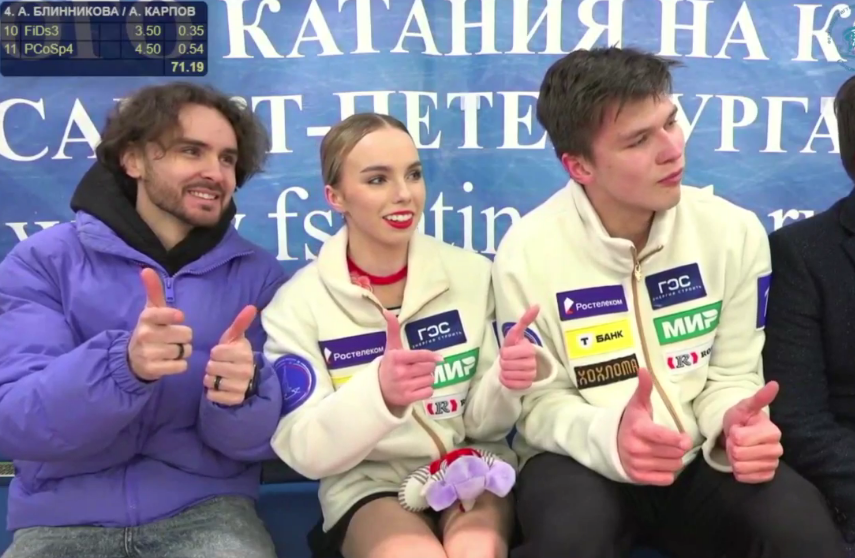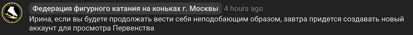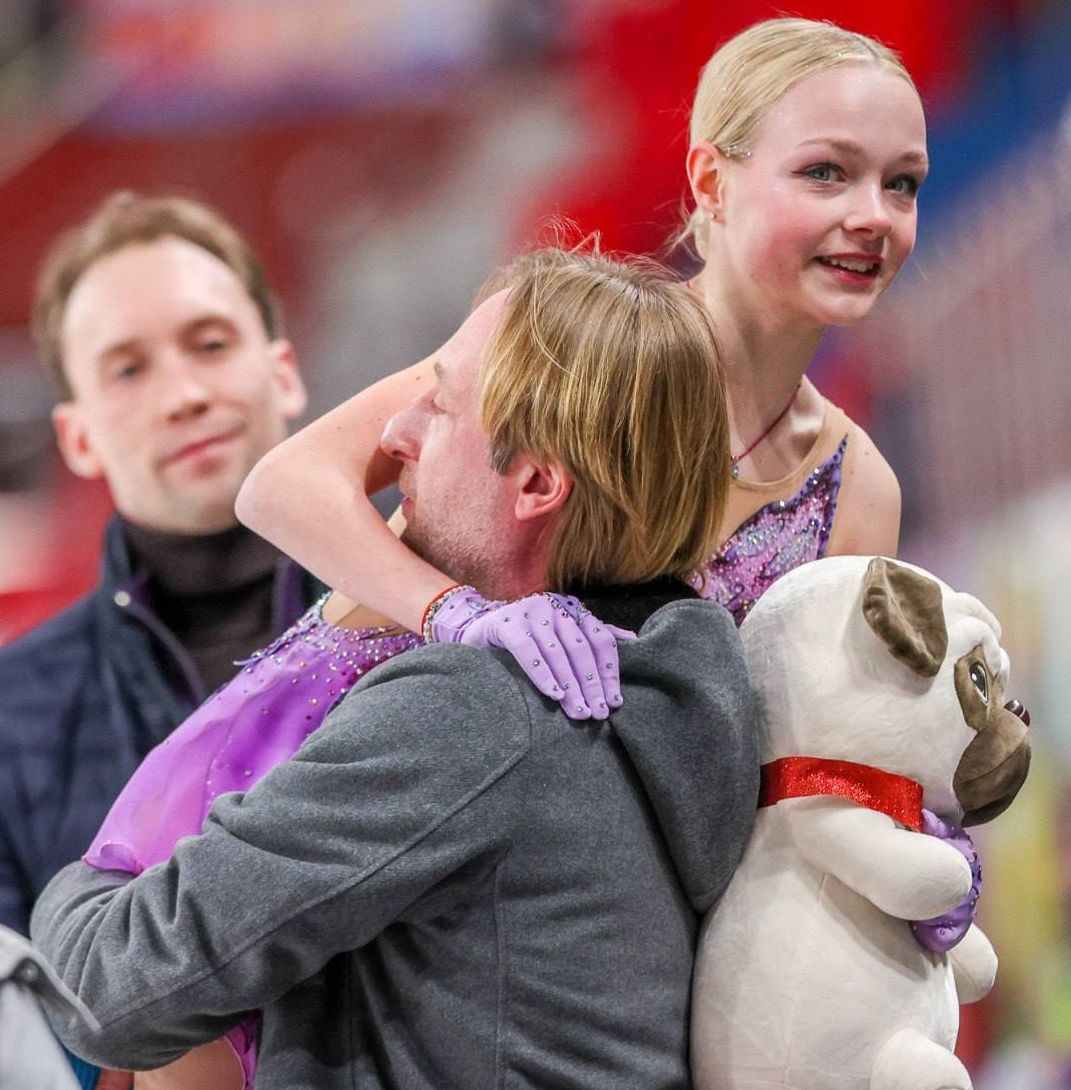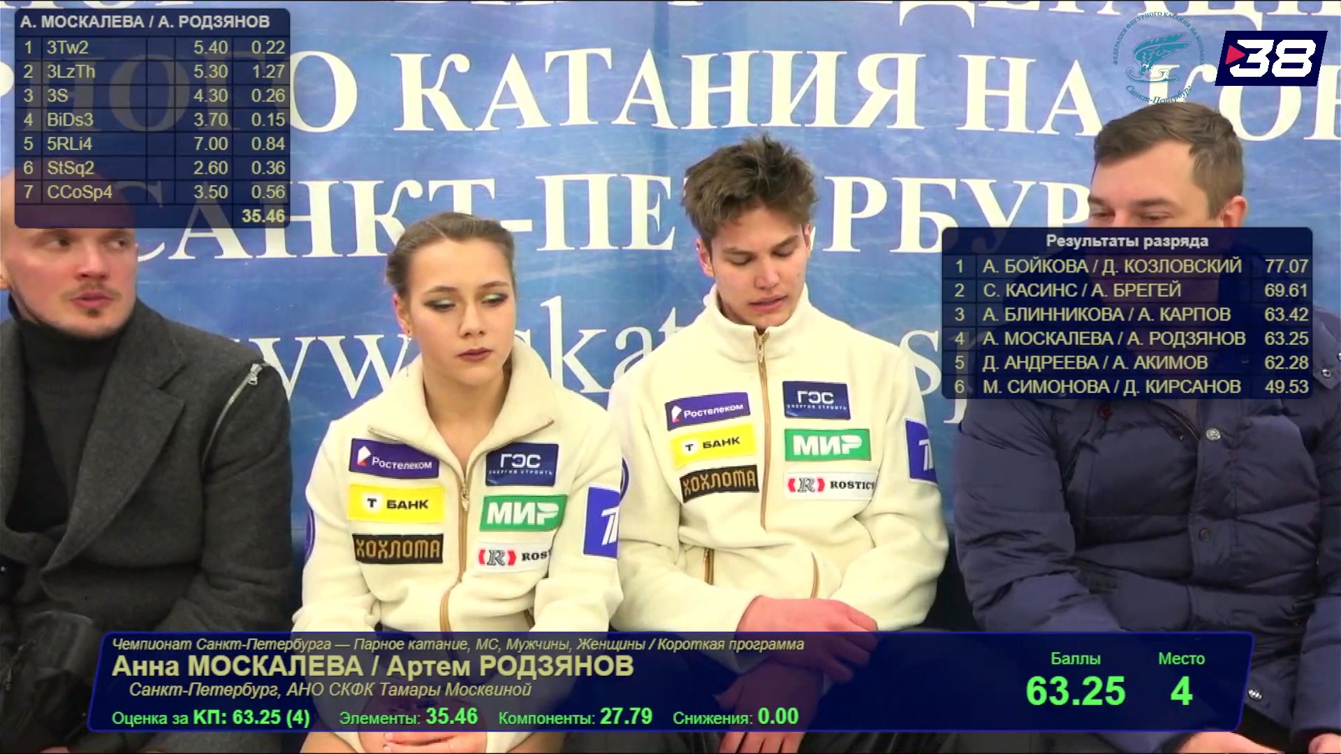 Мирослава Евгеньевна ТРОШИНА с Власовым и редким для юниорок предметом одежды 2a< fall 2f закрутило 2r ho? +2t ho? stsq1 14,87 Волчкова всегда найдет способ испортить себе репутацию. Ну что это за группа после Калугиной-Кривоносовой-Костылевой