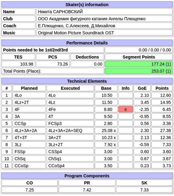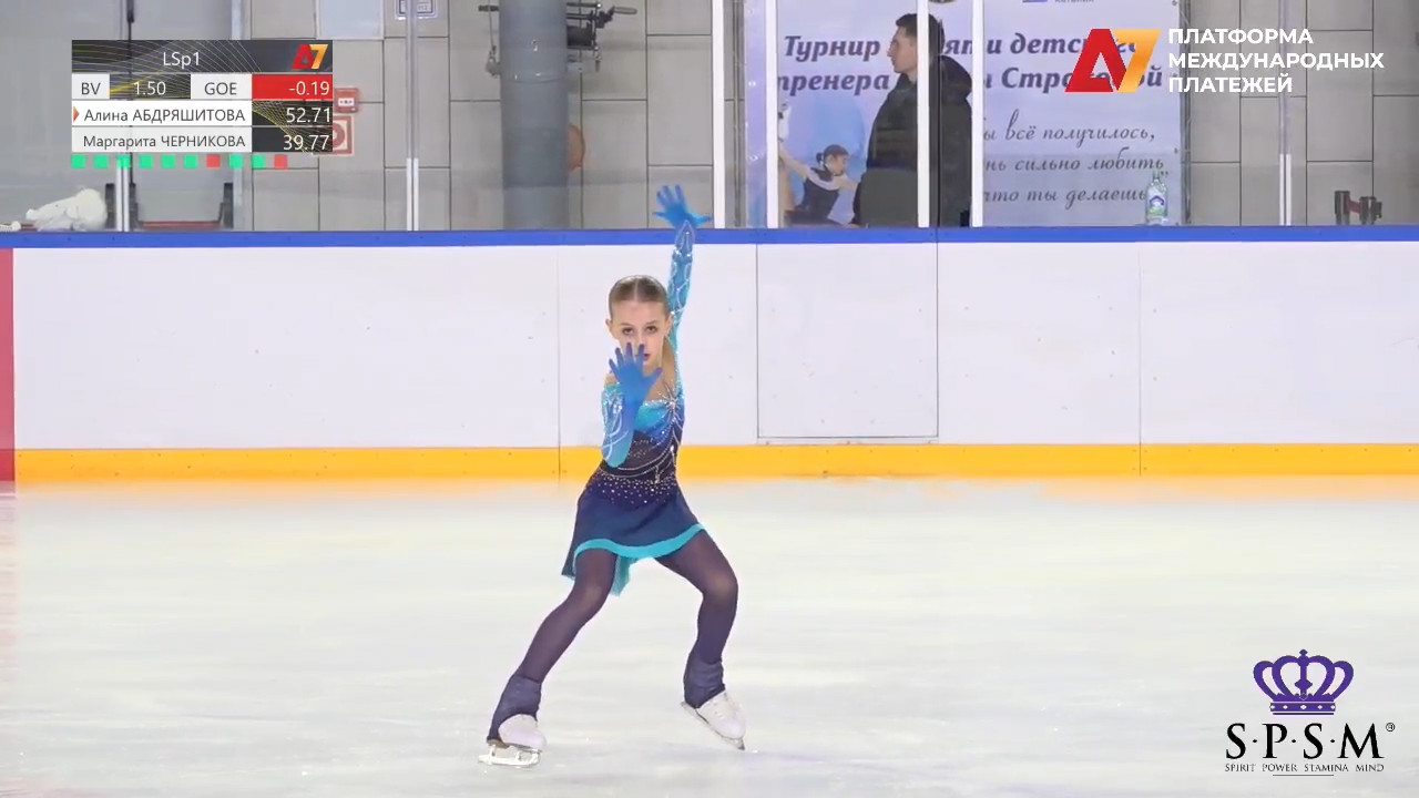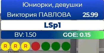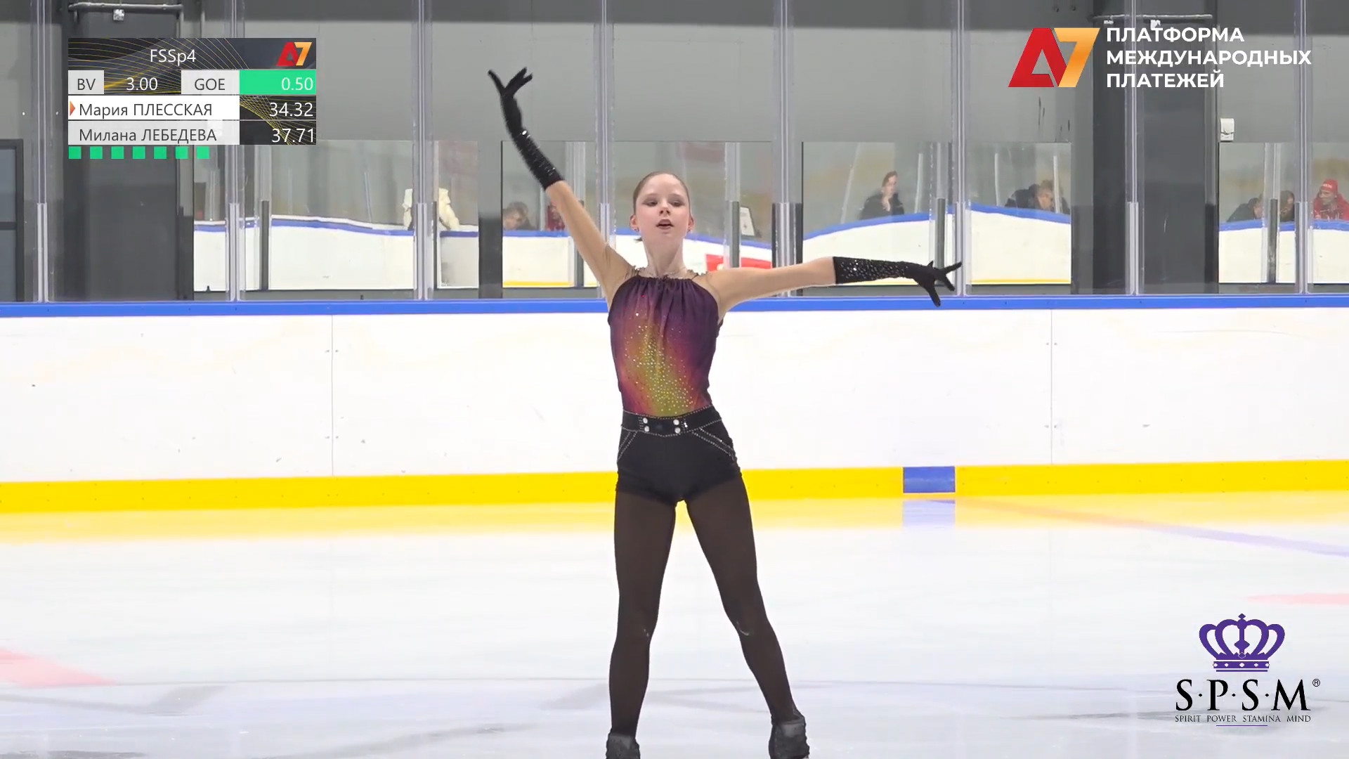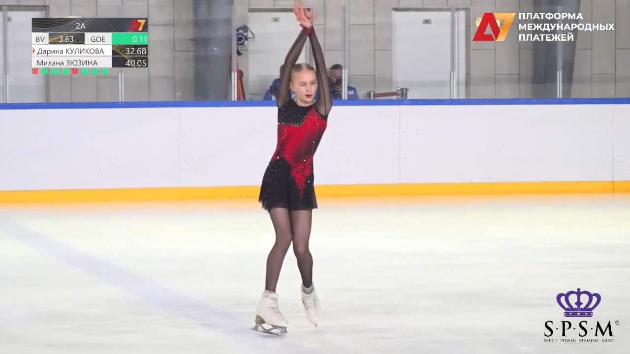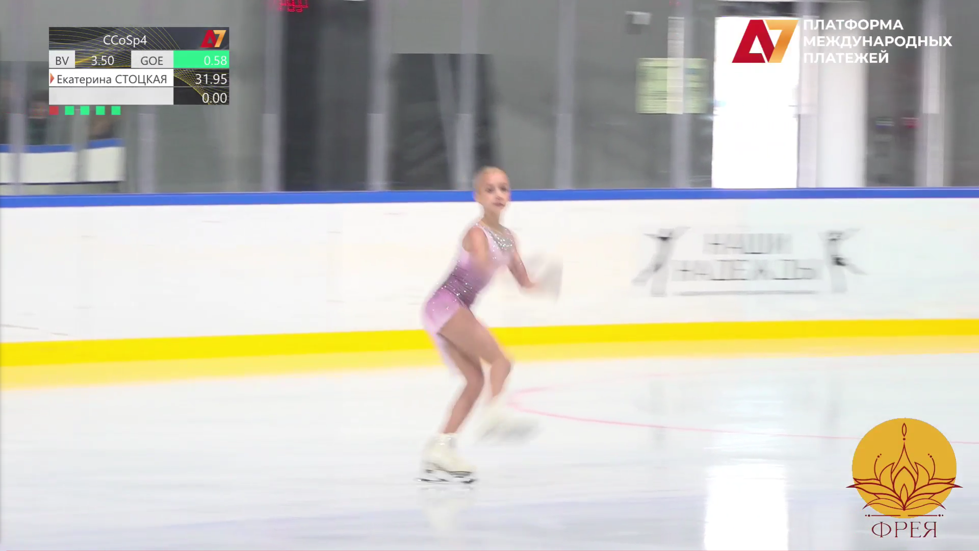 Алёна Викторовна СОТНИКОВА, 14 лет (2011-10-18) СПб, ГБУ ДО СШОР "Академия фигурного катания на коньках" 3z<< на ход вперёд so (R) 3r3t< (<<?) fall (R) 2a с маха и бауэра stsq3