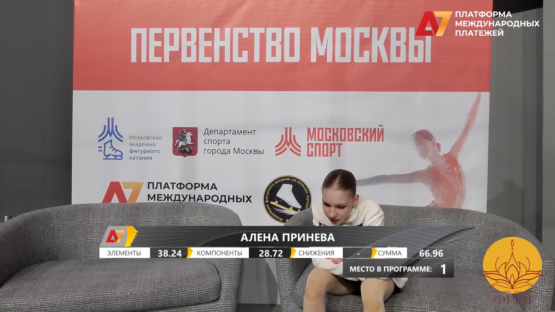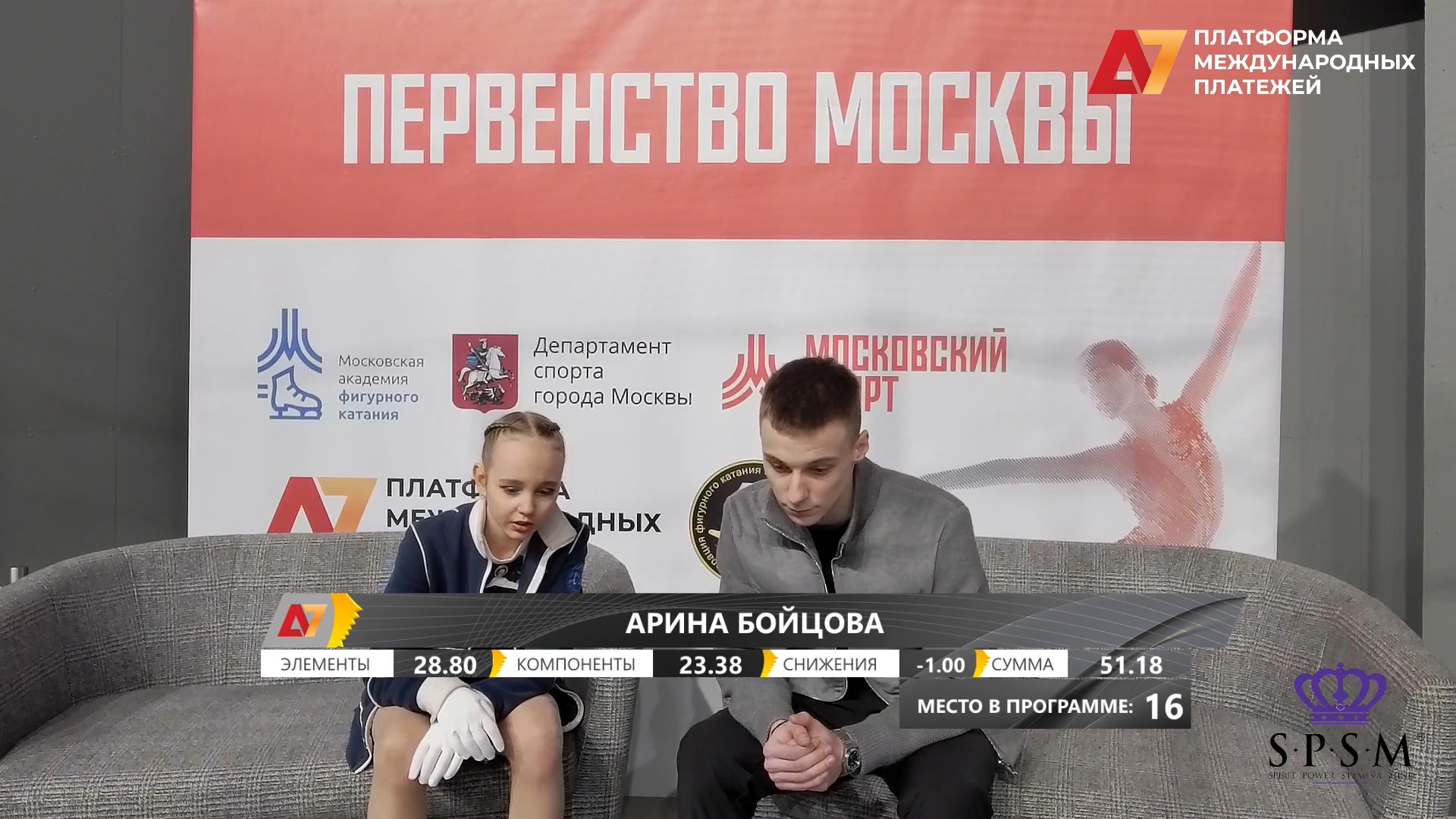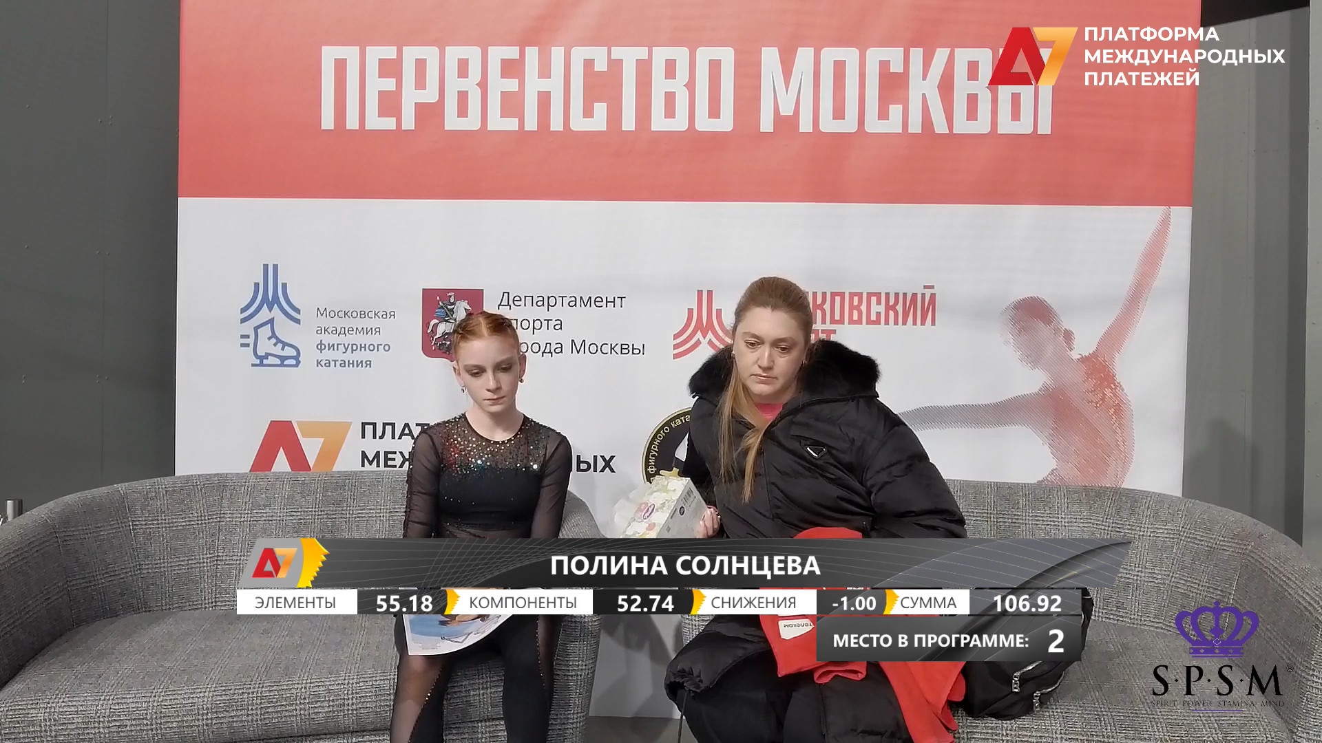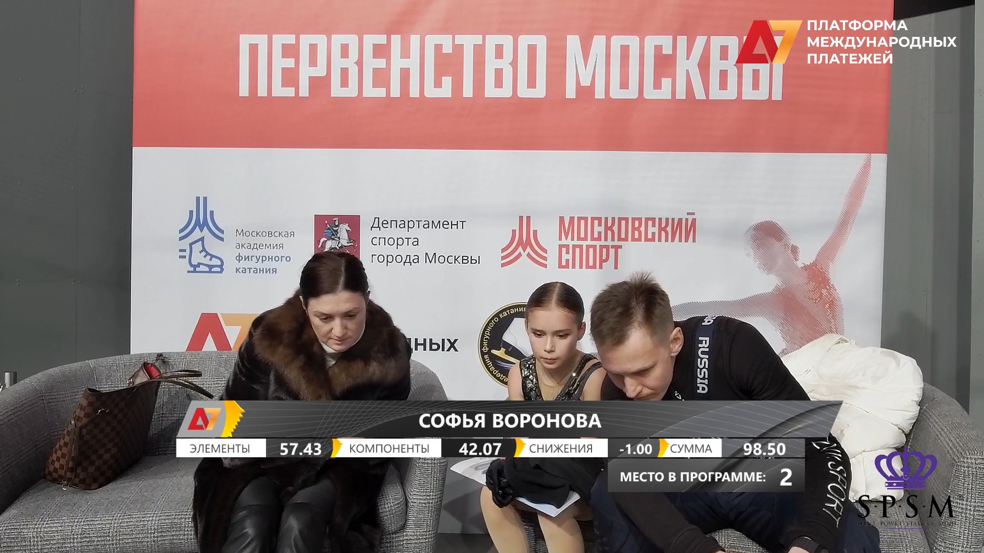Алёна Викторовна СОТНИКОВА, 14 лет (2011-10-18) СПб, ГБУ ДО СШОР "Академия фигурного катания на коньках" 3z<< на ход вперёд so (R) 3r3t< (<<?) fall (R) 2a с маха и бауэра stsq3