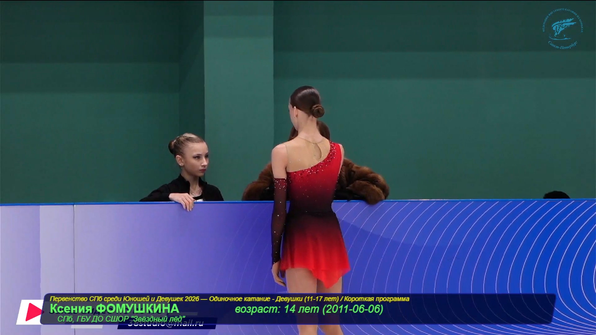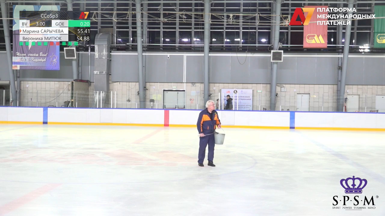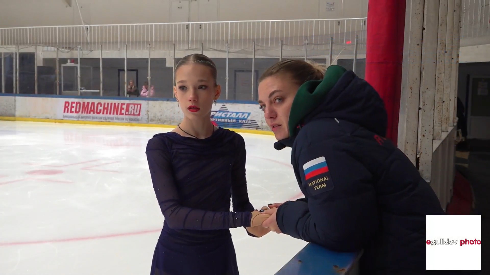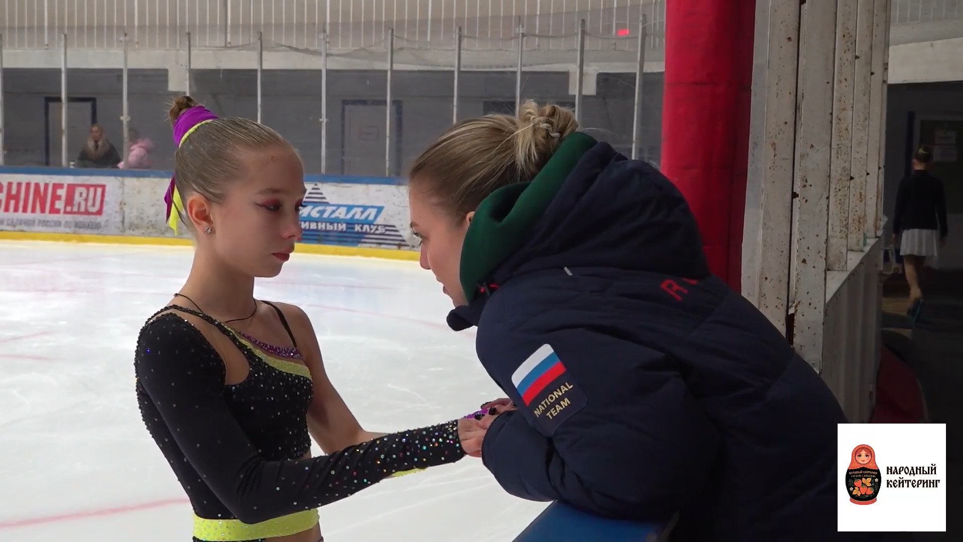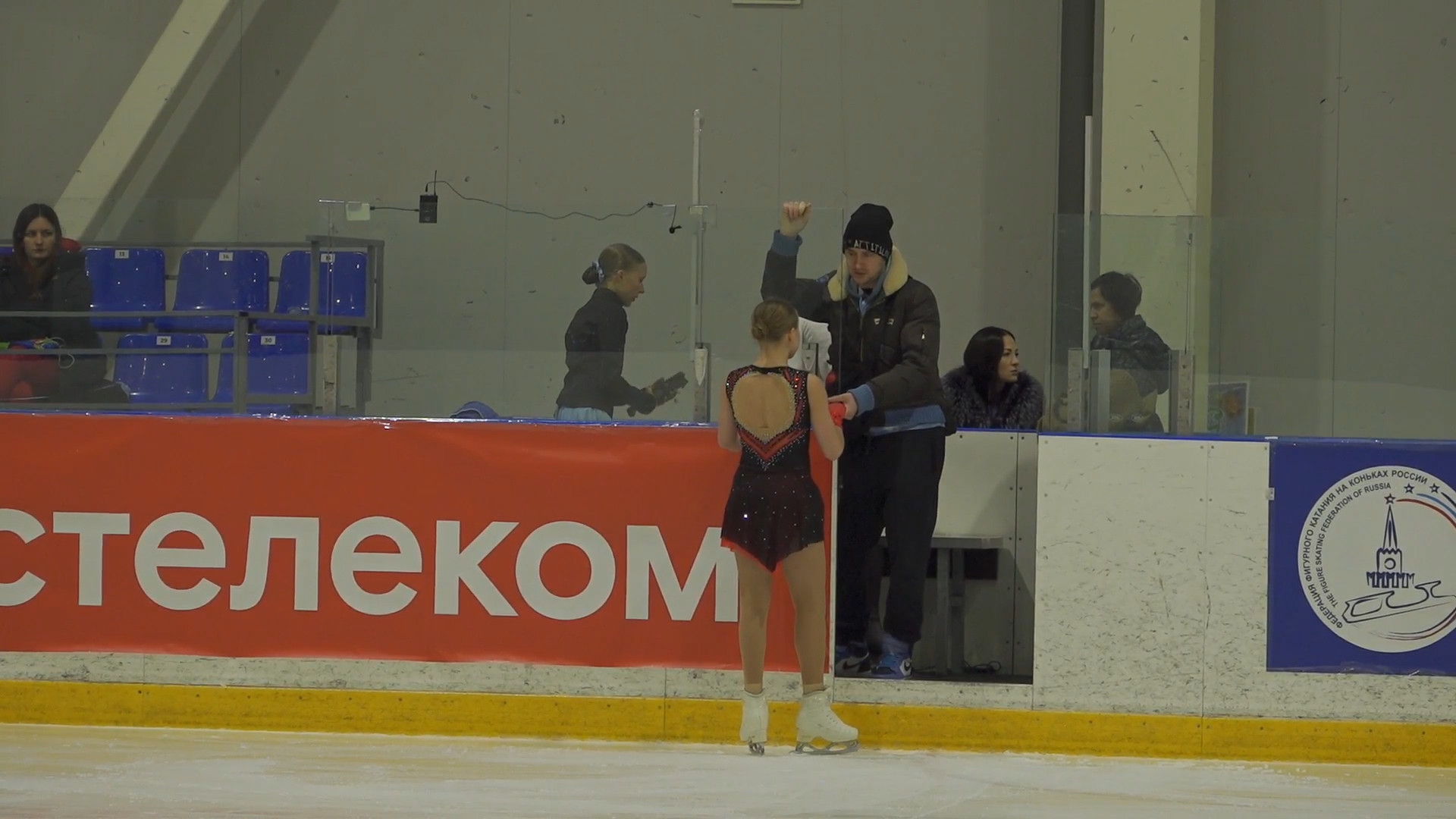 Маргарита Максимовна РУЧИНА, 14 лет (2011-10-12), с А.Ю. СПб, ГБУ ДО СШОР "Звёздный лёд" традиционно выдыхает (видать уже хлебнула из термоса А.Ю., у самой А.Ю. такой вид что она точно хлебнула) 3z< закрутило, коснулась рукой (R) 2a 3rq3t< 2 ноги (R) stsq2 села в волчок и упала при попытке из него подняться ccosp fall
