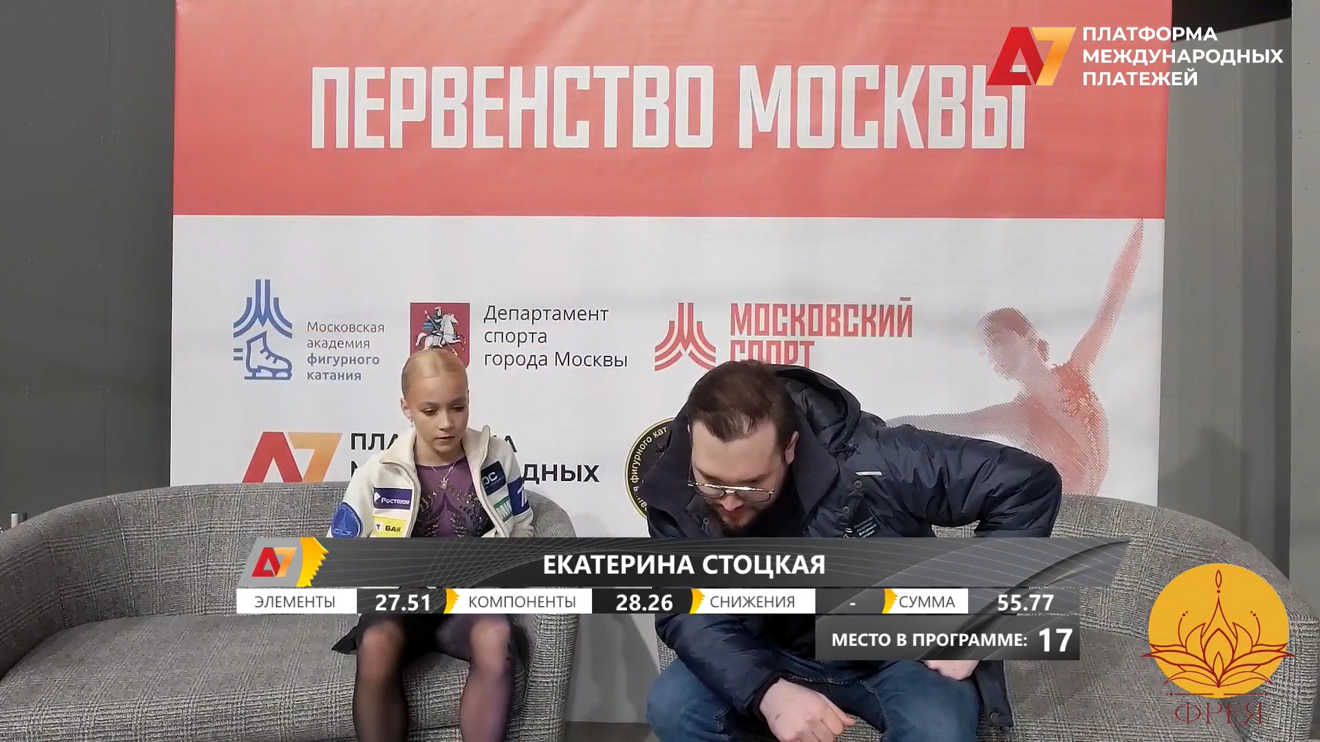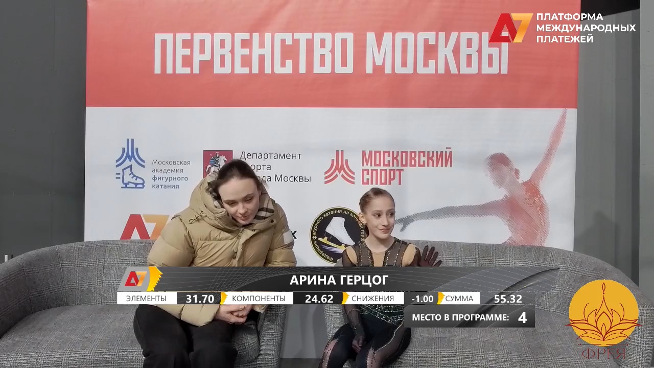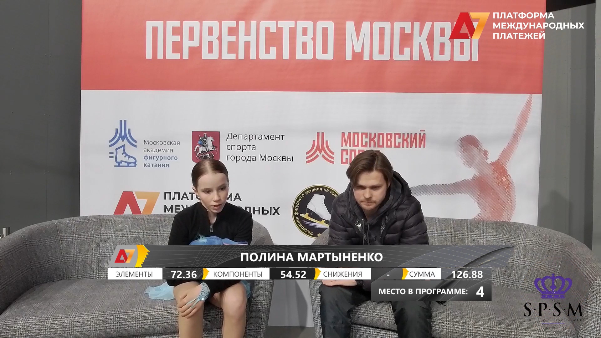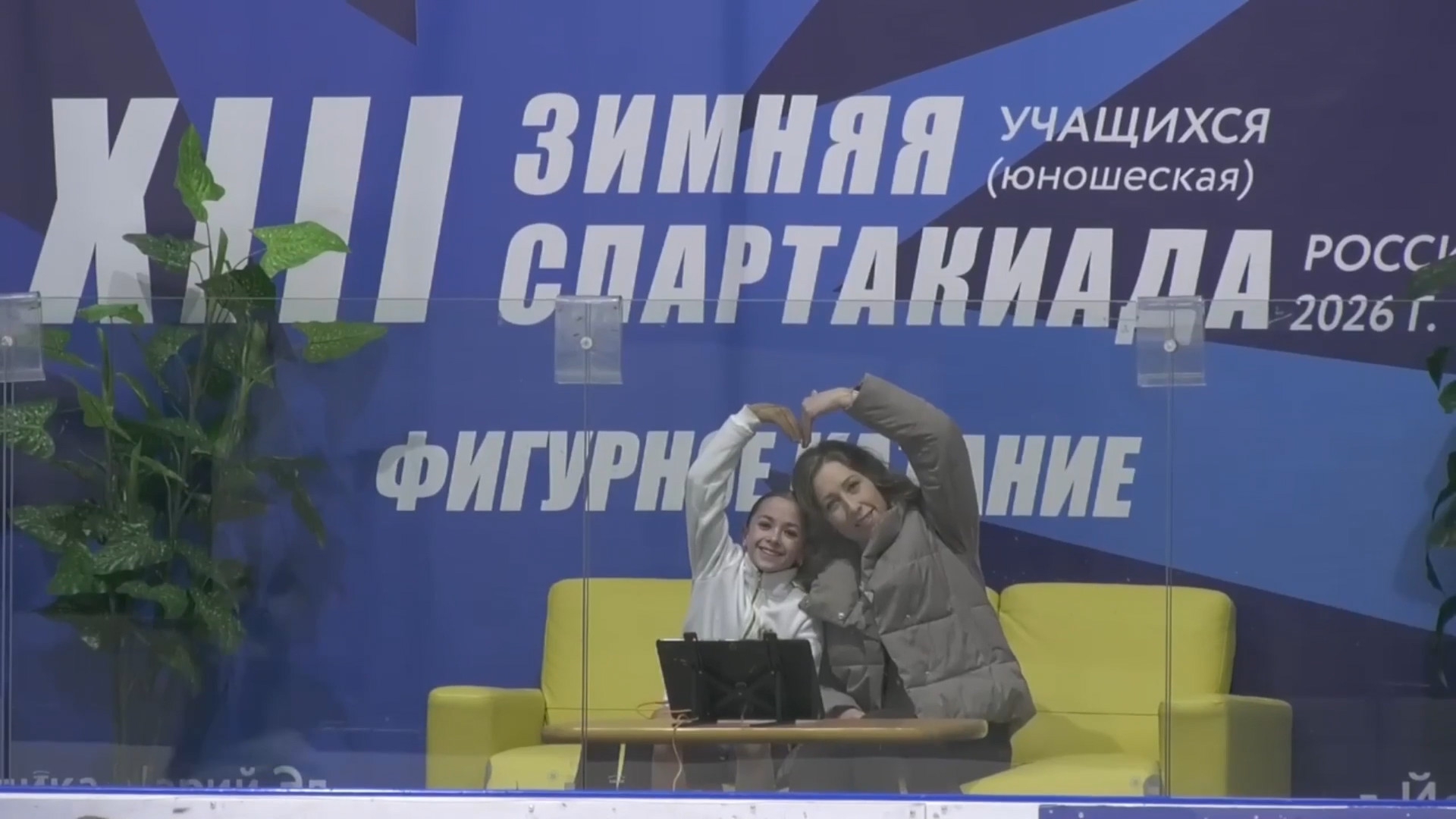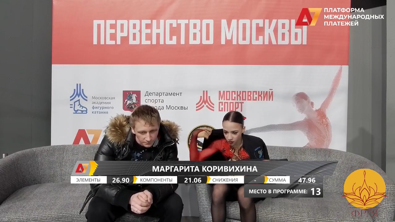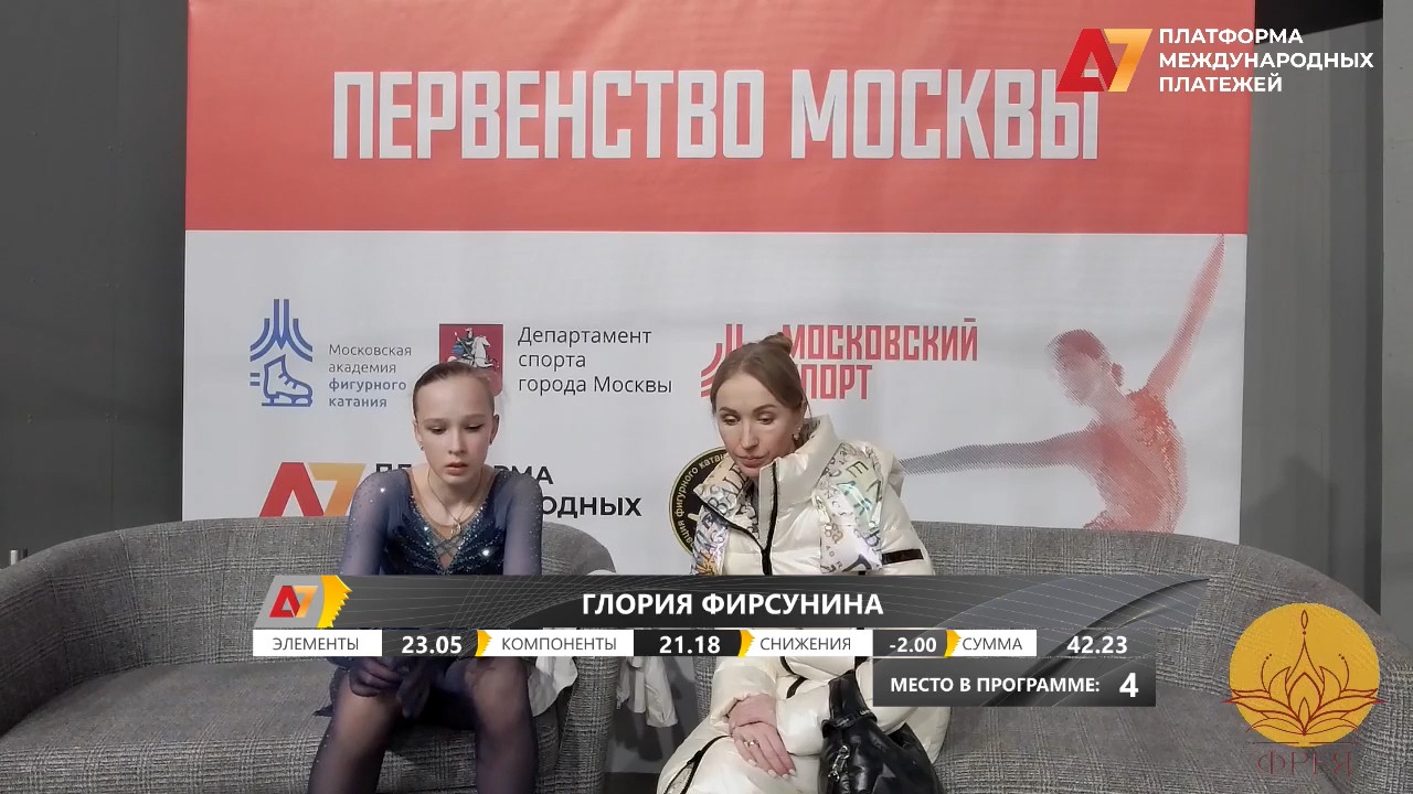 Маргарита Максимовна РУЧИНА, 14 лет (2011-10-12), с А.Ю. СПб, ГБУ ДО СШОР "Звёздный лёд" традиционно выдыхает (видать уже хлебнула из термоса А.Ю., у самой А.Ю. такой вид что она точно хлебнула) 3z< закрутило, коснулась рукой (R) 2a 3rq3t< 2 ноги (R) stsq2 села в волчок и упала при попытке из него подняться ccosp fall
