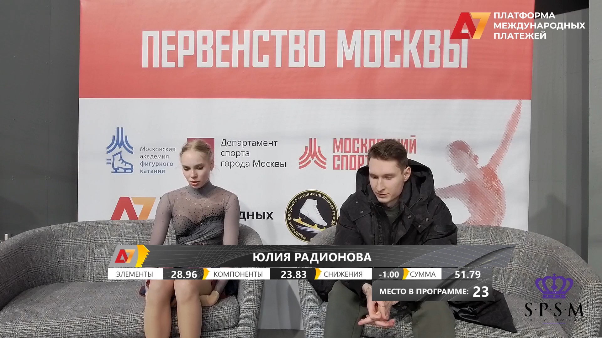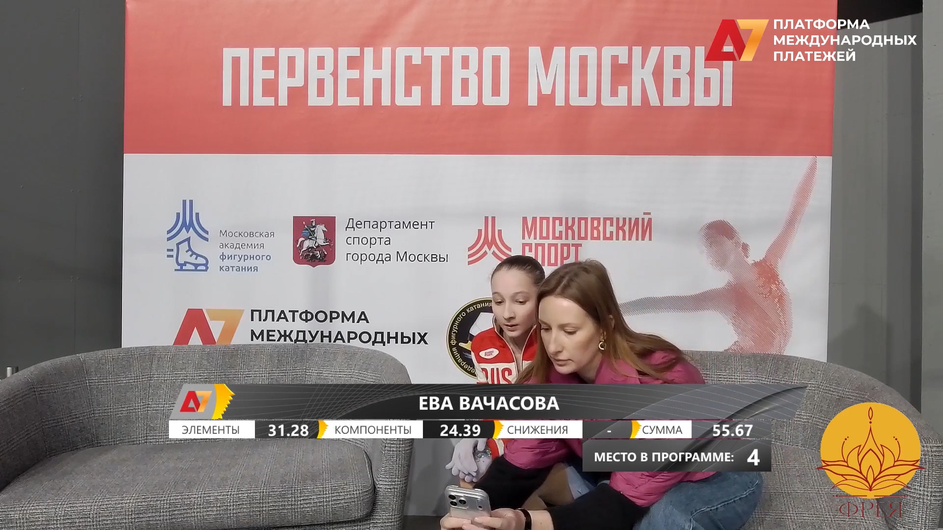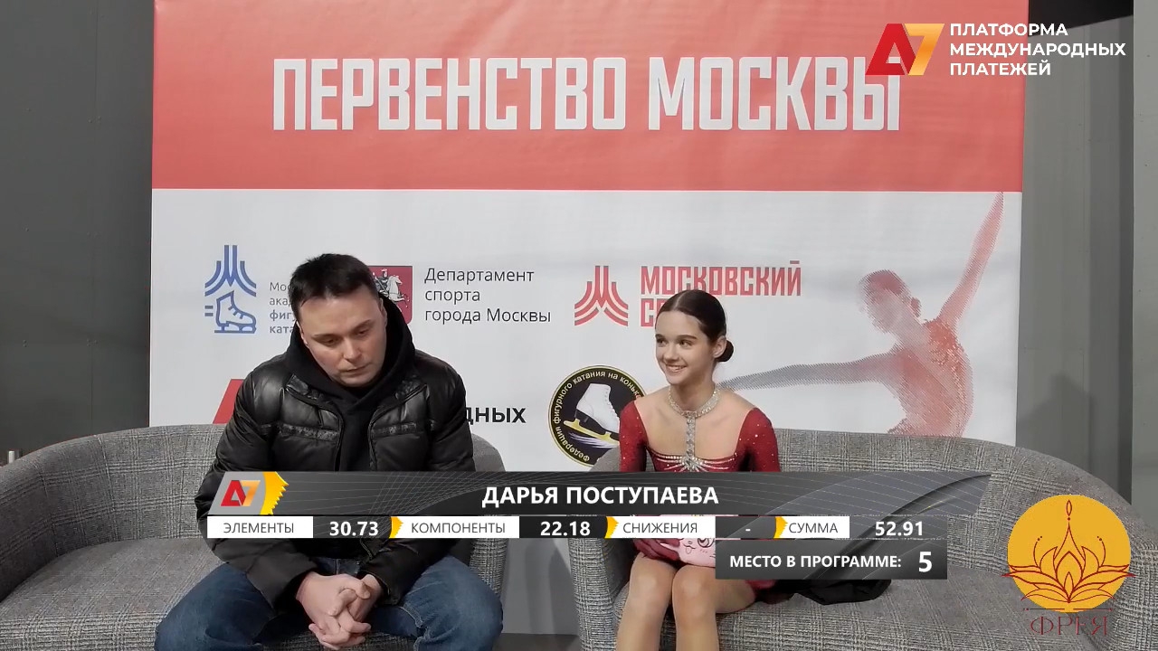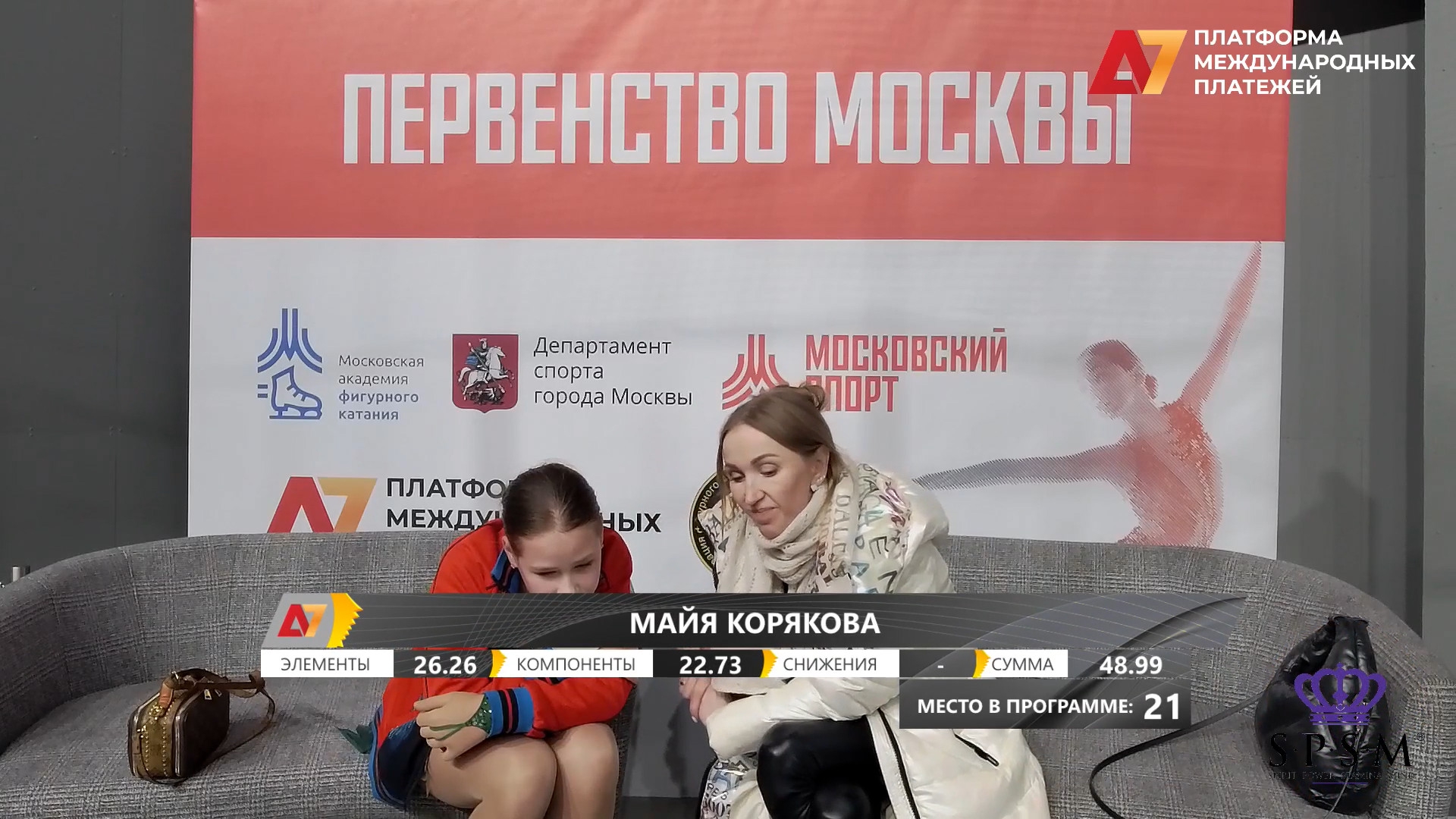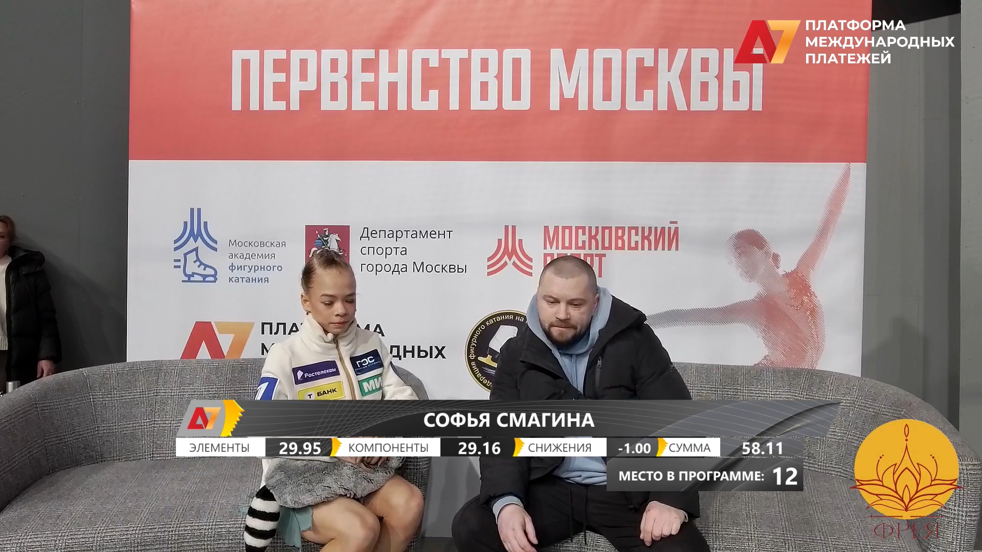 Маргарита Максимовна РУЧИНА, 14 лет (2011-10-12), с А.Ю. СПб, ГБУ ДО СШОР "Звёздный лёд" традиционно выдыхает (видать уже хлебнула из термоса А.Ю., у самой А.Ю. такой вид что она точно хлебнула) 3z< закрутило, коснулась рукой (R) 2a 3rq3t< 2 ноги (R) stsq2 села в волчок и упала при попытке из него подняться ccosp fall