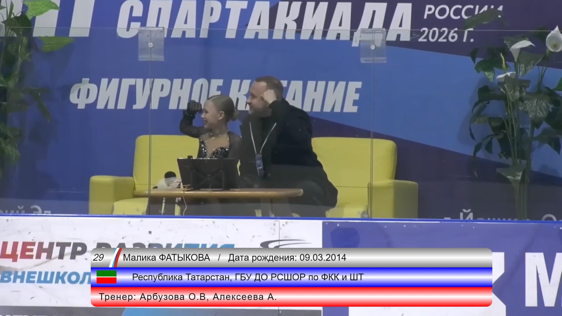 Марта Андреевна АГАФОНОВА Республика Татарстан, ГБУ ДО РСШОР по ФКК и ШТ 3s 3f 3r 3z3t 3f2a2a 3z<?2t R под 69 ботинки большие и прыгает слишком хорошо для такого возраста, плохой знак