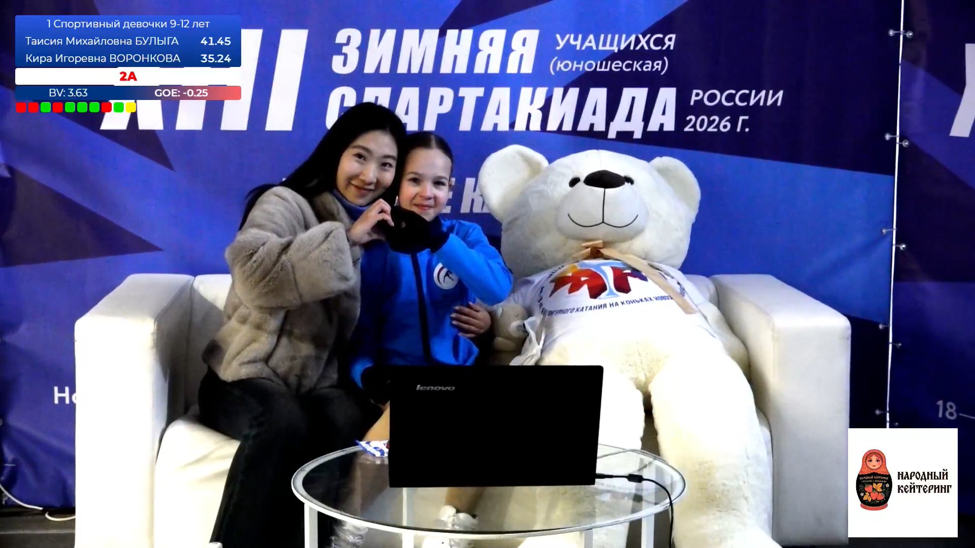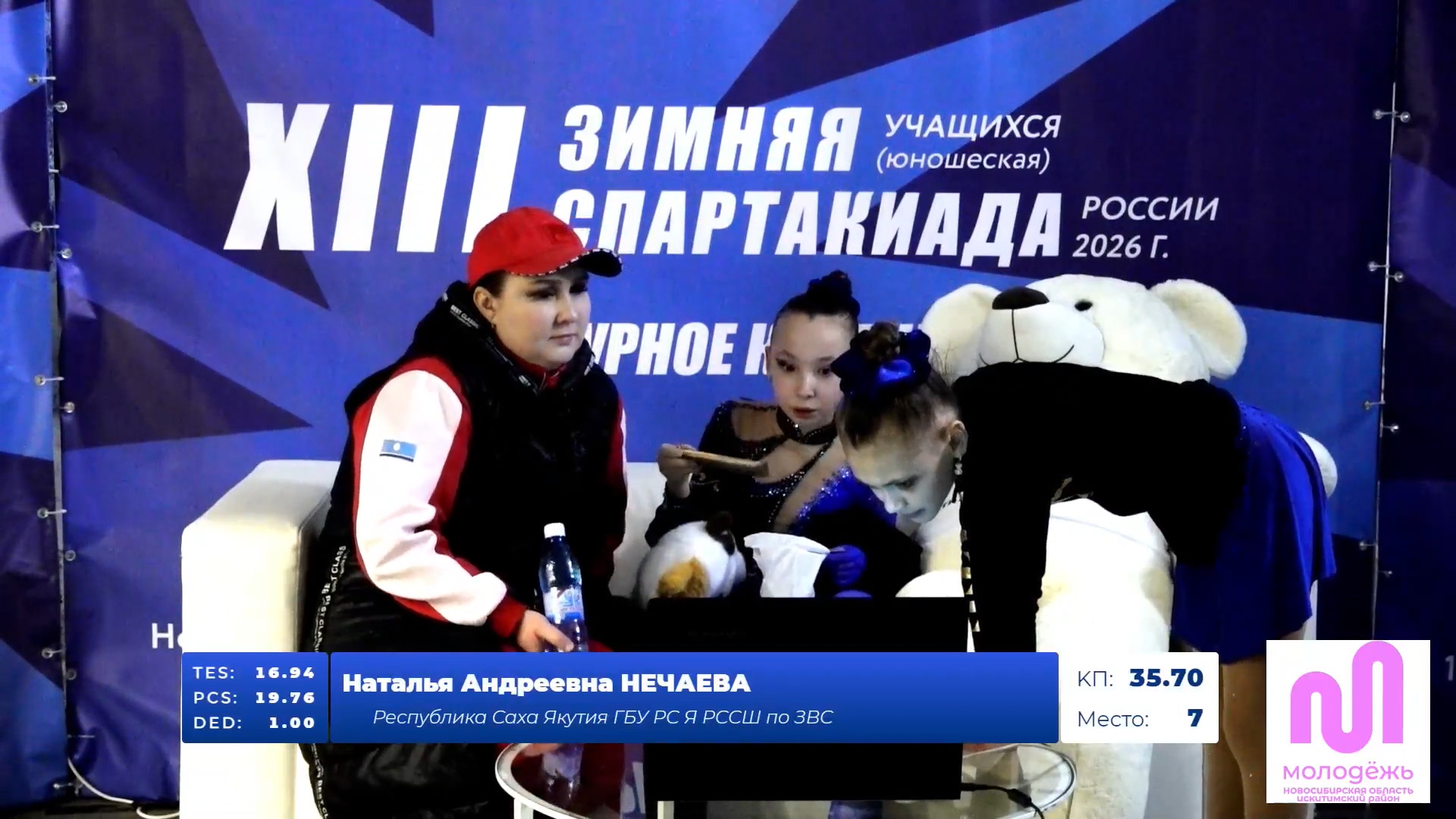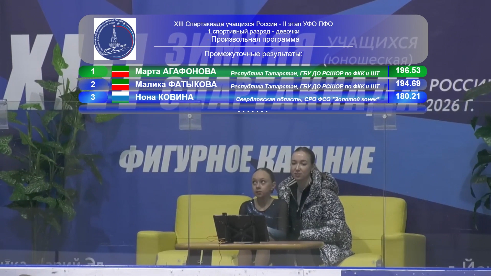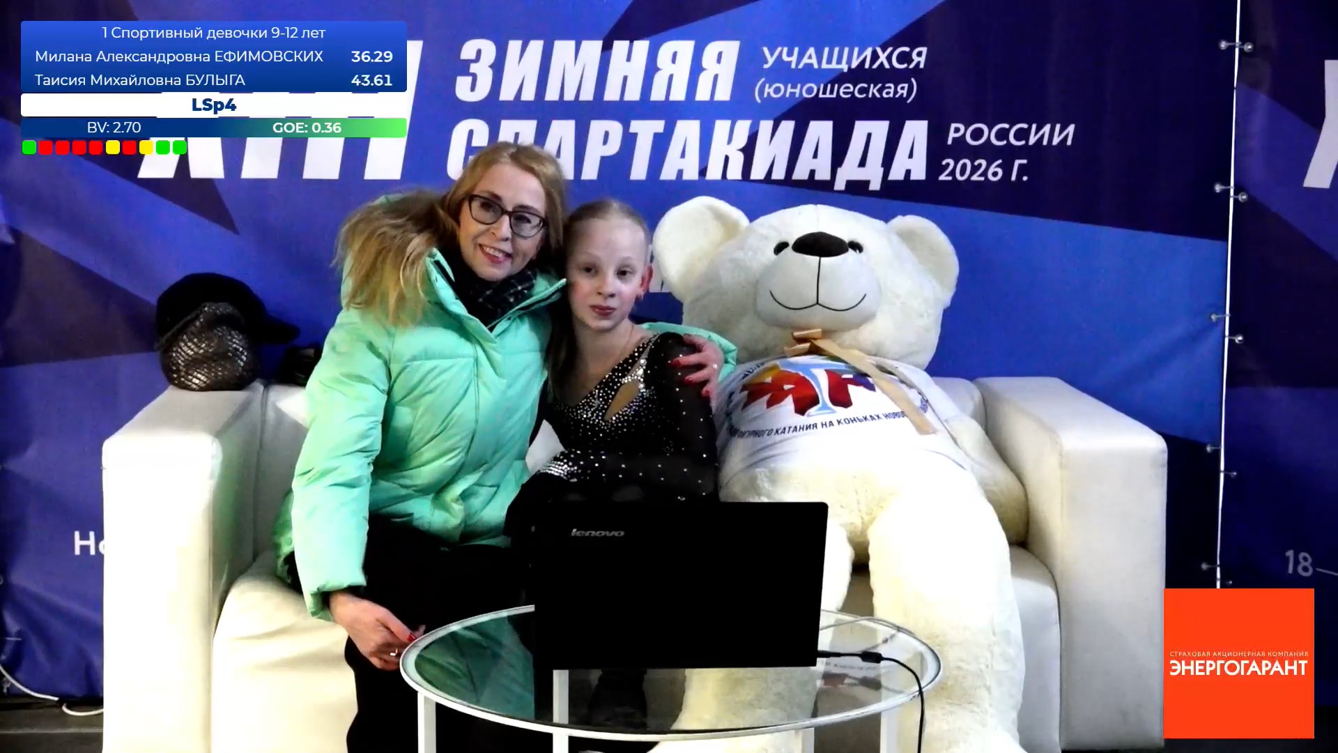 Таисия Михайловна БУЛЫГА, 13 лет, Резяпкина Н.И. Красноярский край МАУ ДО СШОР Рассвет под свист чайника 2a в подпрыжку 3r<1a (R) 3z<<?2a ho чуть клюнула (R) 3rq (R) 3z!?< (R) 2f ho 2r закрутило 1a chsq1 всё на пересмотр кроме первого акселя, chsq1 и последнего lsp4