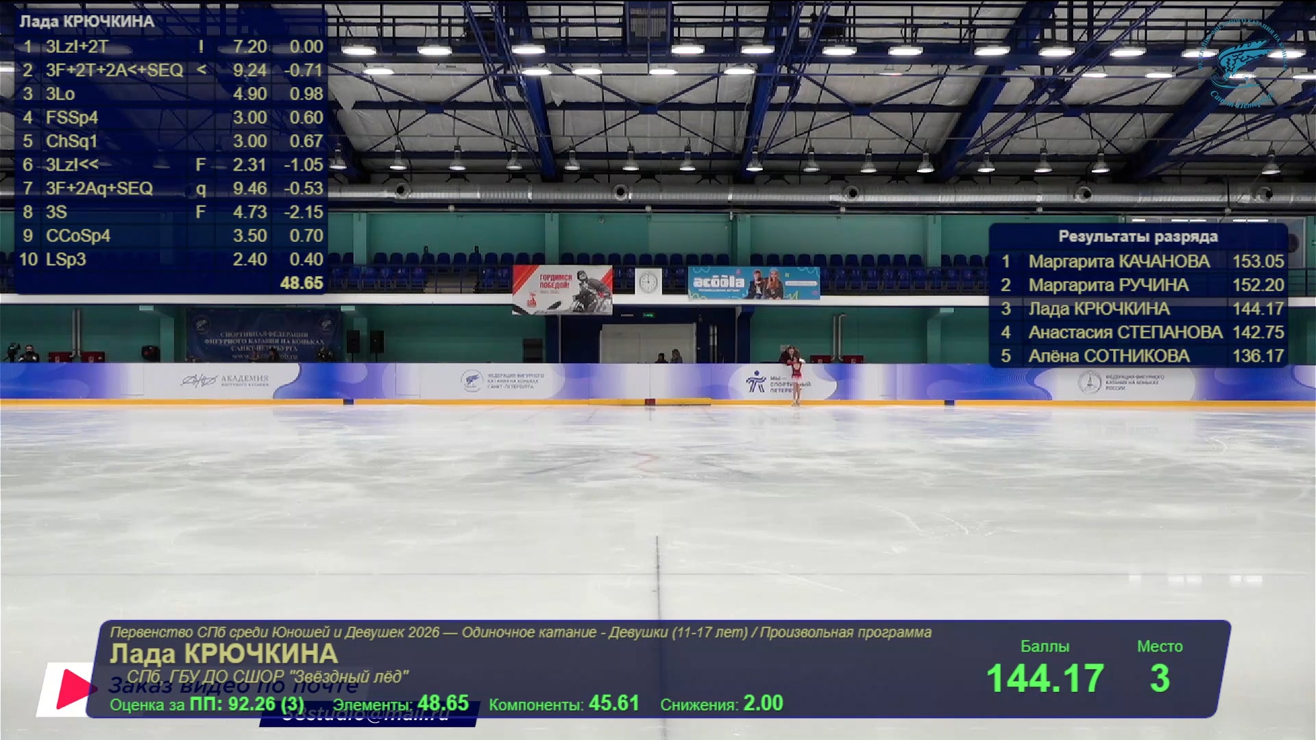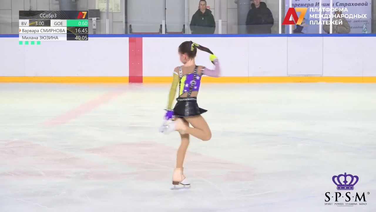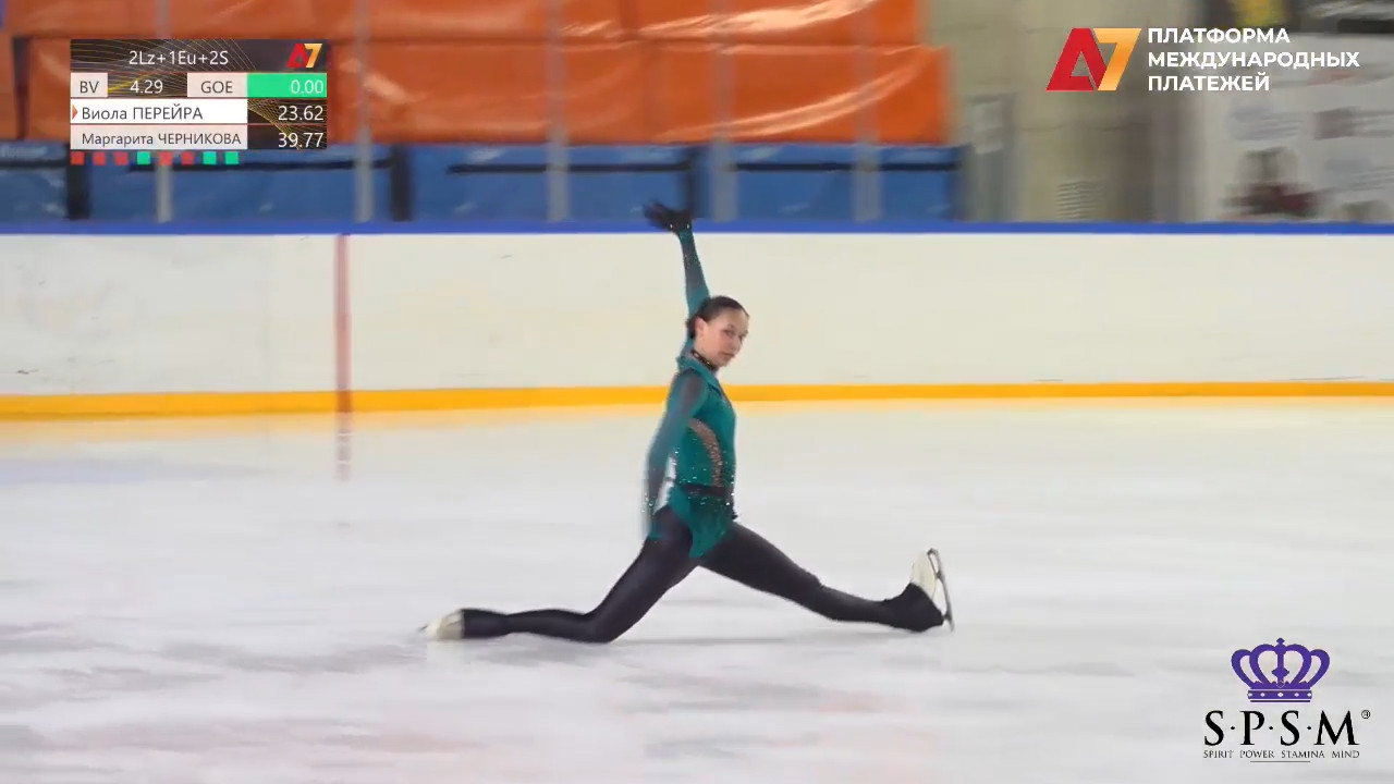 Маргарита Валерьевна КАЧАНОВА, 13 лет (2012-03-01) СПб, ГБУ ДО СШОР "Звёздный лёд" Маргоша выросла 3r 3z, подумала, сделала тройку, 2t (R) 2a с разворота в слайде stsq1