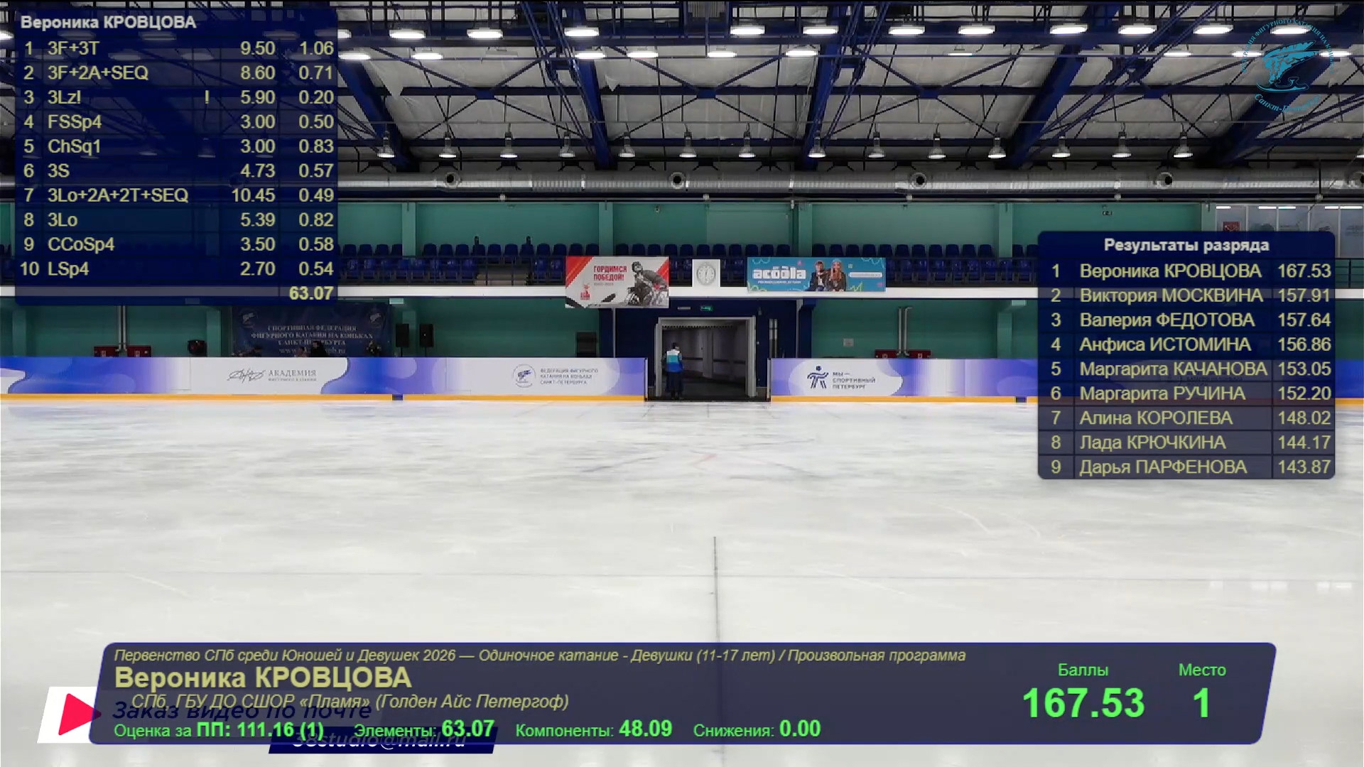 Вероника Владимировна КРОВЦОВА, 12 лет (2013-03-23) СПб, ГБУ ДО СШОР «Пламя» (Голден Айс Петергоф) кармина бурана ямето-фонарик 3f<3t< (R) пвш 3r в мах 2a stsq2