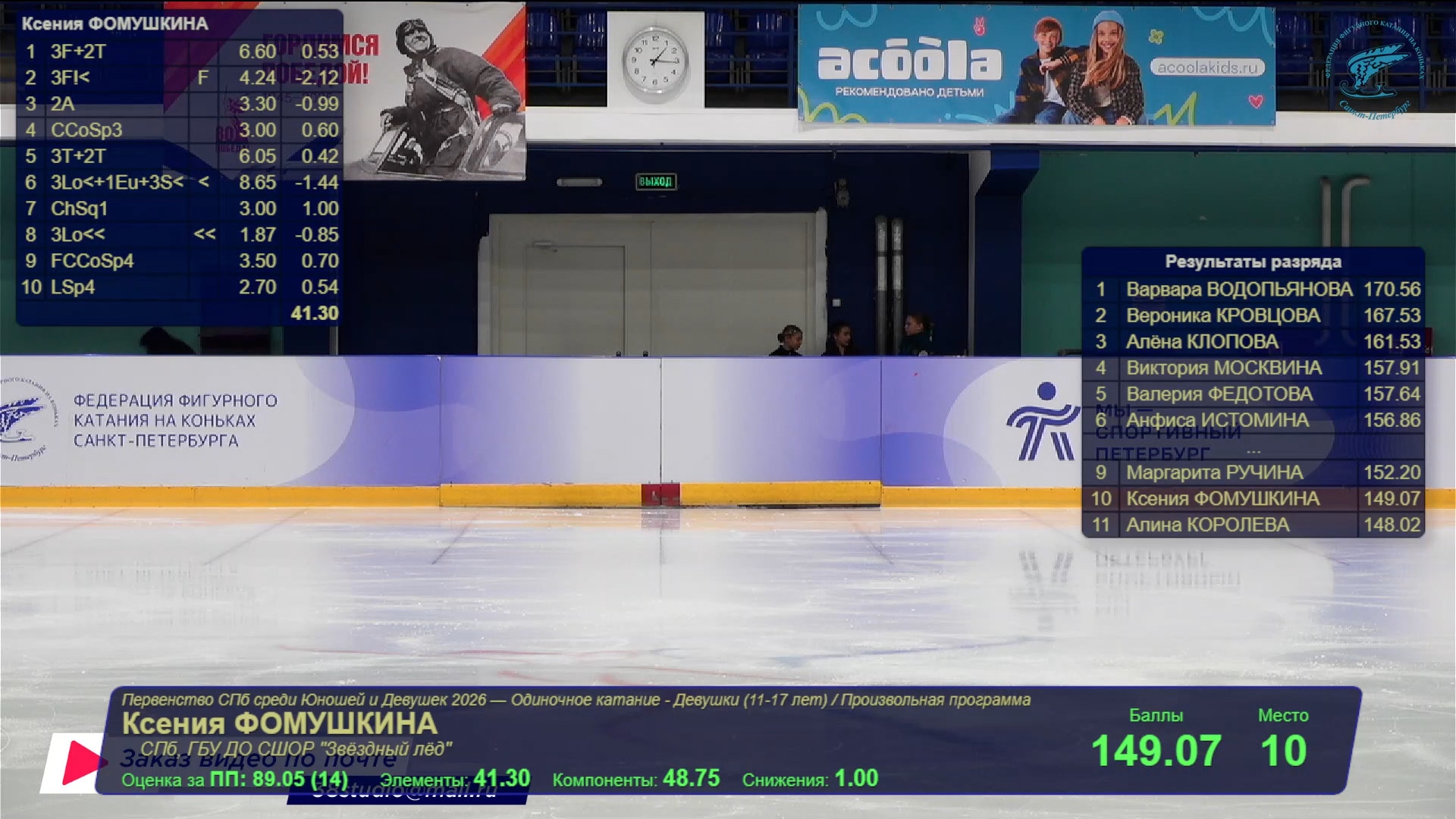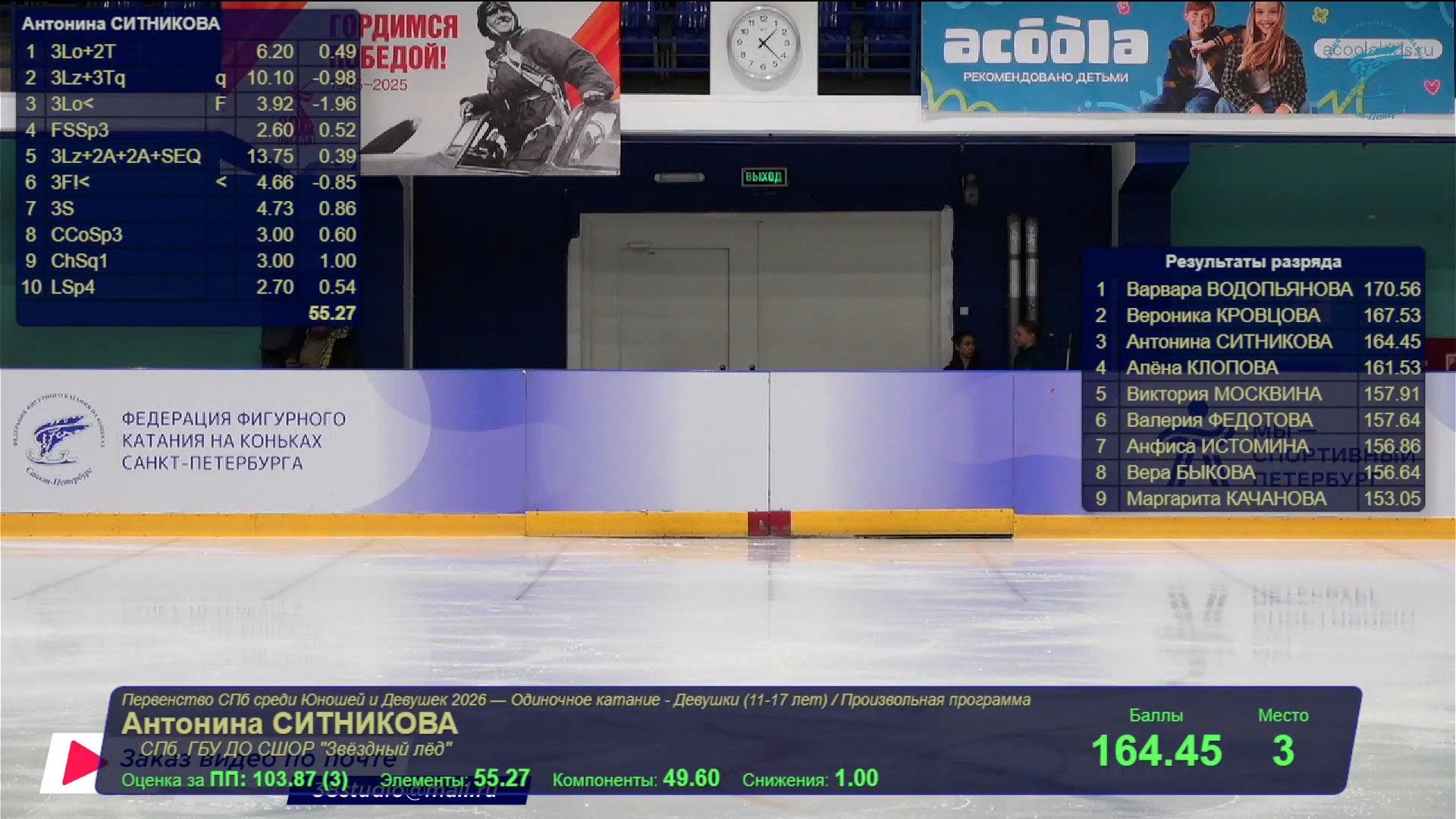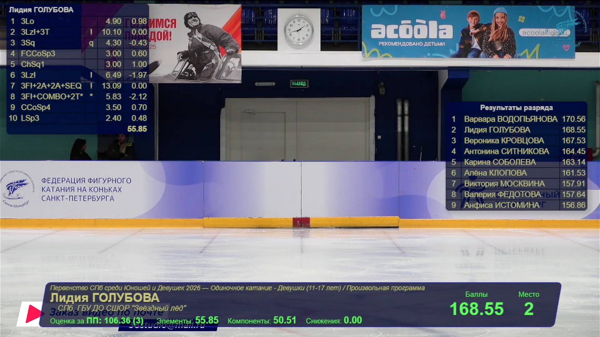 Варвара Сергеевна БЕКЕШ >>3279449 → Ленинградская область, ООО Голден Айс >>3279446 → какая-то пантомима 3z1a2r разгонялась, разгонялась и fall 2z 3s< chsq1 бежит на зубчиках в слайд, пвш 2aq?2t машет руками 3f 3s2t на зубчиках в финальную позу