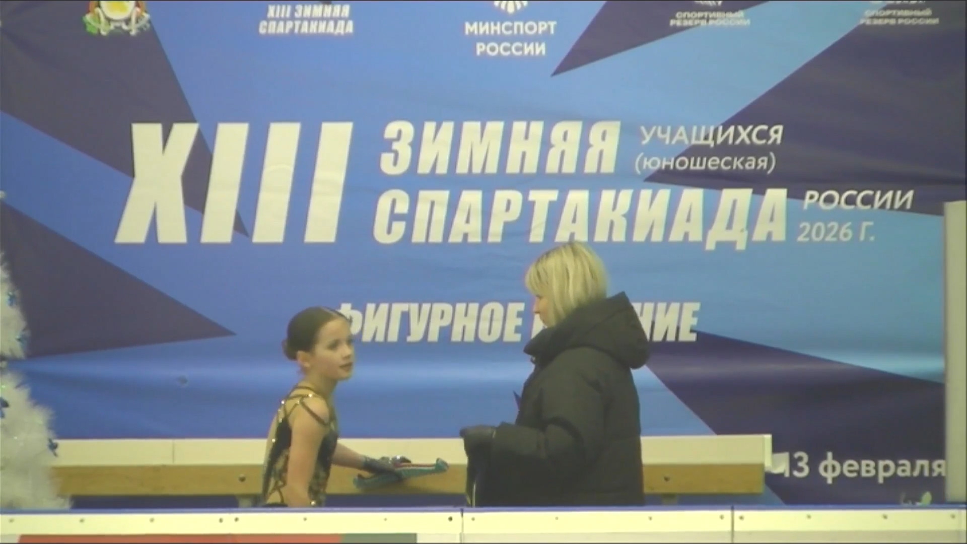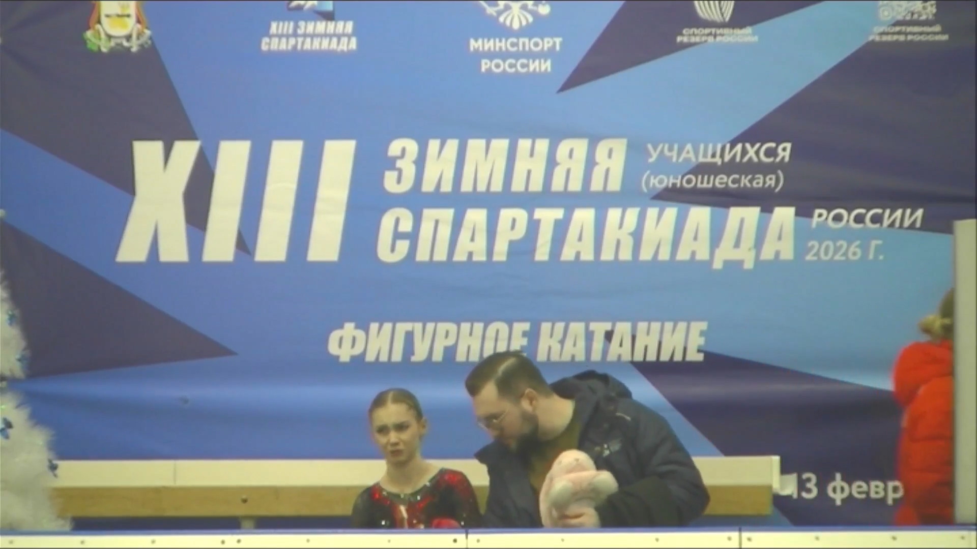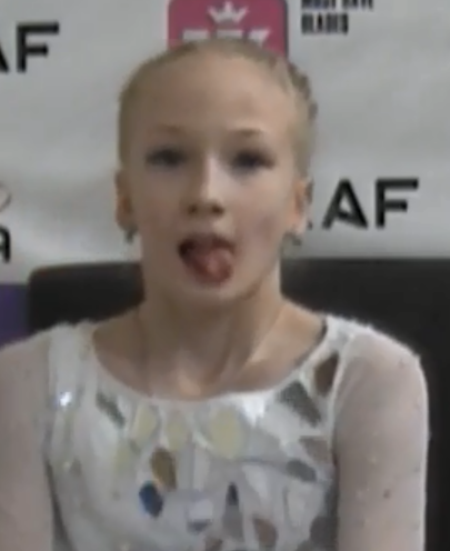 Полина Игоревна ВИНКУС, 13 лет, с Маклаковой Е.С. Новосибирская обл МАУДО СШОР ЦЗВС шпагат на льду 2a с хз в хв танцует яметофонарик 3r опять танцует тычет пальцем в судей на заходе на каскад 3z ось боком, закрутило в тройку + so? (касание 2 ногой) +2t (R) stsq3 сразу потеряла в скорости и настроении хватается за голову и плачет, в кик не пришла