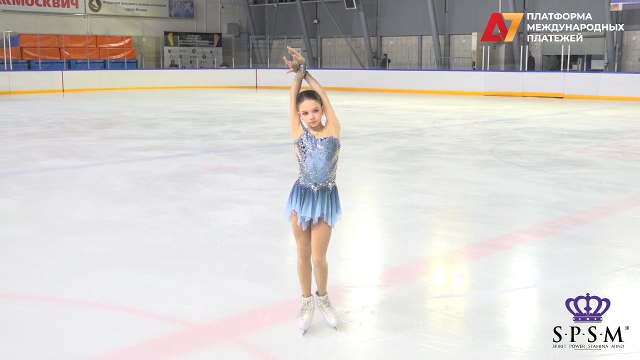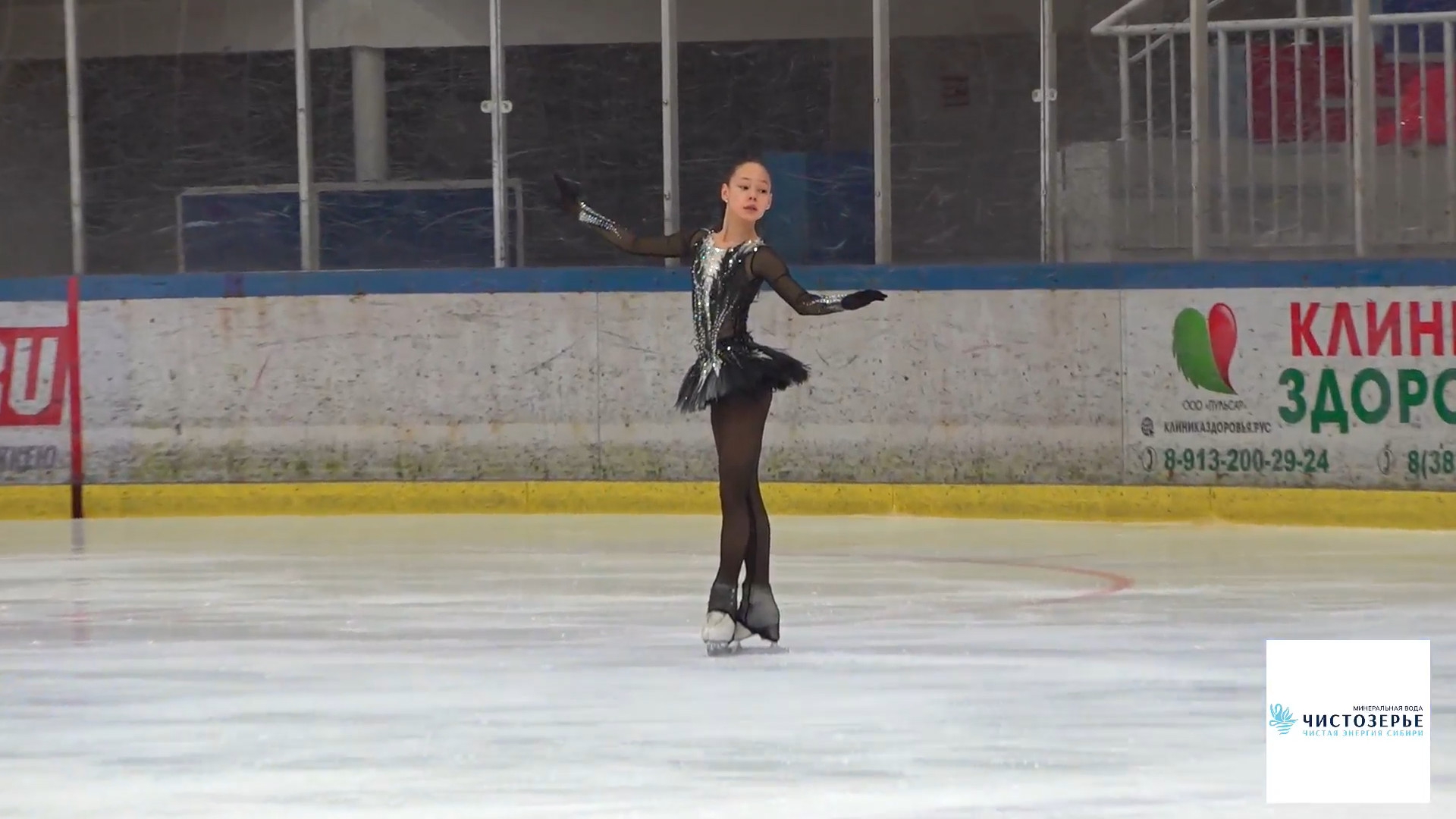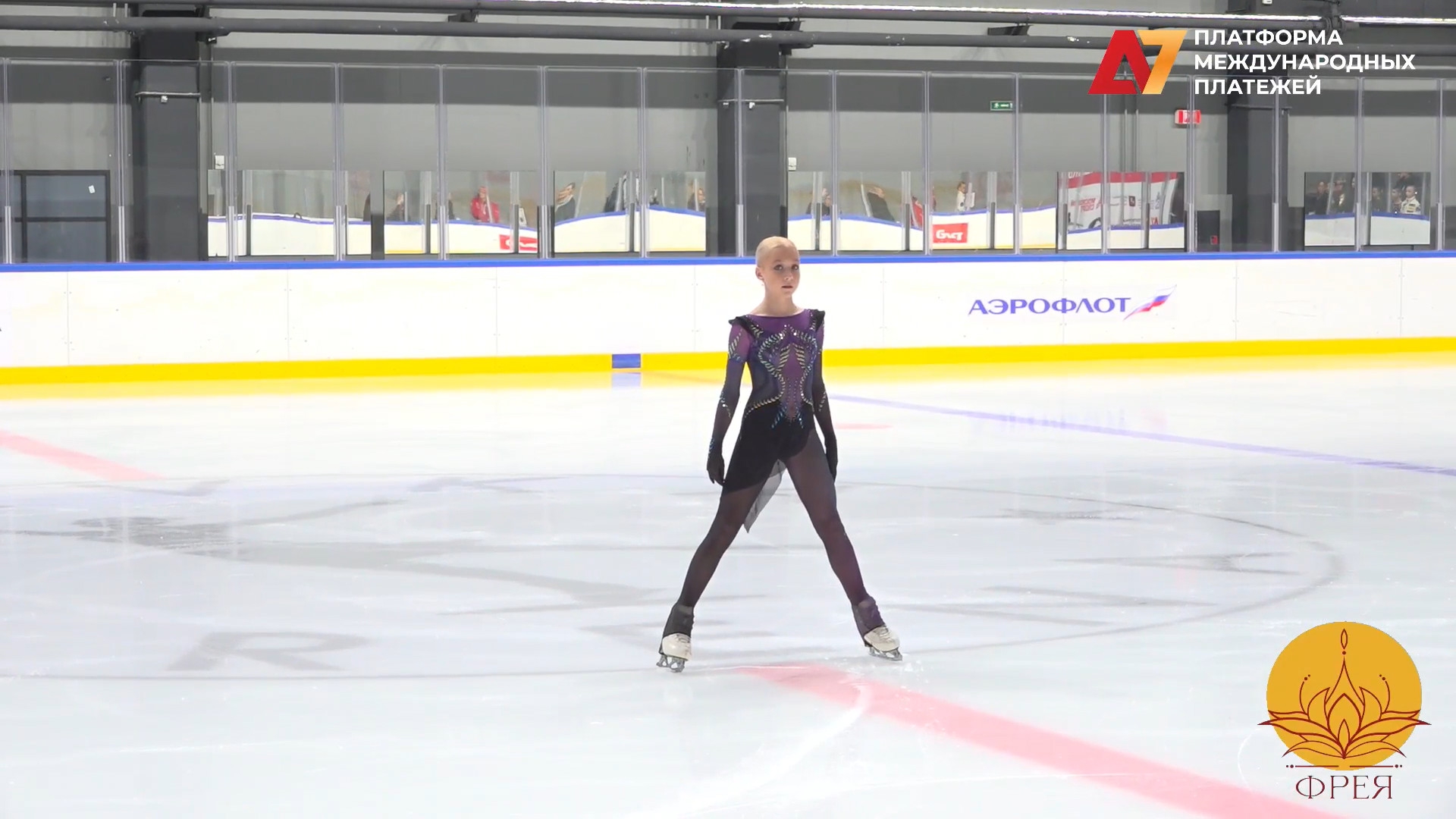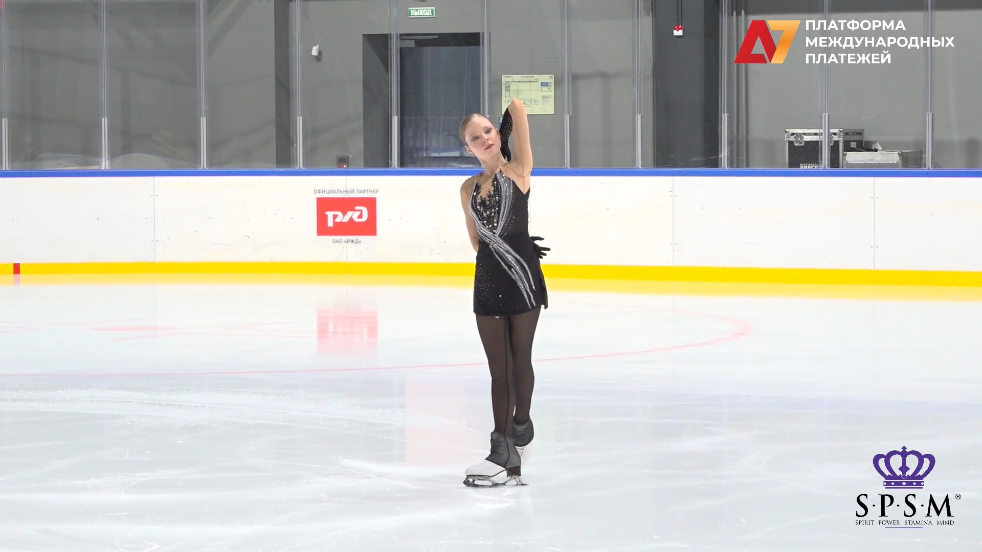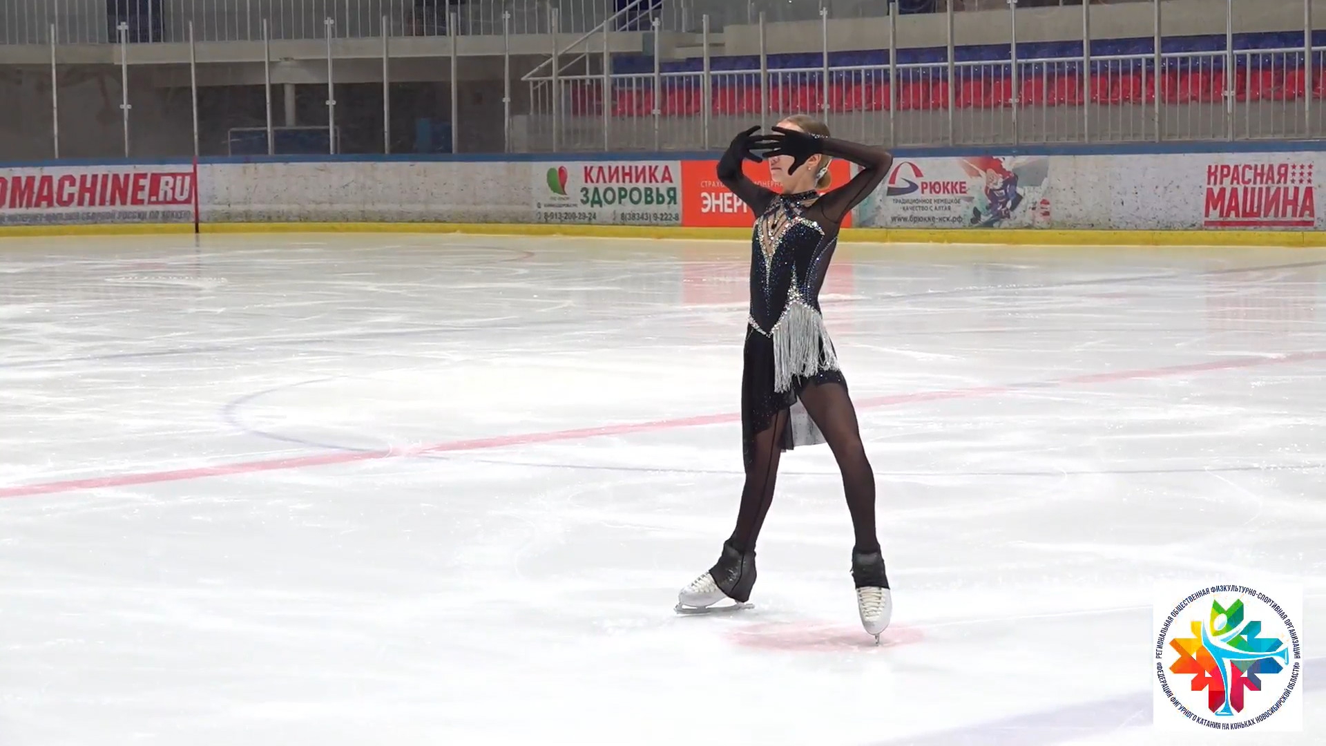 Ксения Константиновна КОЖЕВНИКОВА, 12 лет, Переверзев Е.Г. Томская обл МБУ ДО СШ Хоккея и ФК г Томска с хвостом, в костюме сзади вырез и нет застёжек, очень предусмотрительно, как с Борейшей зацепиться не получится. 2a на грани q? (R) 2f2t в подскок (R) медленновата 2z stsqB