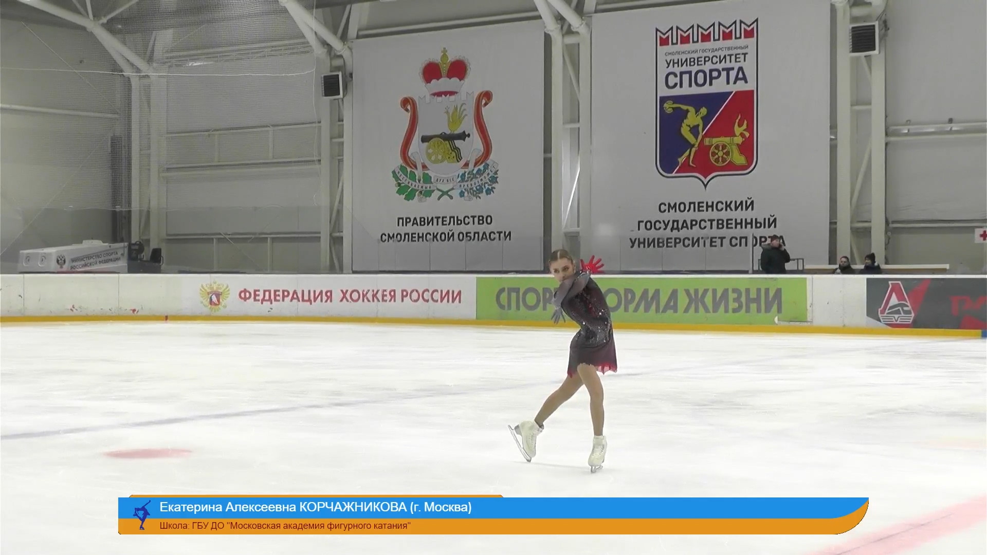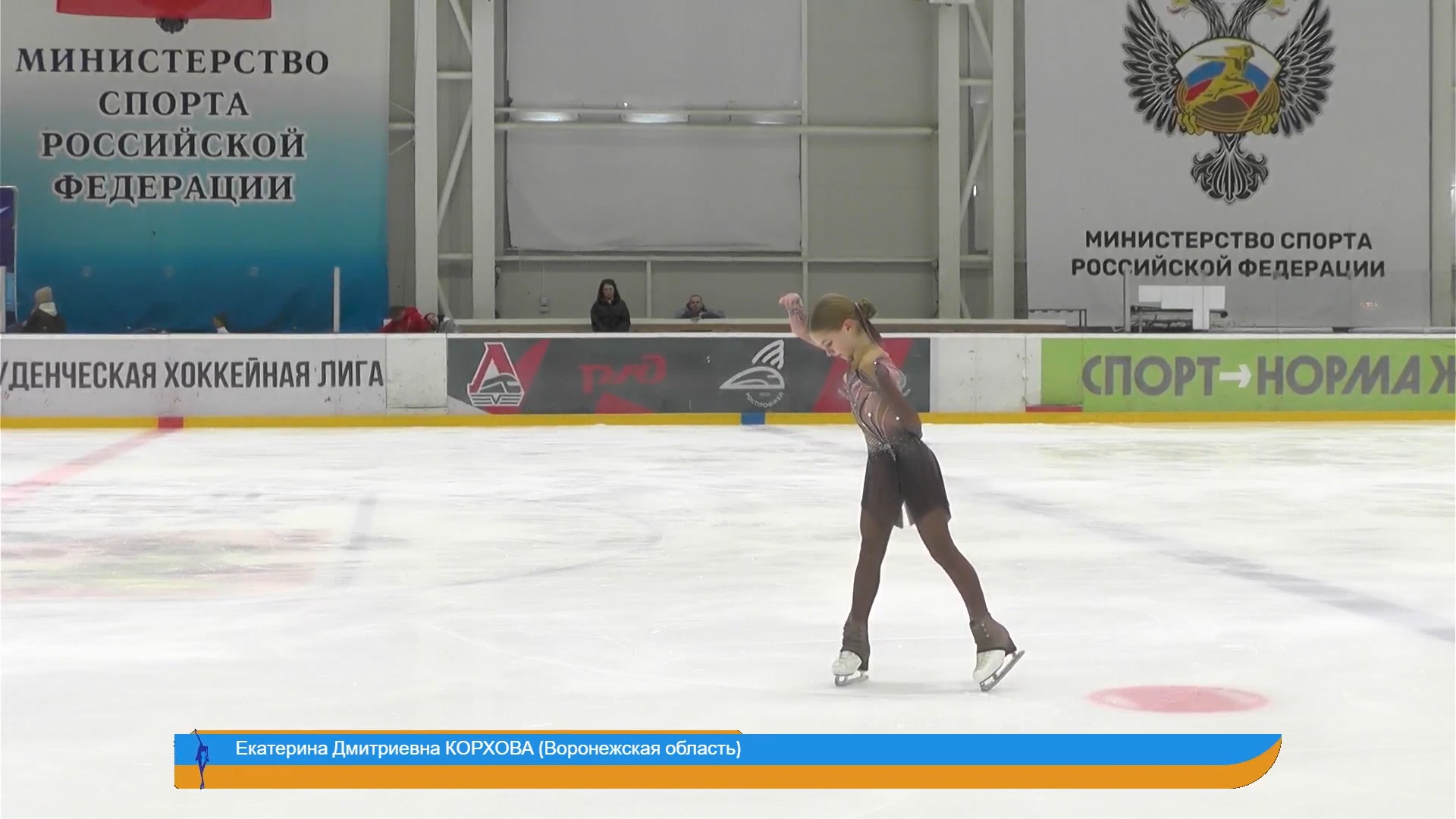 Екатерина КОРХОВА, Сафронова И.С. Воронежская область, ЧУДО ДЮСШ ФК "Хрустальный конек" 3t в тройку, высокий 3s ho 2a2t 2a2a 3t2t 3s<? закрутило в so chsq1 сделала слайд-выпад и упала с него на выезде fall хотела сделать лутц, но провернула тройку на льду 2z зашла второй раз не успела плачет в кике