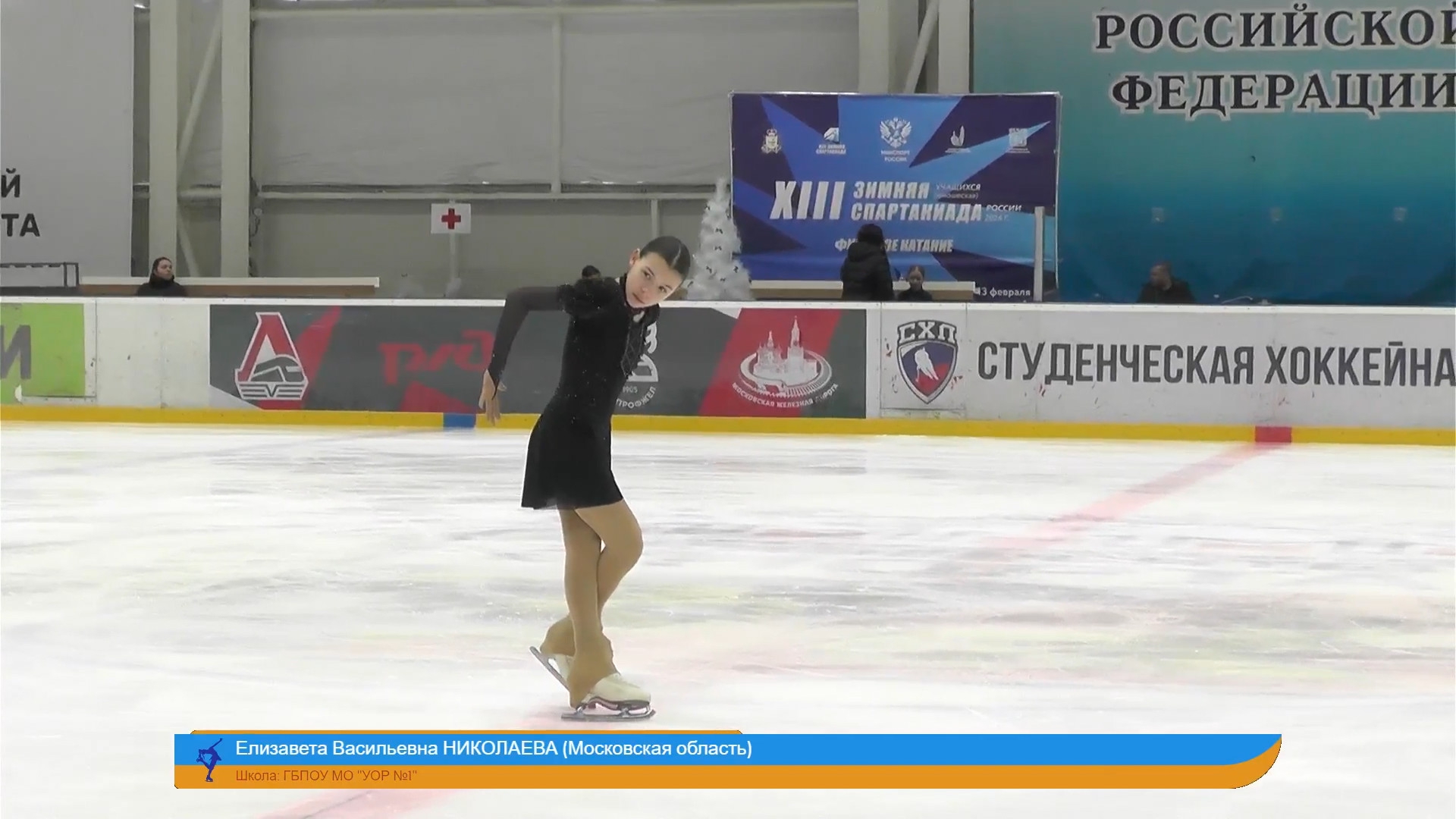 Елизавета НИКОЛАЕВА с Митрофановой Е.Б. Московская область, ГБПОУ МО "УОР №1" девочка уэнздей 3s внезапный пожимает плечами 3f!? в твизлы и хв 3r толкнулась как с зубца Митрофанова ходит как тигрица отцепила от затылка и побежала 3z so закрутило на 2 ноги делает хореографию между элементами 3z3t клюнула 3f!?2a2a осталась без каскада из-за so на лутце chsq1 кантилевер