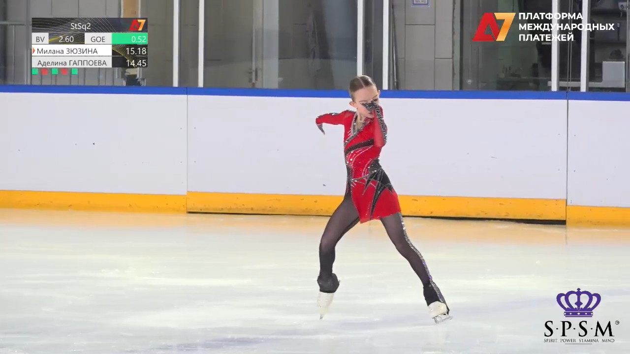 Милана Артемовна ЗЮЗИНА с Власовым ГБУ ДО МАФКК, школа Легенда, отд.Легенда >Триллер-триллер!!! 3z 3s fall +combo 2a< fall с кораблика с руками назад stsq2 сплюнула на финальном ccosp2 хороша, понравилась