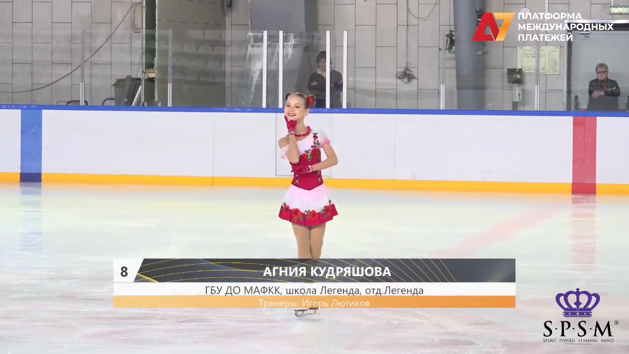 Агния Ивановна КУДРЯШОВА, Лютиков жив! ГБУ ДО МАФКК, школа Легенда, отд.Легенда 1a с хз и маха 2z!? q? fall с кантилевера 2f q? "на зубчике провернула" в выпад на вторую ногу fall +combo stsqB на дорожке делает упражнеия из разряда "юный фигурист" не успела