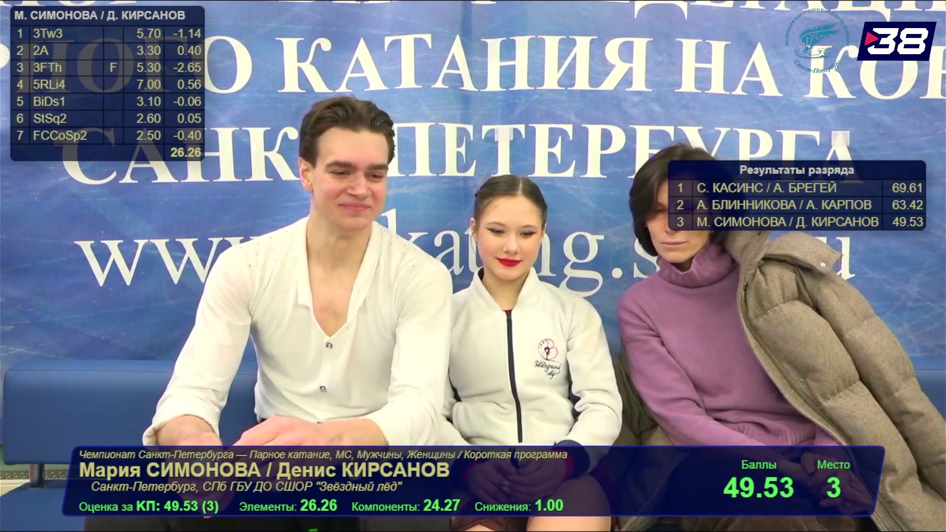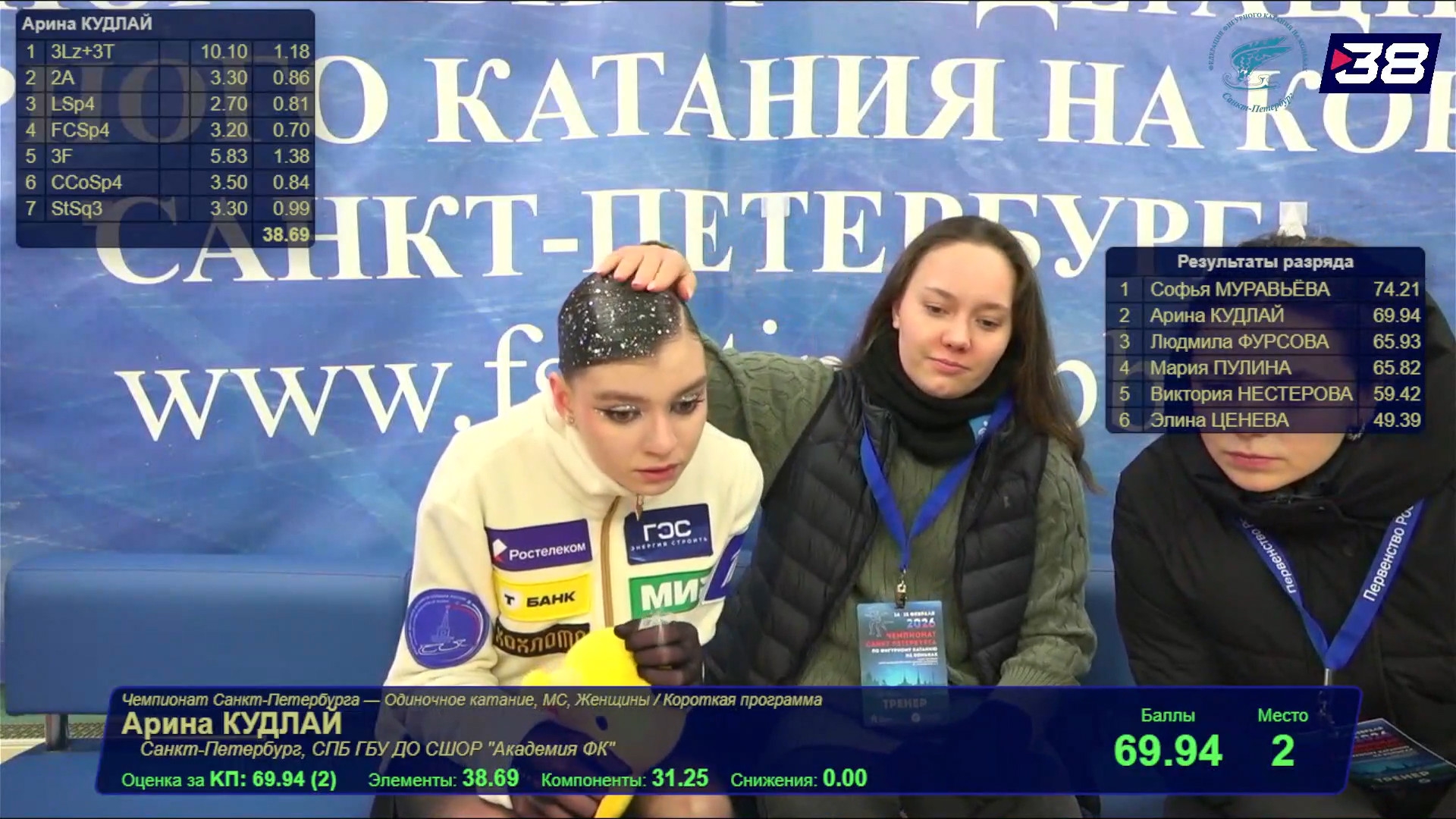 Елизавета Александровна КРЫЛОВА с Ефимовой??? Санкт-Петербург, СПб ГБУ ДО СШОР Звездный лед >Мало Гения крестится 3 раза 3z 3f чуть клюнула 3r chsq1 3z3t 3f чуть клюнула 2a2a 3s2t ho