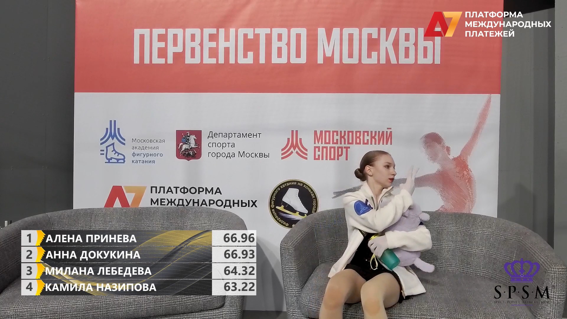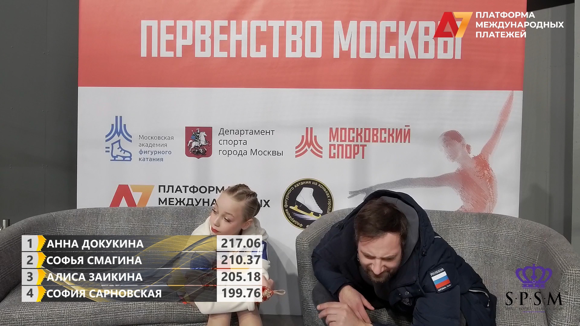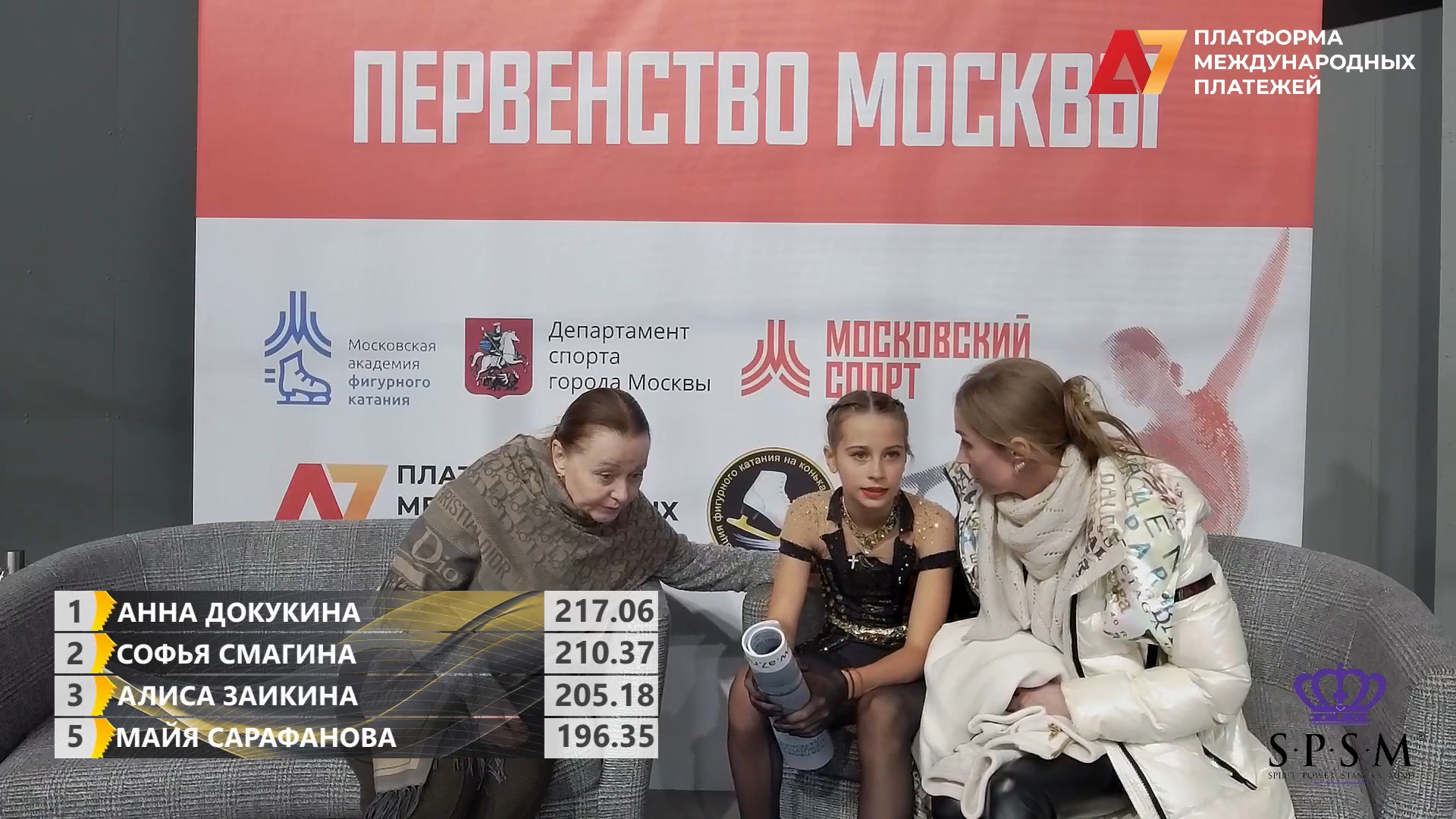 >1. Анна Докукина - 217,06 >2. Софья Смагина - 210,37 >3. Алиса Заикина - 205,18 >4. София Сарновская - 199,76 >5. Екатерина Корчажникова - 199,22 Спрутик тут явно лишний. На её месте должна была быть Лебедева та что Даша, но купленные судейки сотворили очередное "чудо"