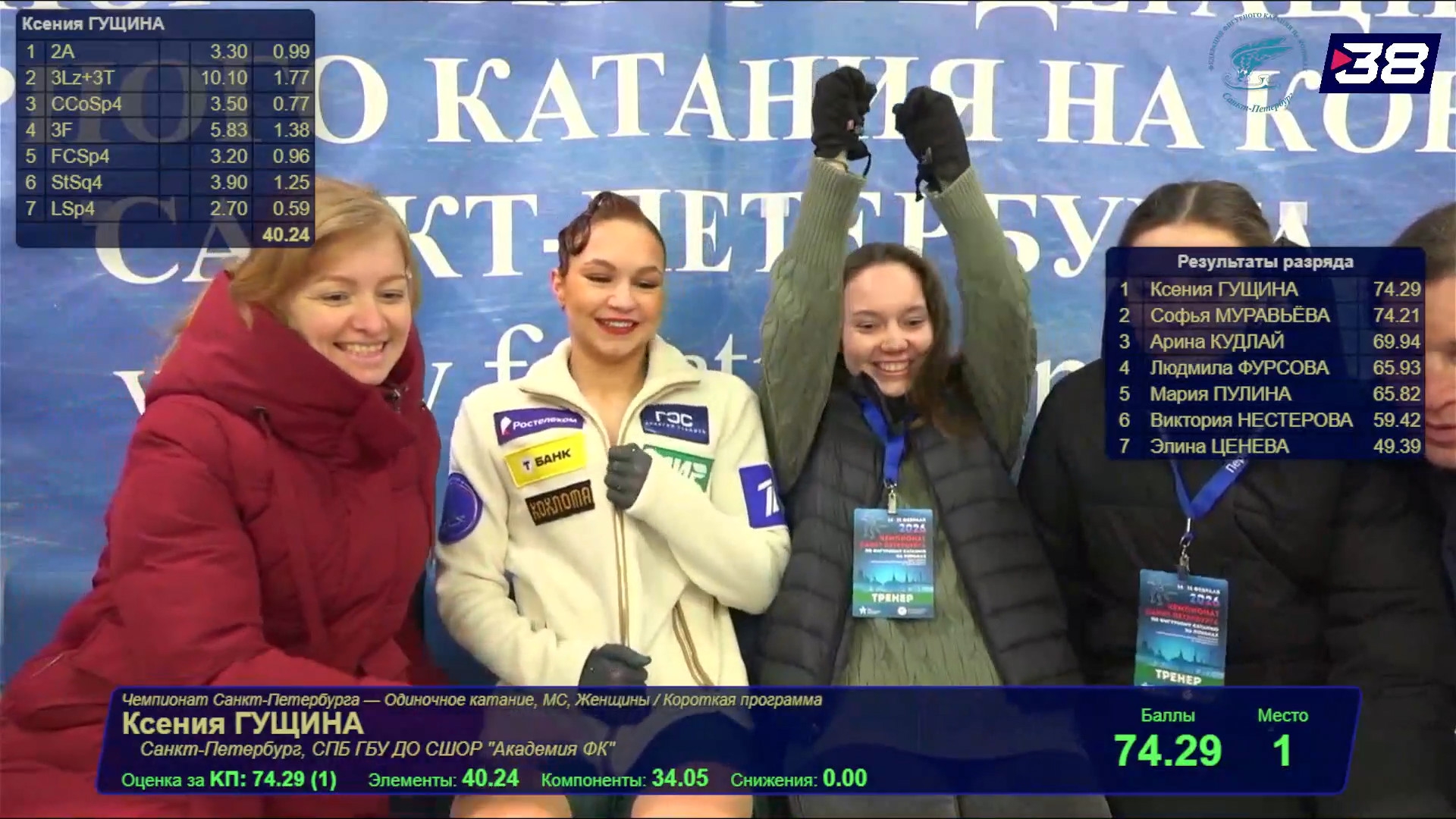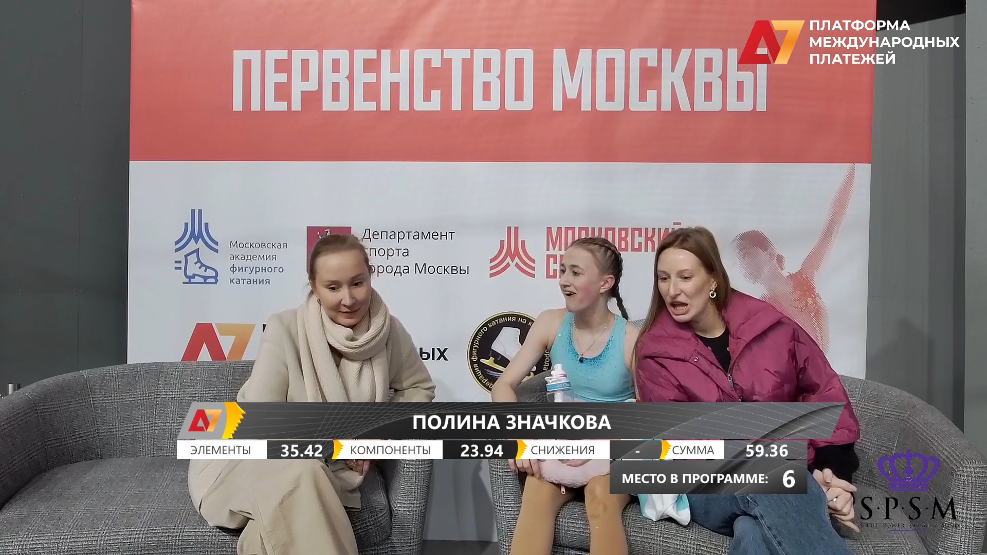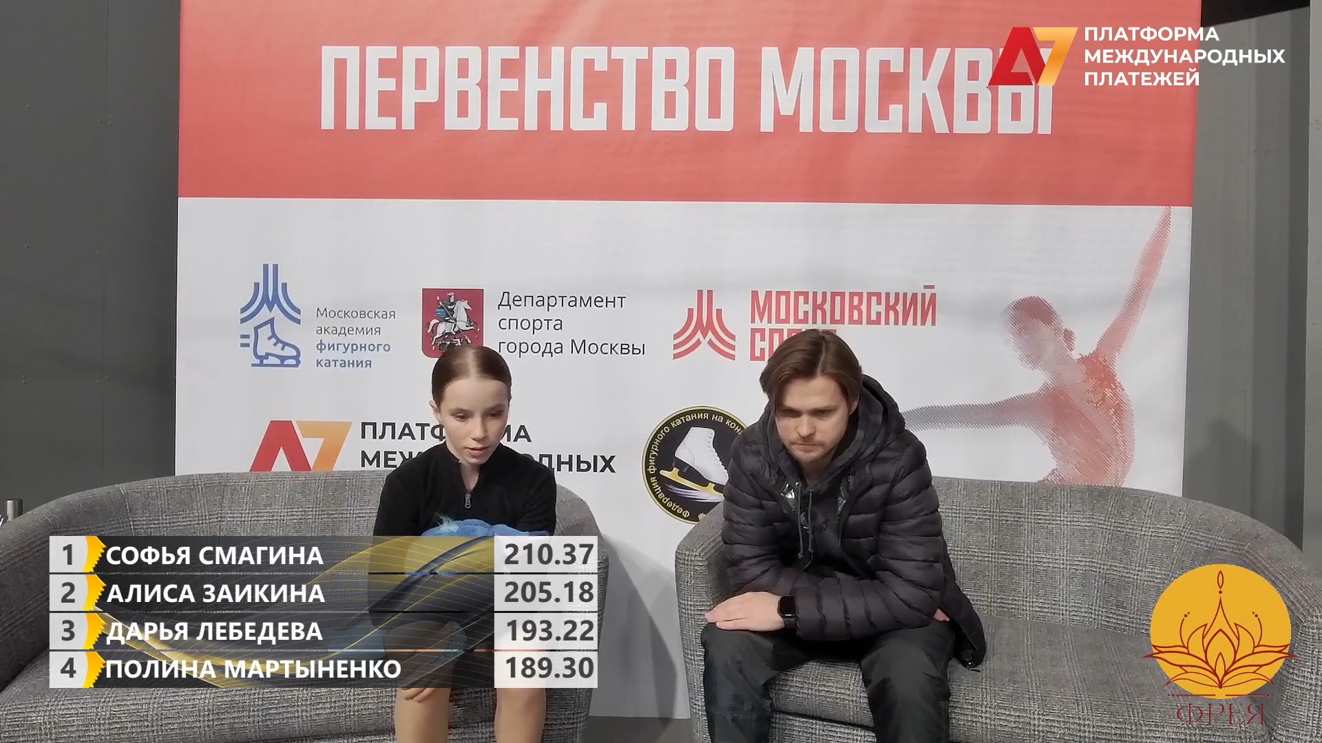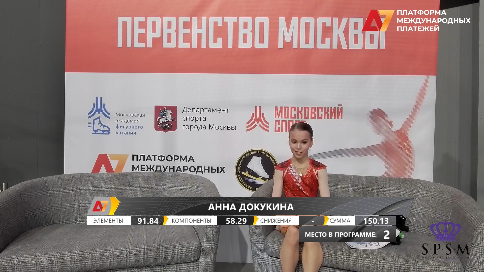 >1. Анна Докукина - 217,06 >2. Софья Смагина - 210,37 >3. Алиса Заикина - 205,18 >4. София Сарновская - 199,76 >5. Екатерина Корчажникова - 199,22 Спрутик тут явно лишний. На её месте должна была быть Лебедева та что Даша, но купленные судейки сотворили очередное "чудо"