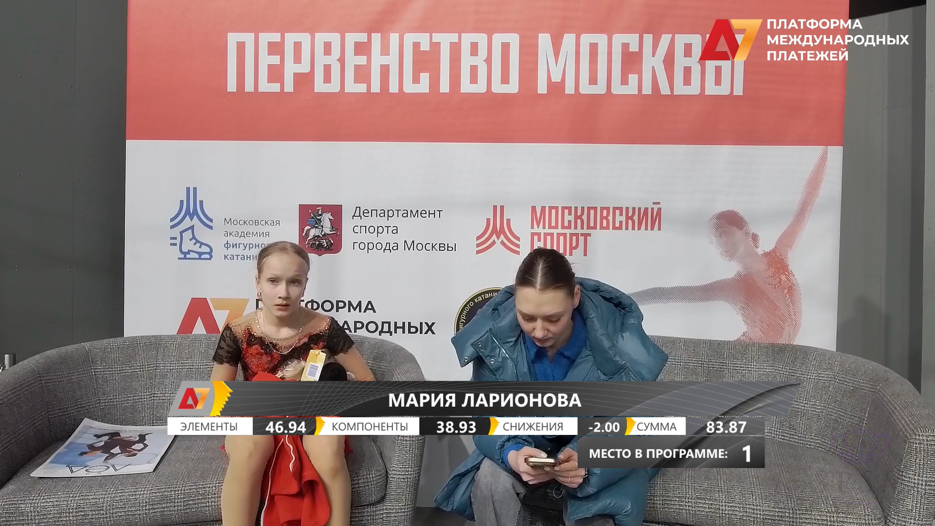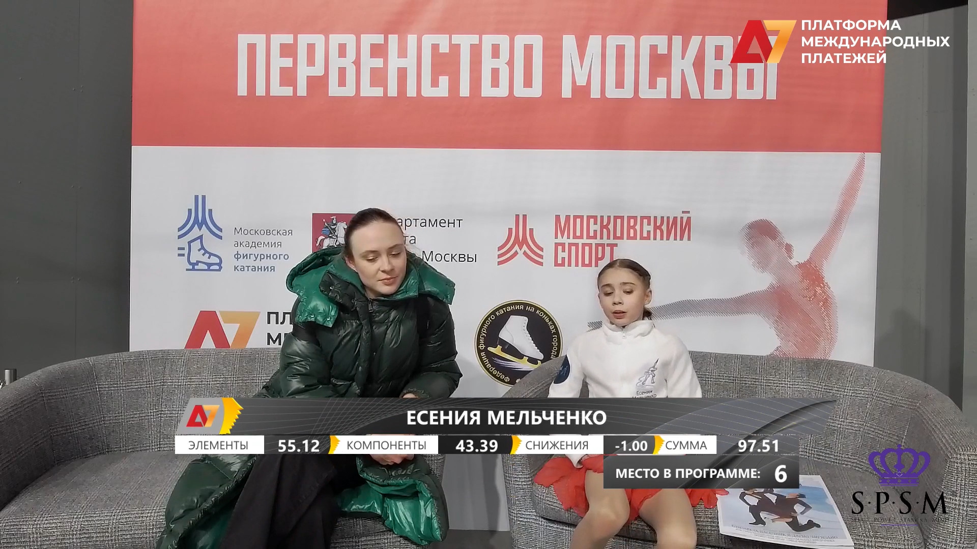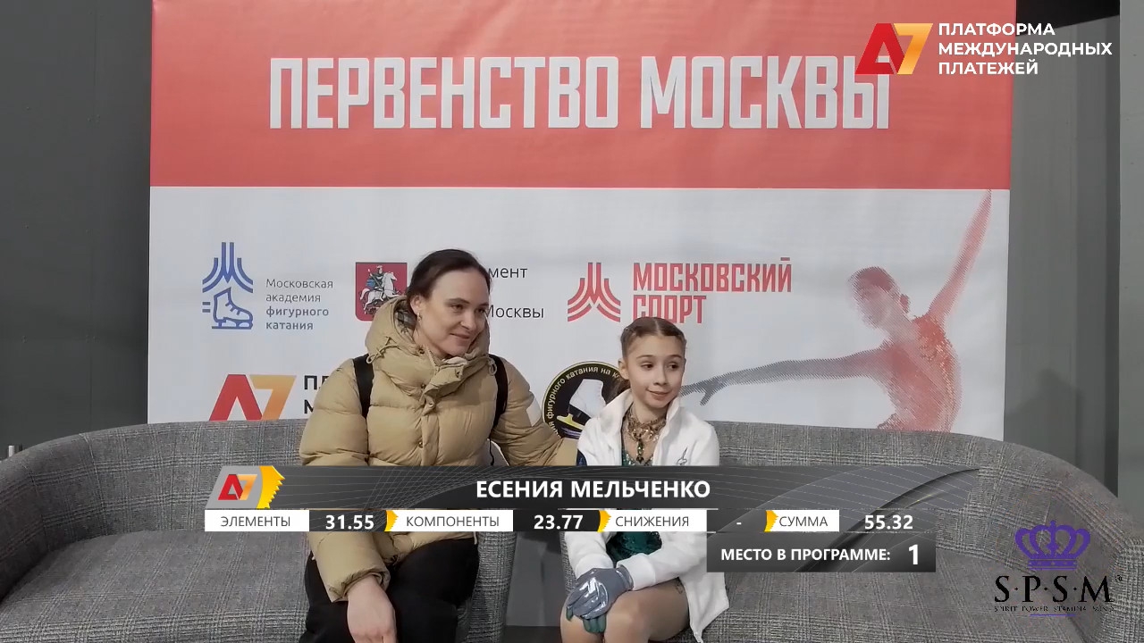 Ангелина СТЕПАНЯН, Фейгина Т.Е. Владимирская область, МБУ ДО СШ №8 2a 3sq/<? ho 2r 2a1e2s 2z2t 2z2r q? so на 2 ноги у самого борта, в раскорячку на руку присела fall? выпад chsq1 завертелась на коленях в финальное вращение