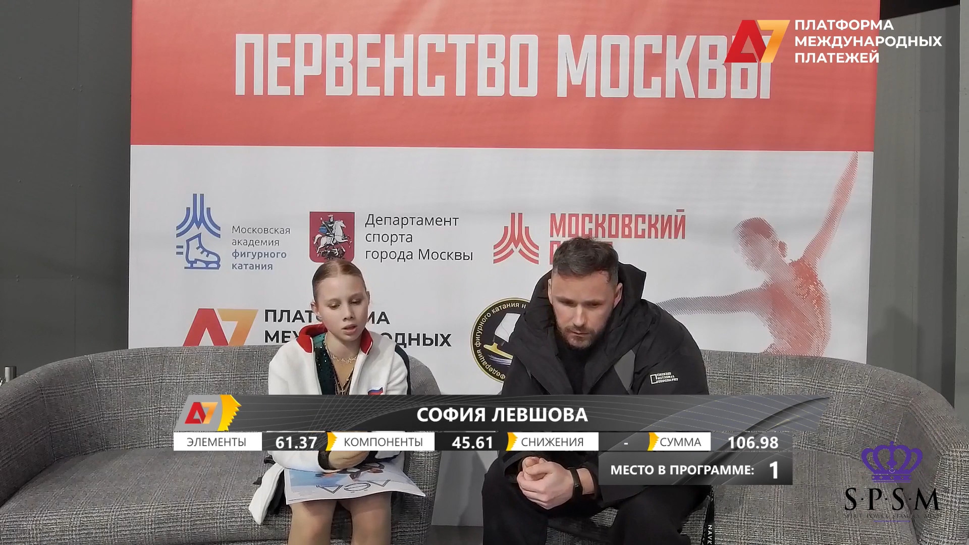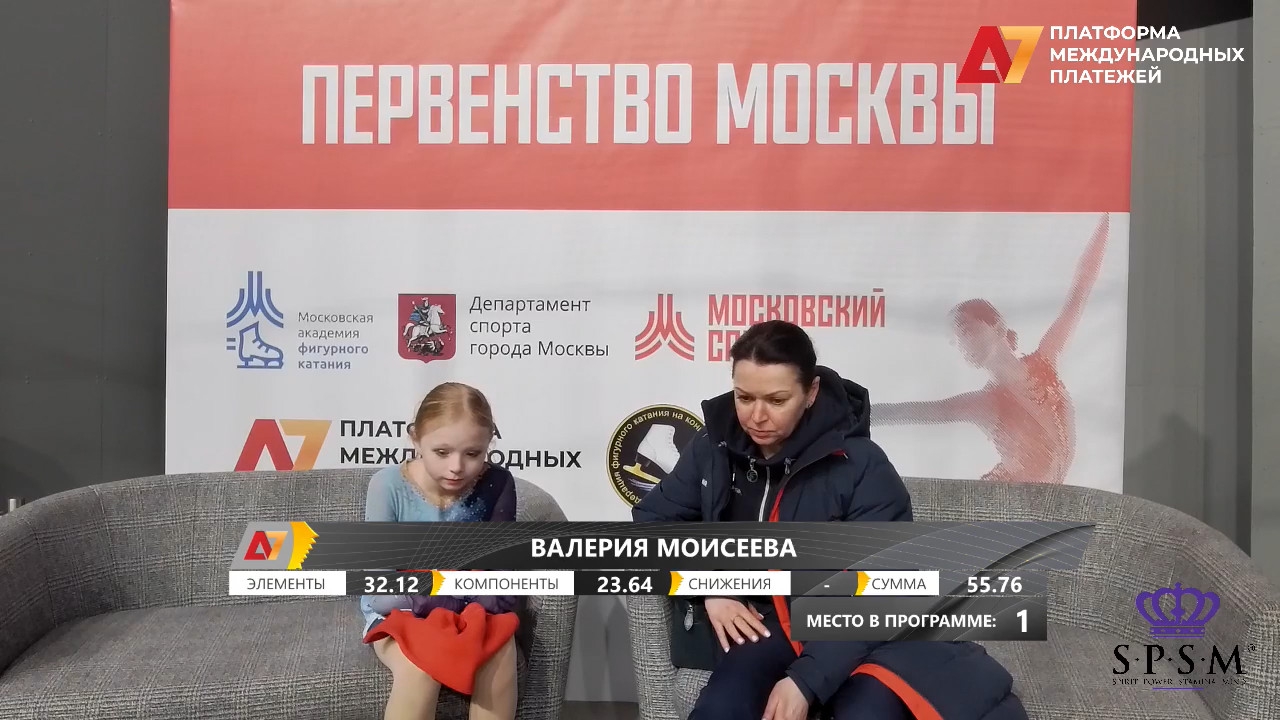 Виктория Александровна МОСКВИНА, 12 лет (2013-08-09) СПб, ГБУ ДО СШОР "Звёздный лёд" 3t3t<< 2 ноги? fall (R) 2aq? 3r (R) stsq2