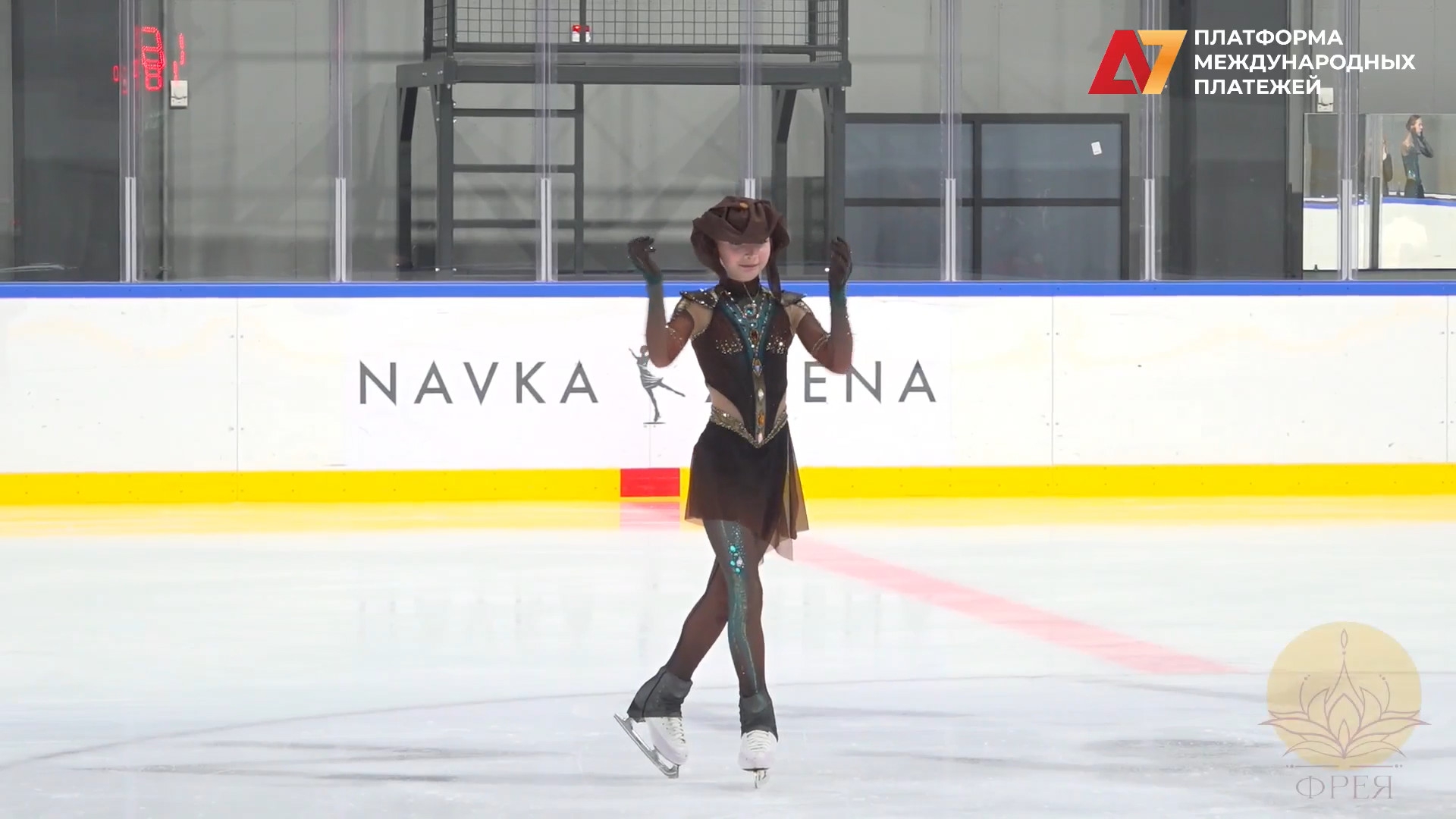 Мария Ивановна ПОНОМАРЕВА, 13 лет, Рожкова А.В. Кемеровская обл МАУ ДО ДЮСШ п.Трудармейский в оригинальном костюме со свисающими рукавами что-то вьетнамское или китайское или ближневосточное или западноевропейское (полный стилистический синкретизм, есть даже американские нотки и славянские) 3t<2t (R) 2s wobble (на минус) 2a ? stsq1