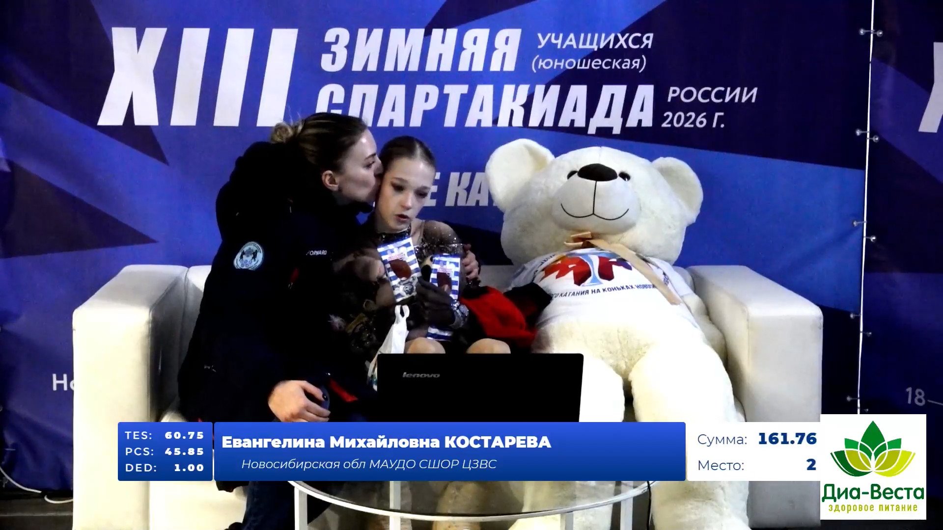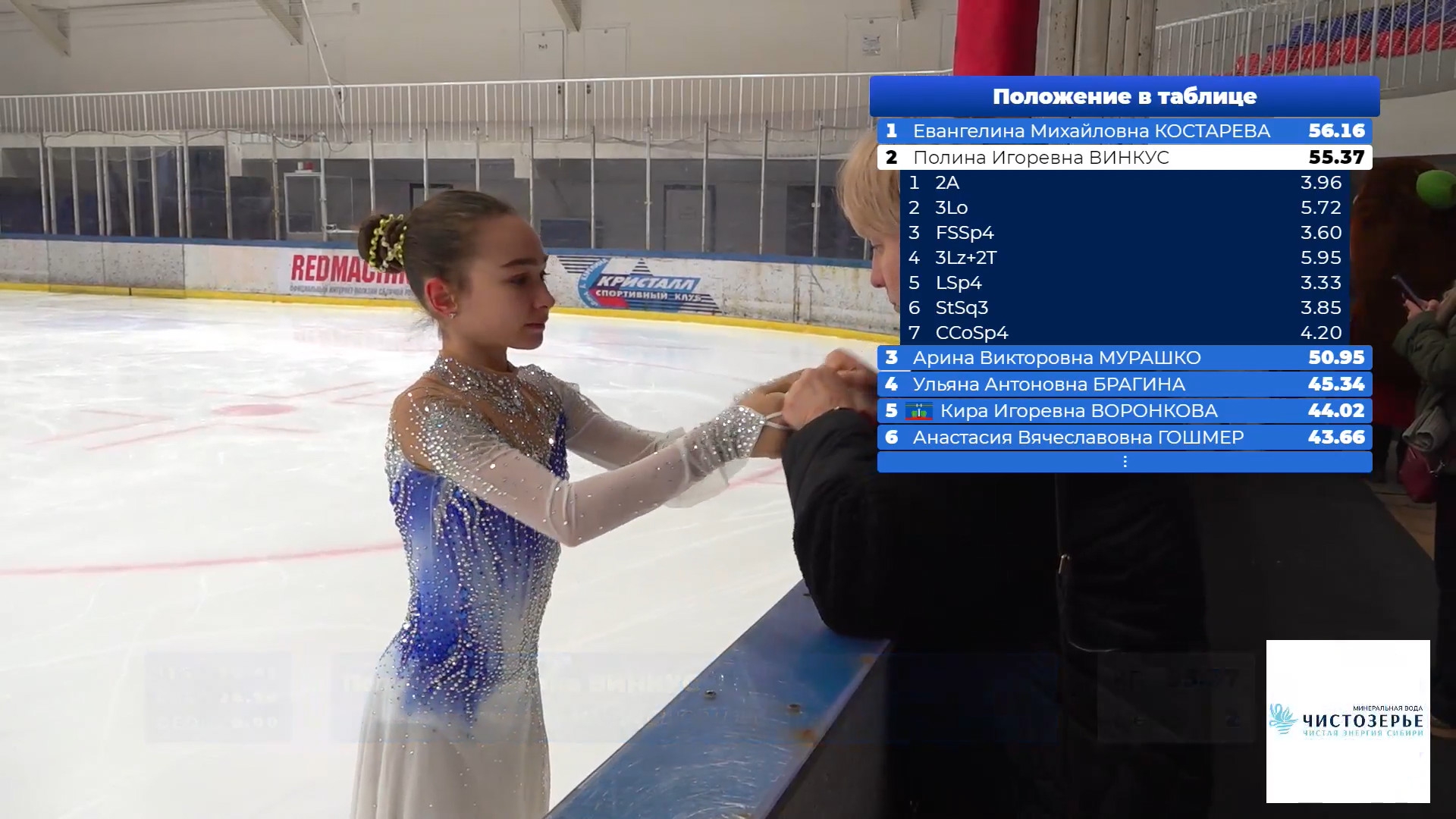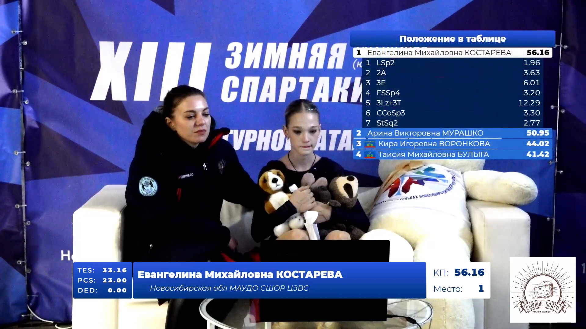 Евангелина Михайловна КОСТАРЕВА, 12 лет, с Маклаковой Новосибирская обл МАУДО СШОР ЦЗВС подъезжает к судьям и во вращение lsp2 (R) 2a 3f (флип) >madness, madness, madness >madness, madness, madness 3z3t ccosp3 (R) >madness, madness, madness >madness, madness, madness stsq2 Костаревой надарили игрушек