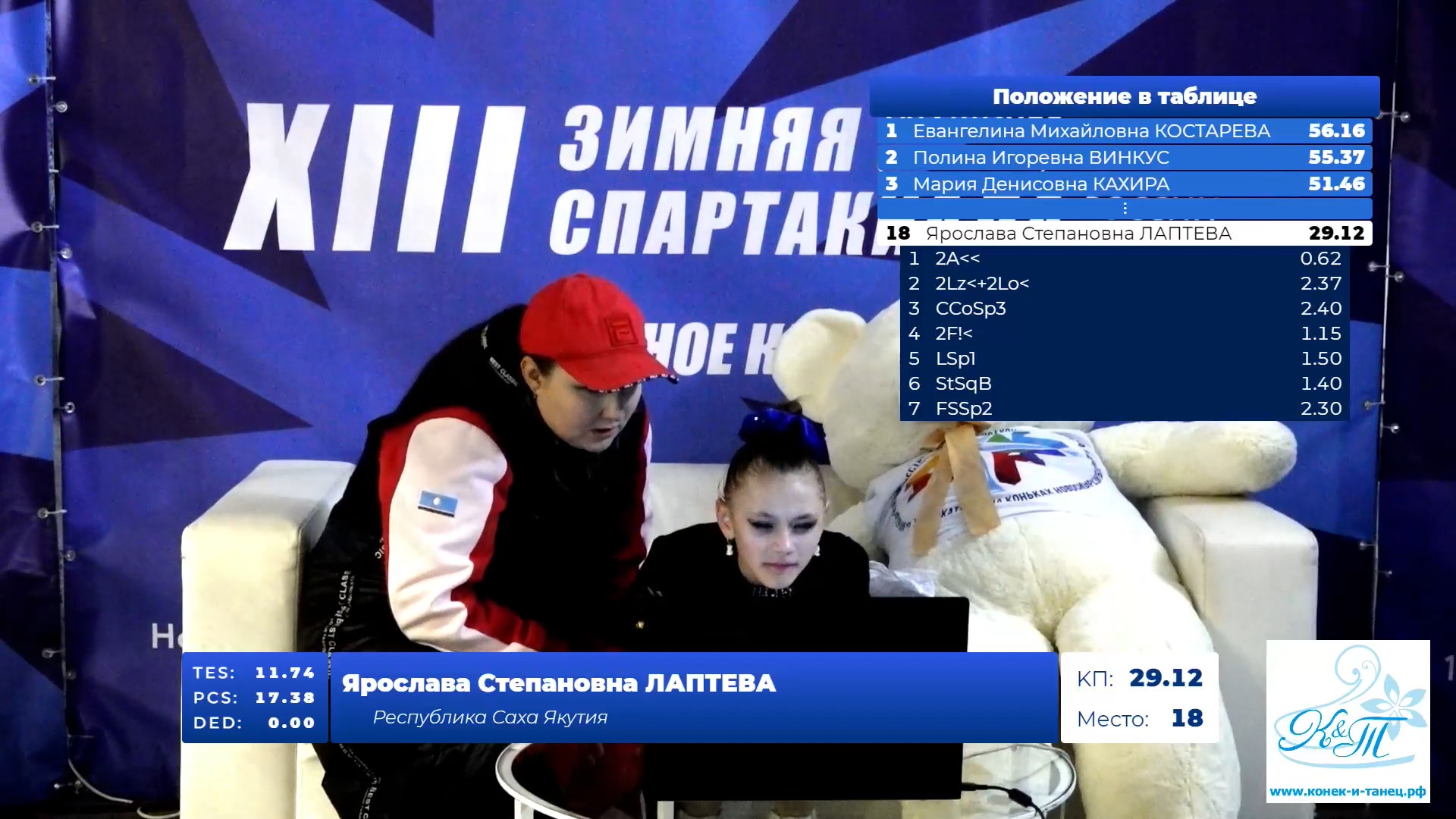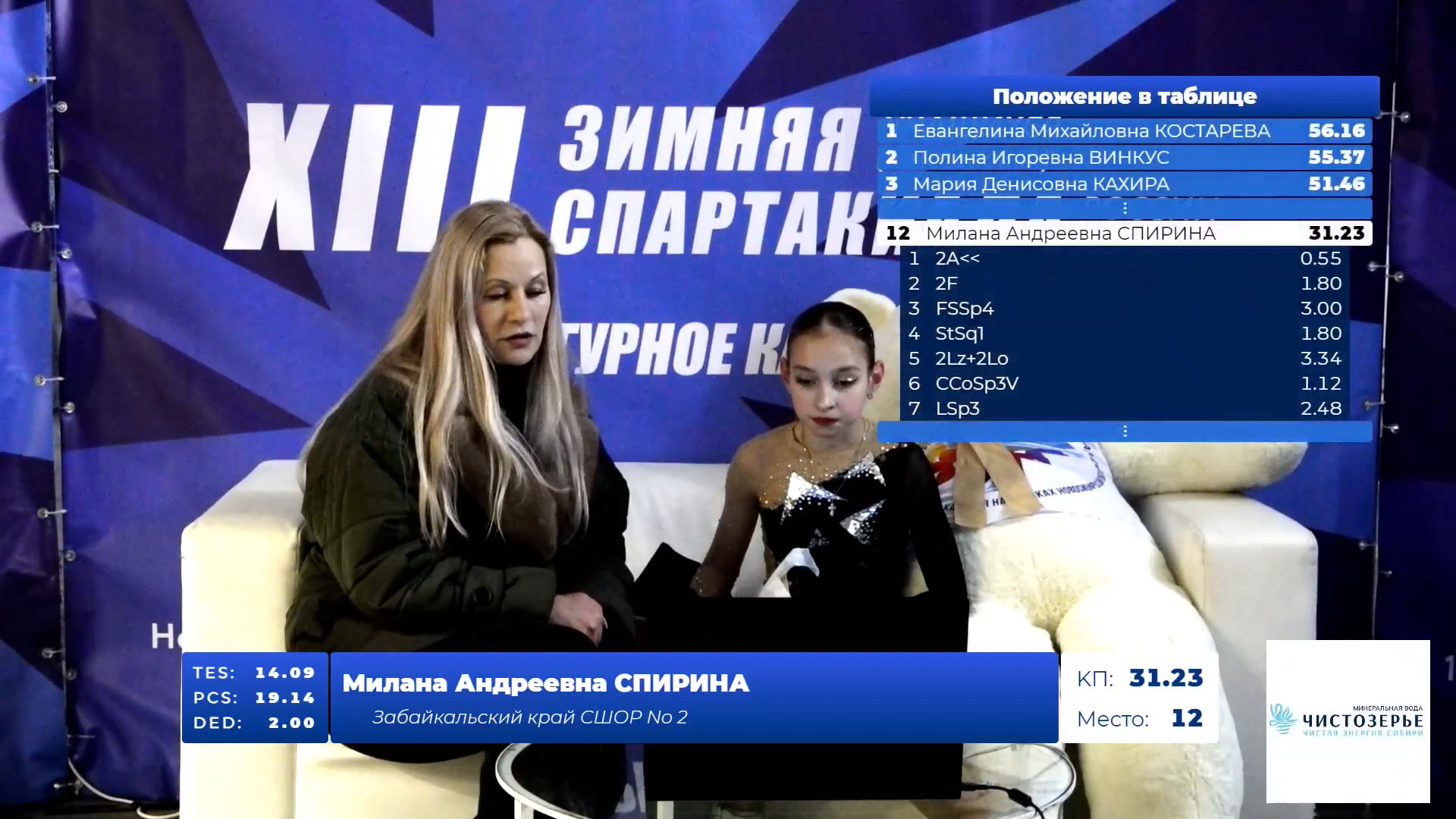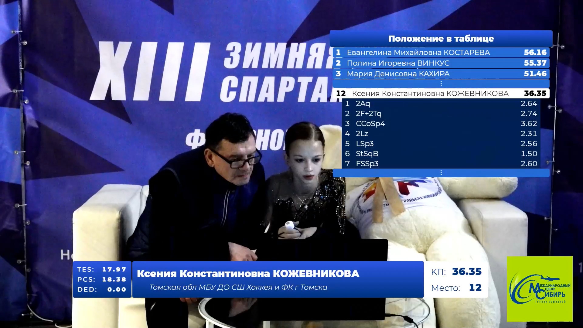 Евангелина Михайловна КОСТАРЕВА, 12 лет, с Маклаковой Новосибирская обл МАУДО СШОР ЦЗВС подъезжает к судьям и во вращение lsp2 (R) 2a 3f (флип) >madness, madness, madness >madness, madness, madness 3z3t ccosp3 (R) >madness, madness, madness >madness, madness, madness stsq2 Костаревой надарили игрушек