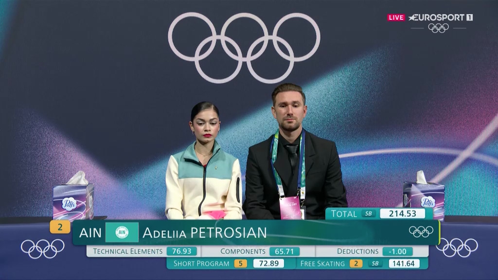 >"Мне перед собой, федерацией и болельщиками немного стыдно. Психологически будет сложно вернуться в Россию после такого проката", — сказала Аделия Петросян