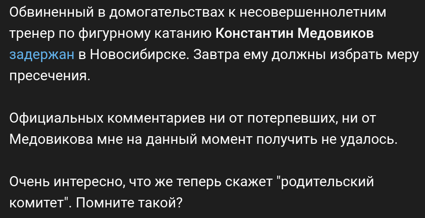 >>3297185 >Бенджамин Шроатс, ранее работавший с американской фигуристкой Эмбер Гленн, помещён под стражу. Как сообщает New York Post, 47-летнему специалисту предъявлены обвинения в сексуальном насилии и непристойных действиях с ребёнком.