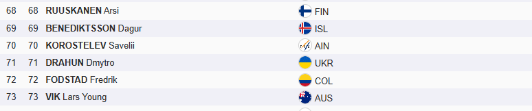 Савелий Коростылёв, скиатлон - 4-е место классический спринт - 35-е место (не прошёл квалификацию) 10км, вольный стиль, раздельный старт - 15-е место четырёхкратный чемпион России (2024, 2025), обладатель Кубка России — 2024/2025, многократный победитель и призёр этапов Кубка России